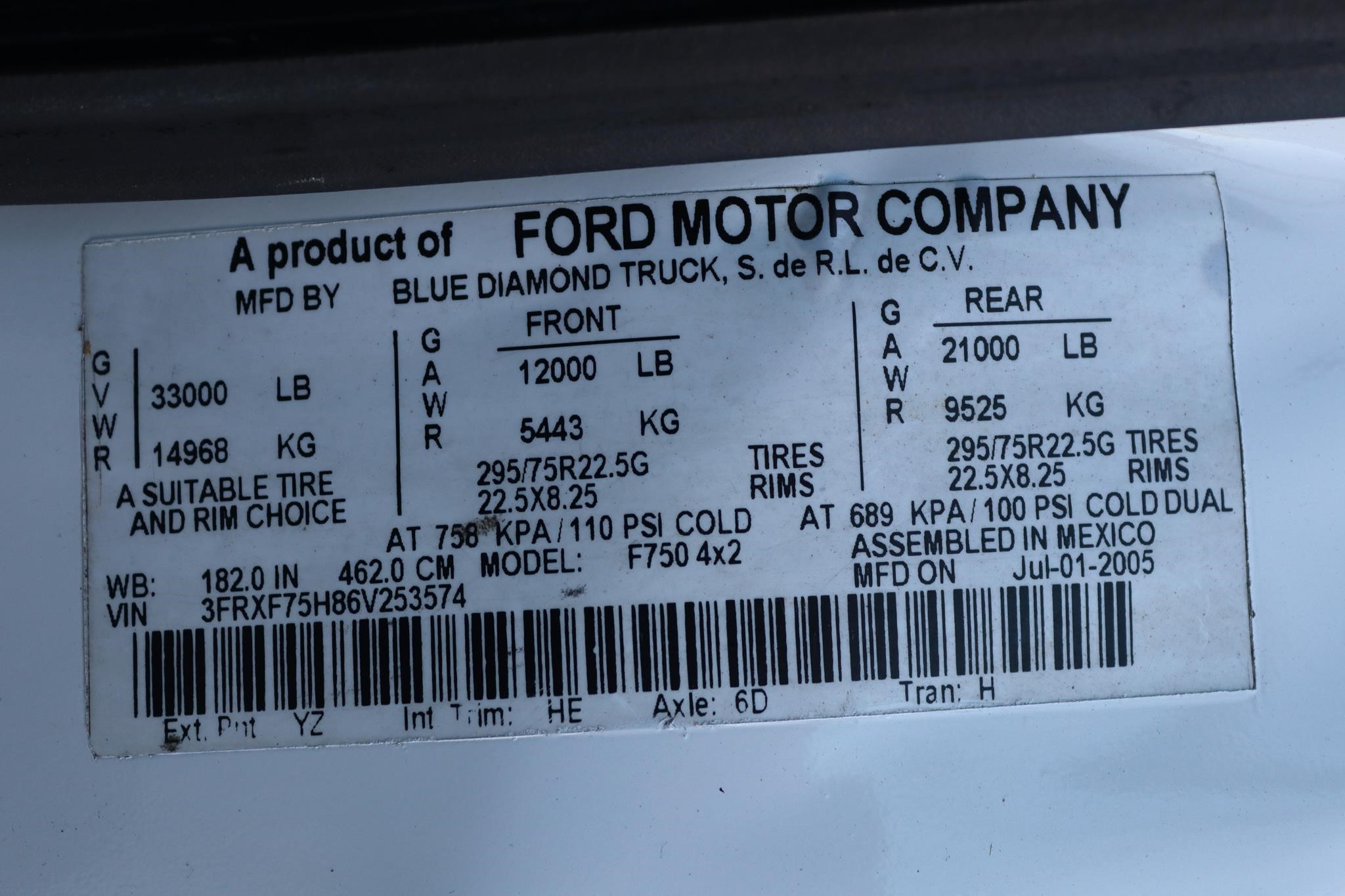 VIN – 3FRXF75H86V253574