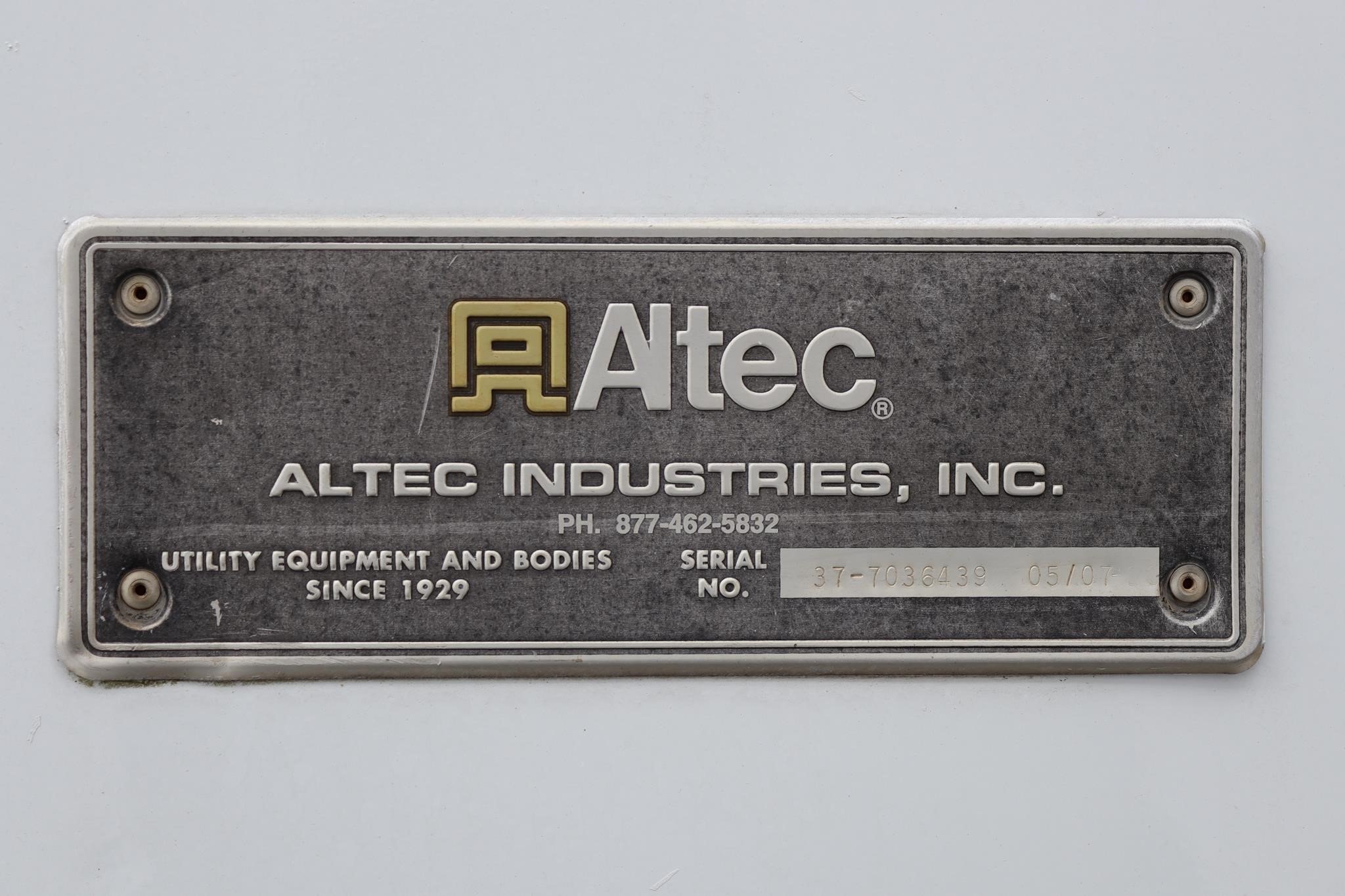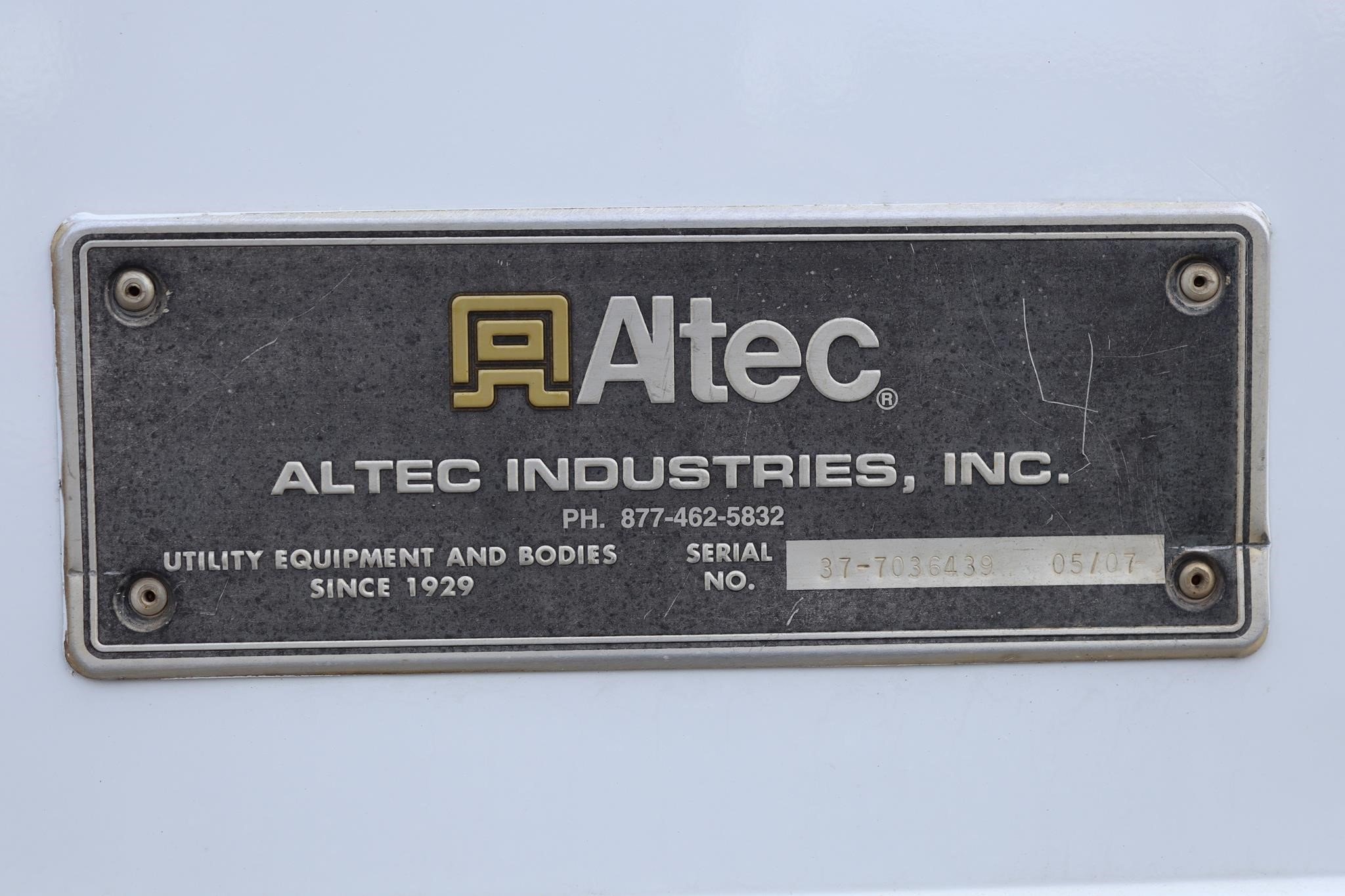 This commercial truck comes equipped with a 45-foot working height 2007 Altec TA40 that has a 350LB capacity one-man bucket with controls. The truck has an Altec 11′ Utility body (Serial # – 37-7036439).