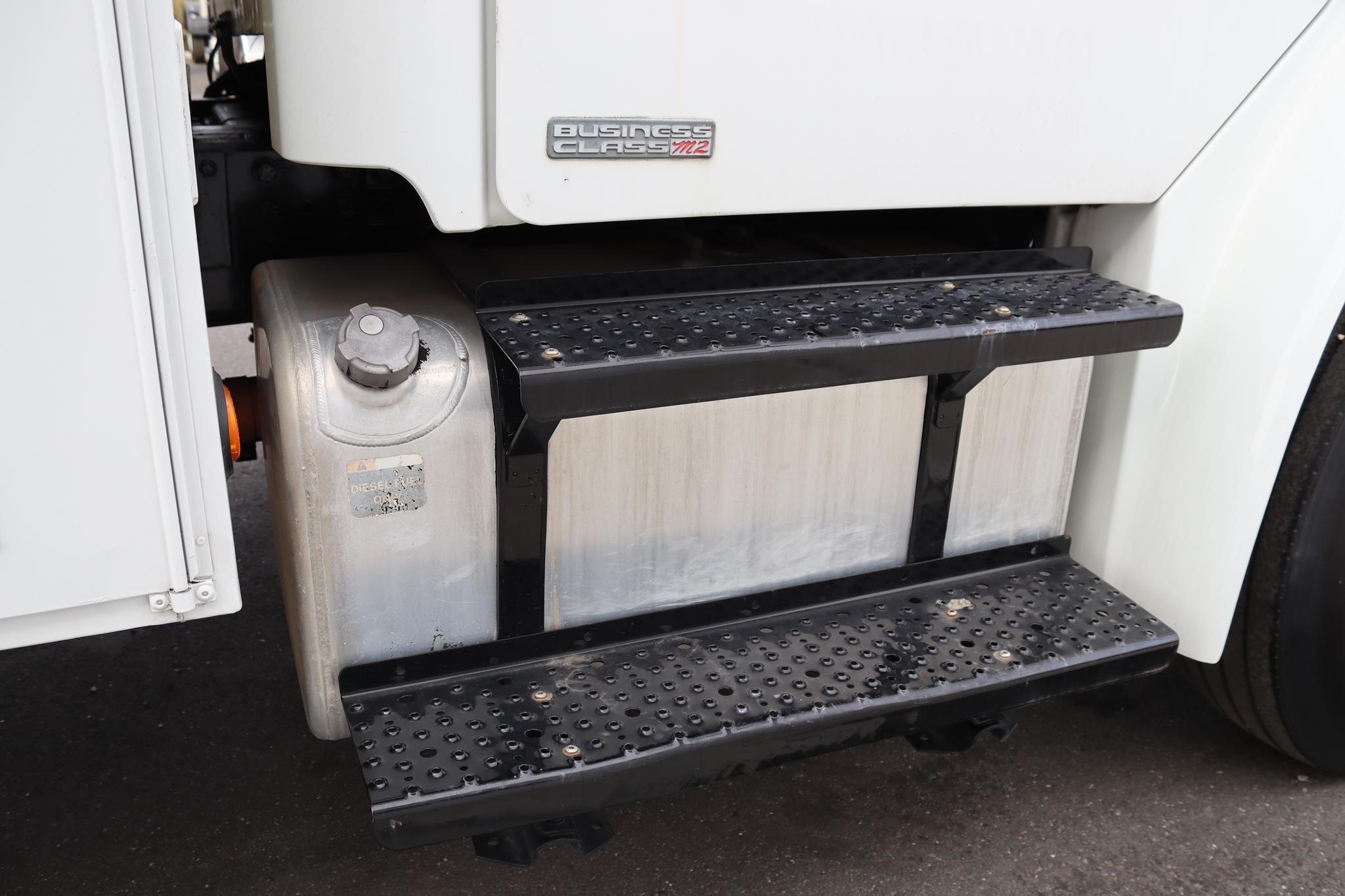 The interior features two bucket seats, A/C, AM/FM radio, cruise control, overdrive, air brakes and differential lock.