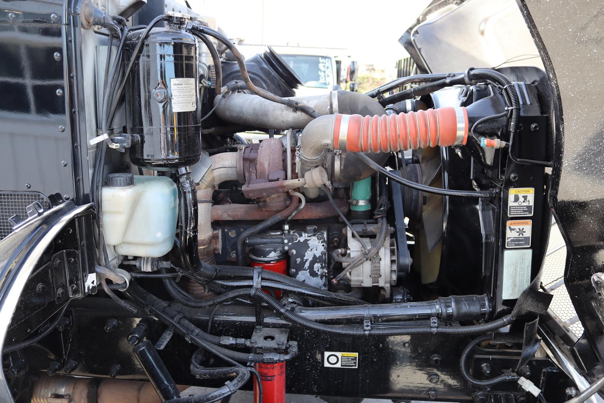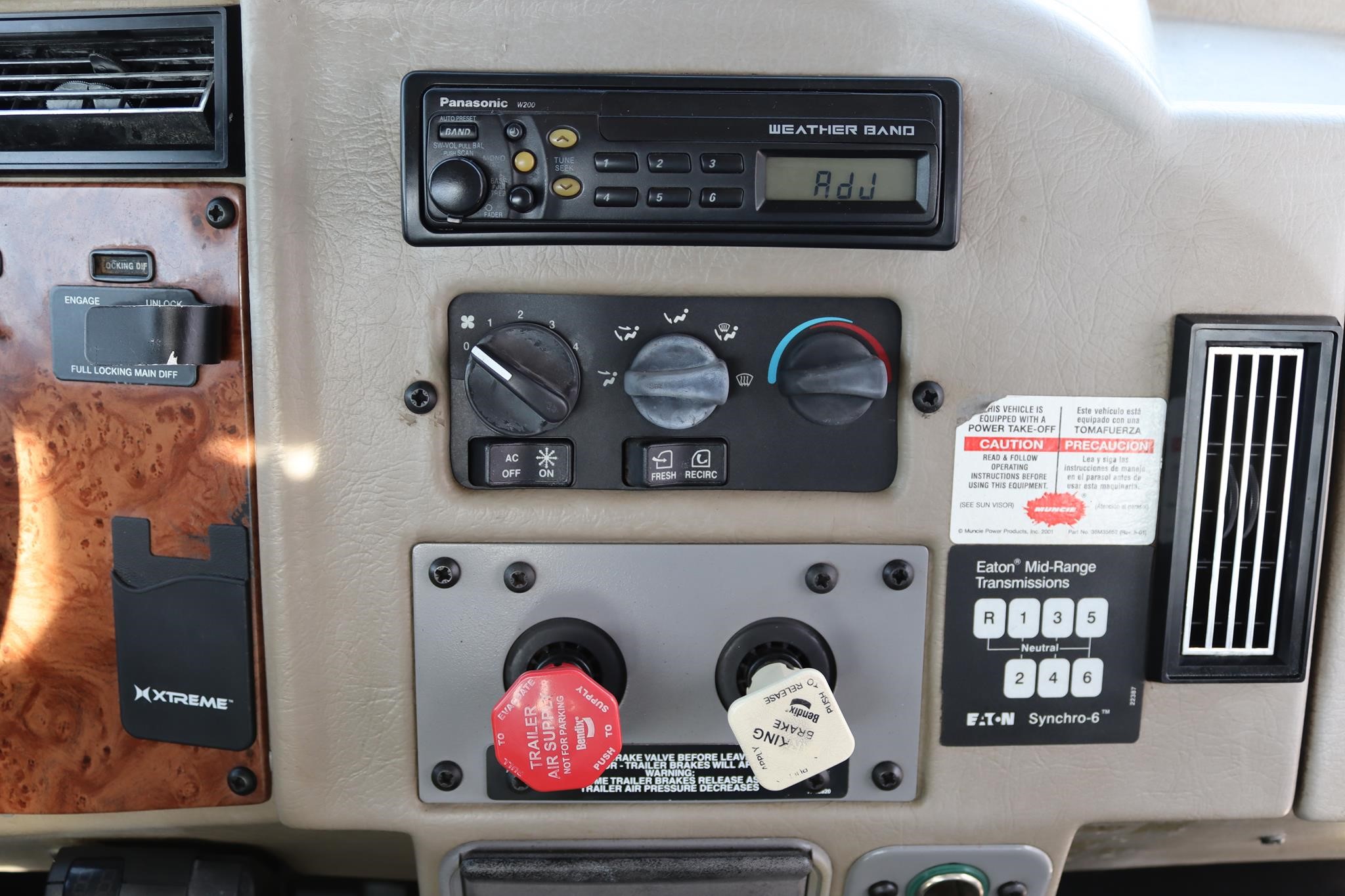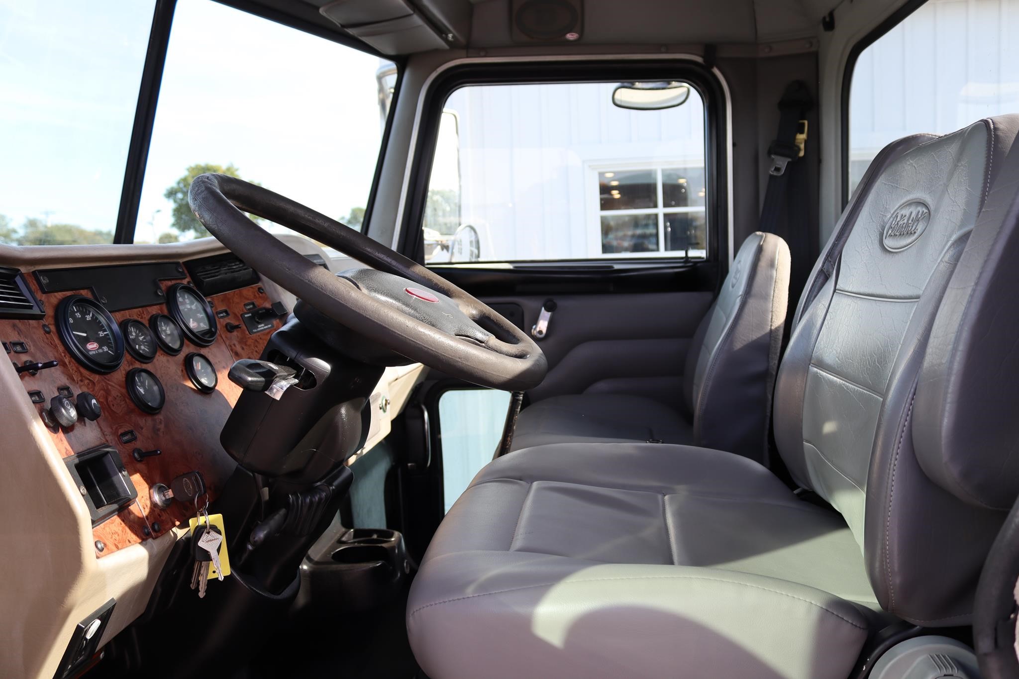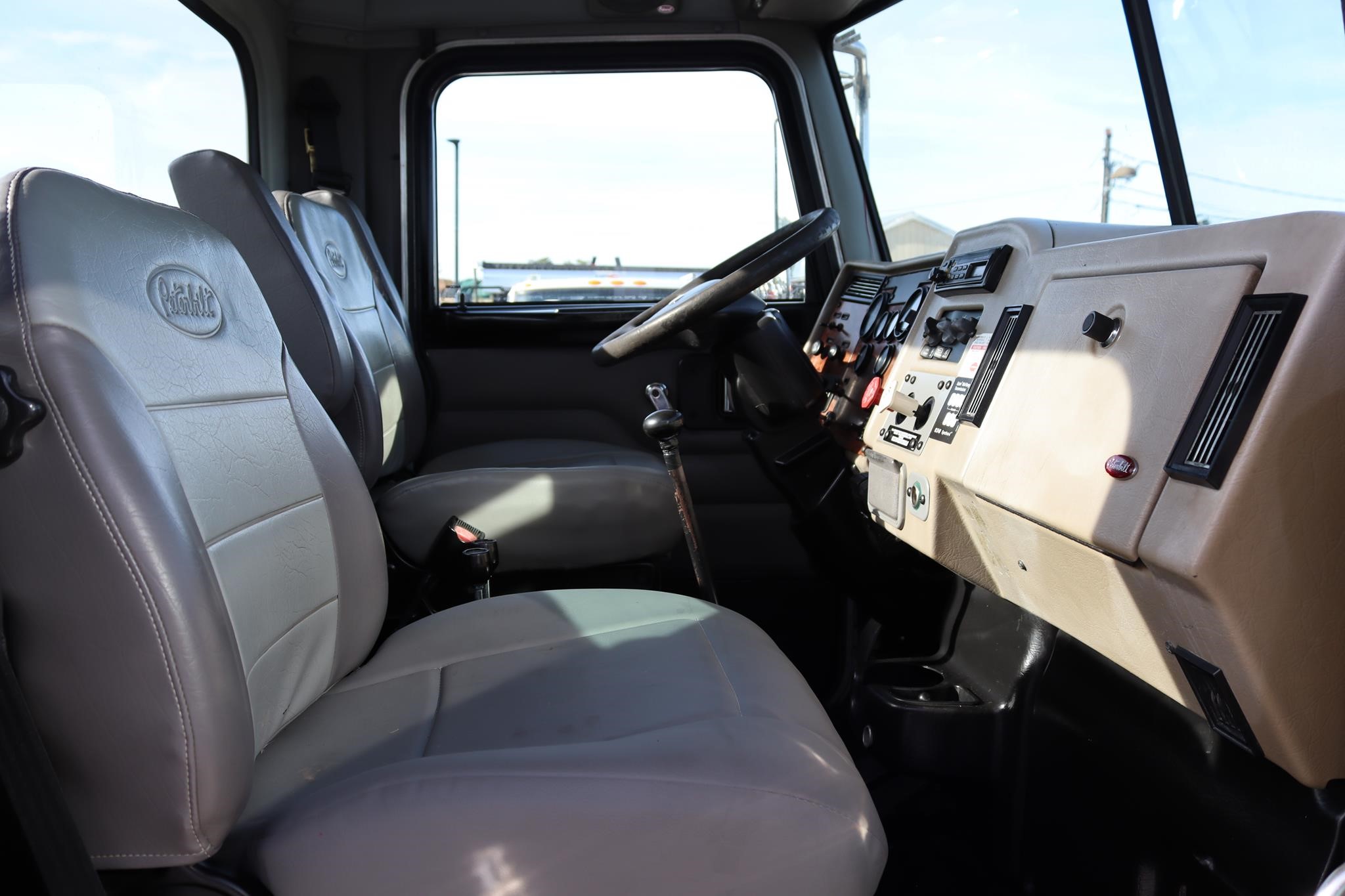 The interior features an air-ride driver’s seat, two bucket seats, cruise control, A/C, AM/FM radio, engine fan, differential lock, and air brakes.