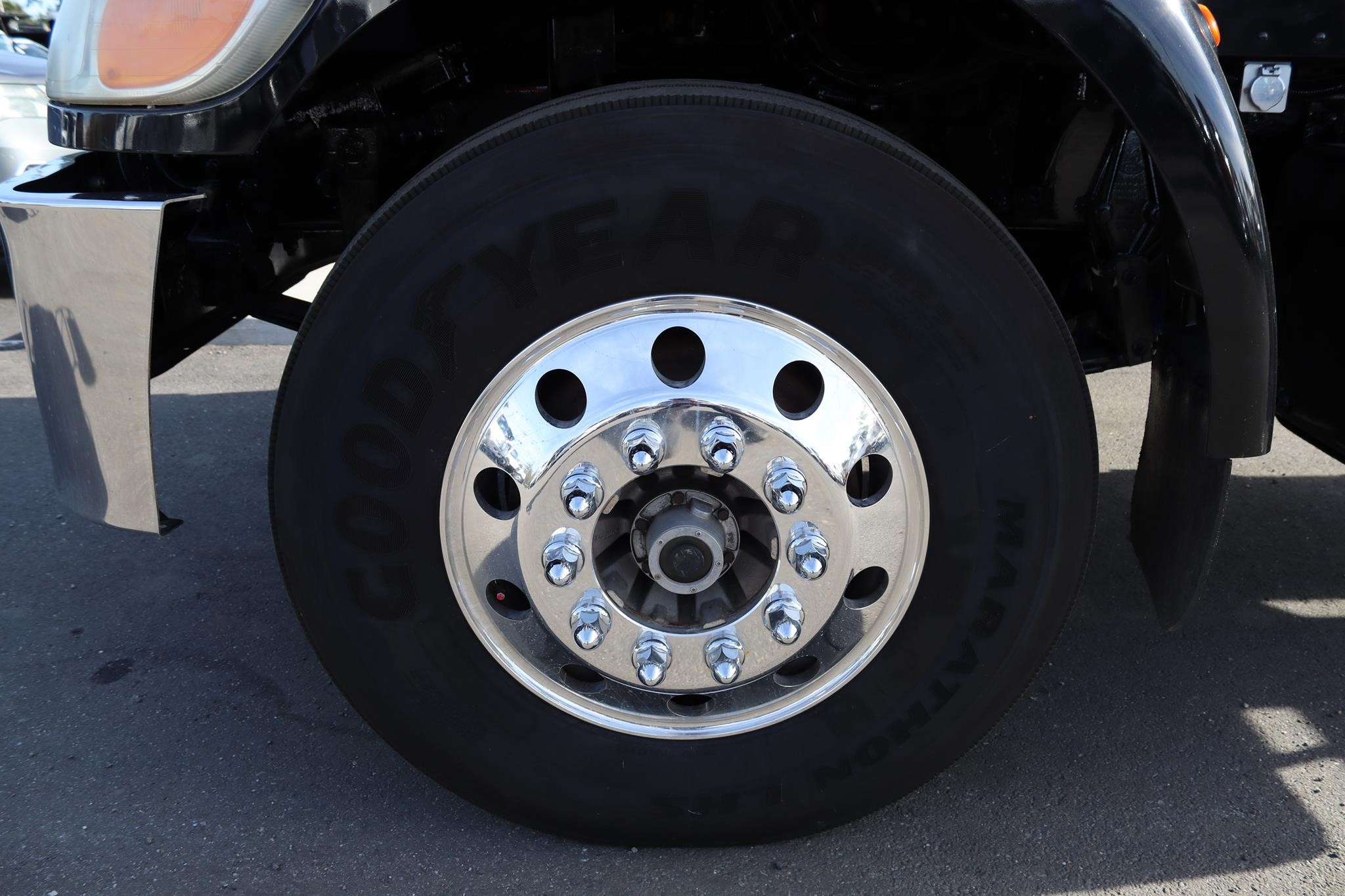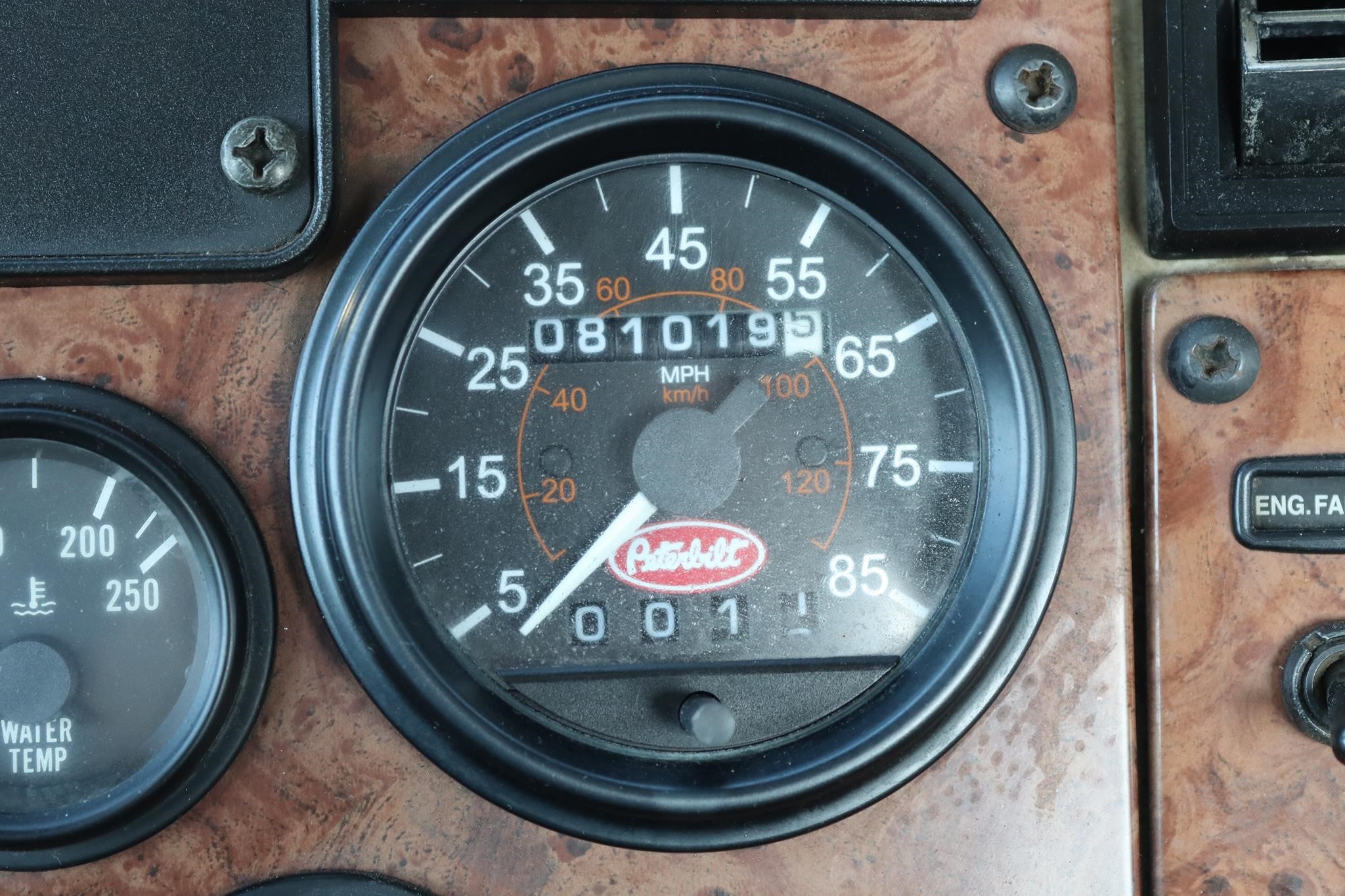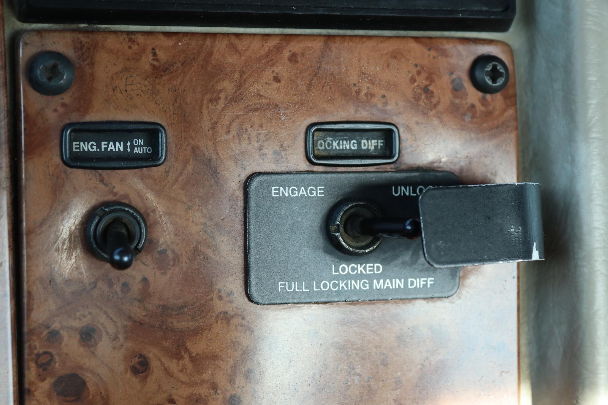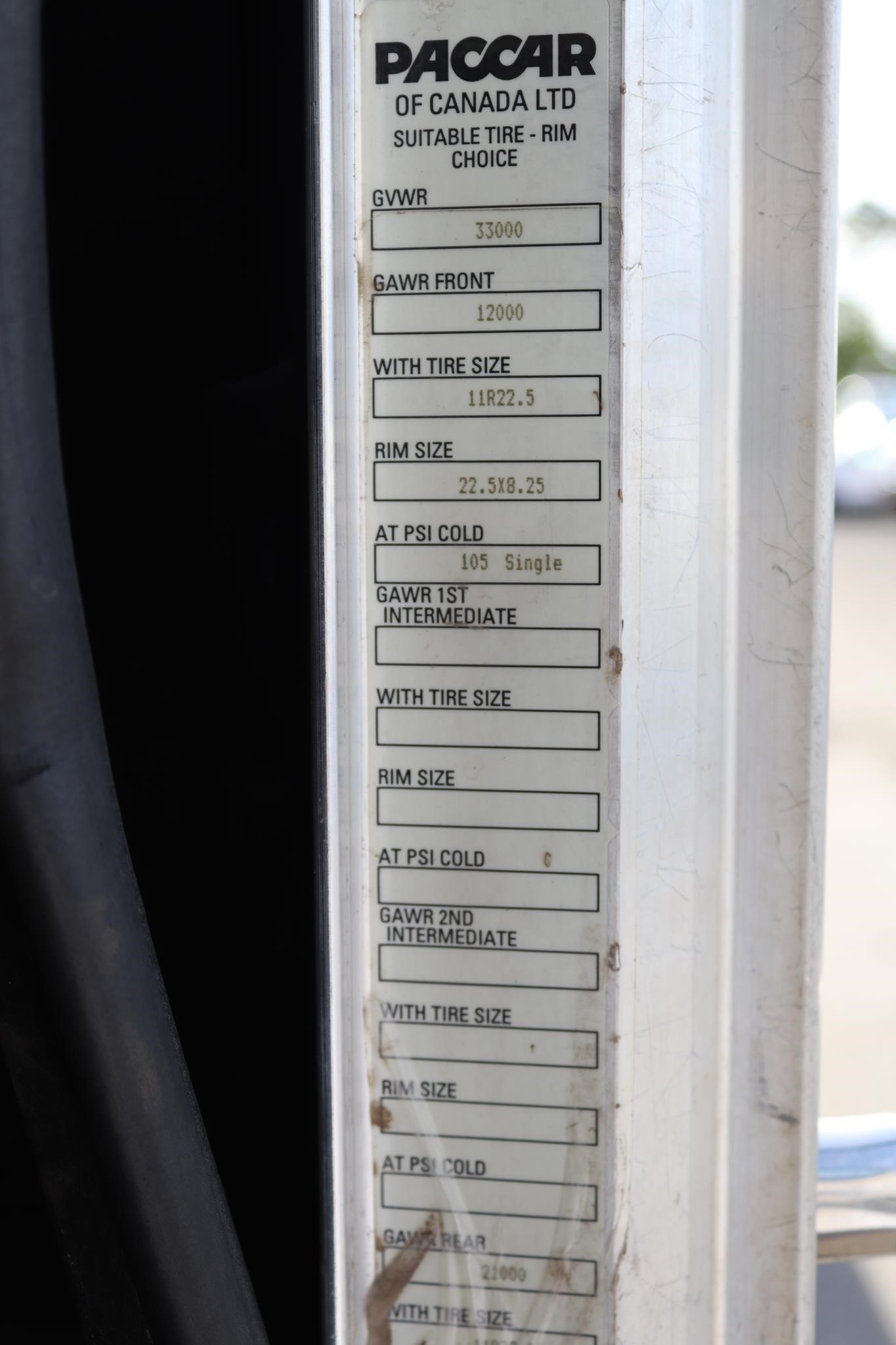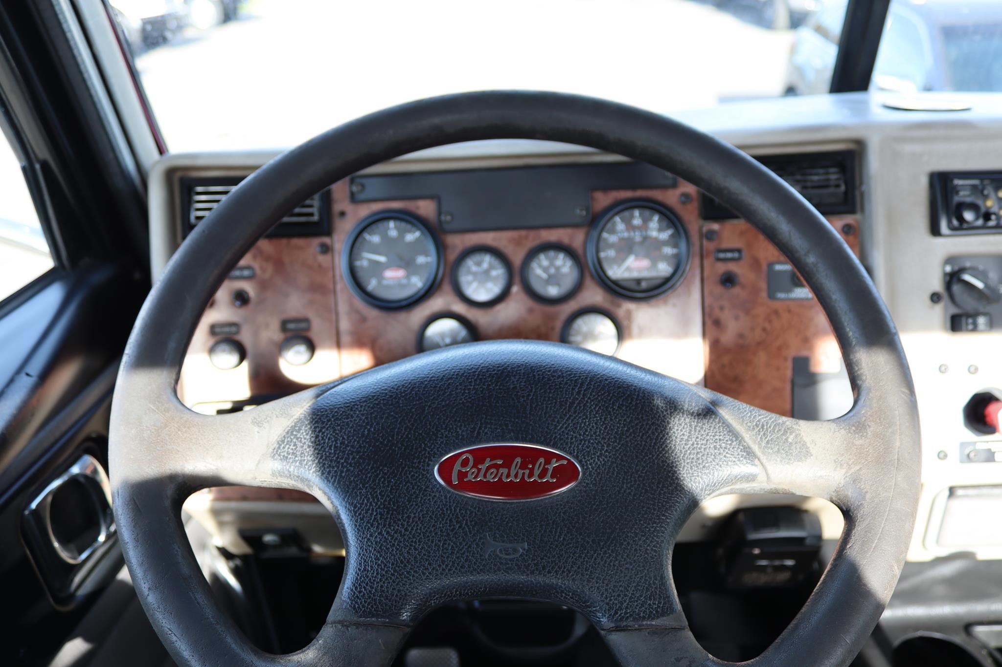 The interior features an air-ride driver’s seat, two bucket seats, cruise control, A/C, AM/FM radio, engine fan, differential lock, and air brakes.
