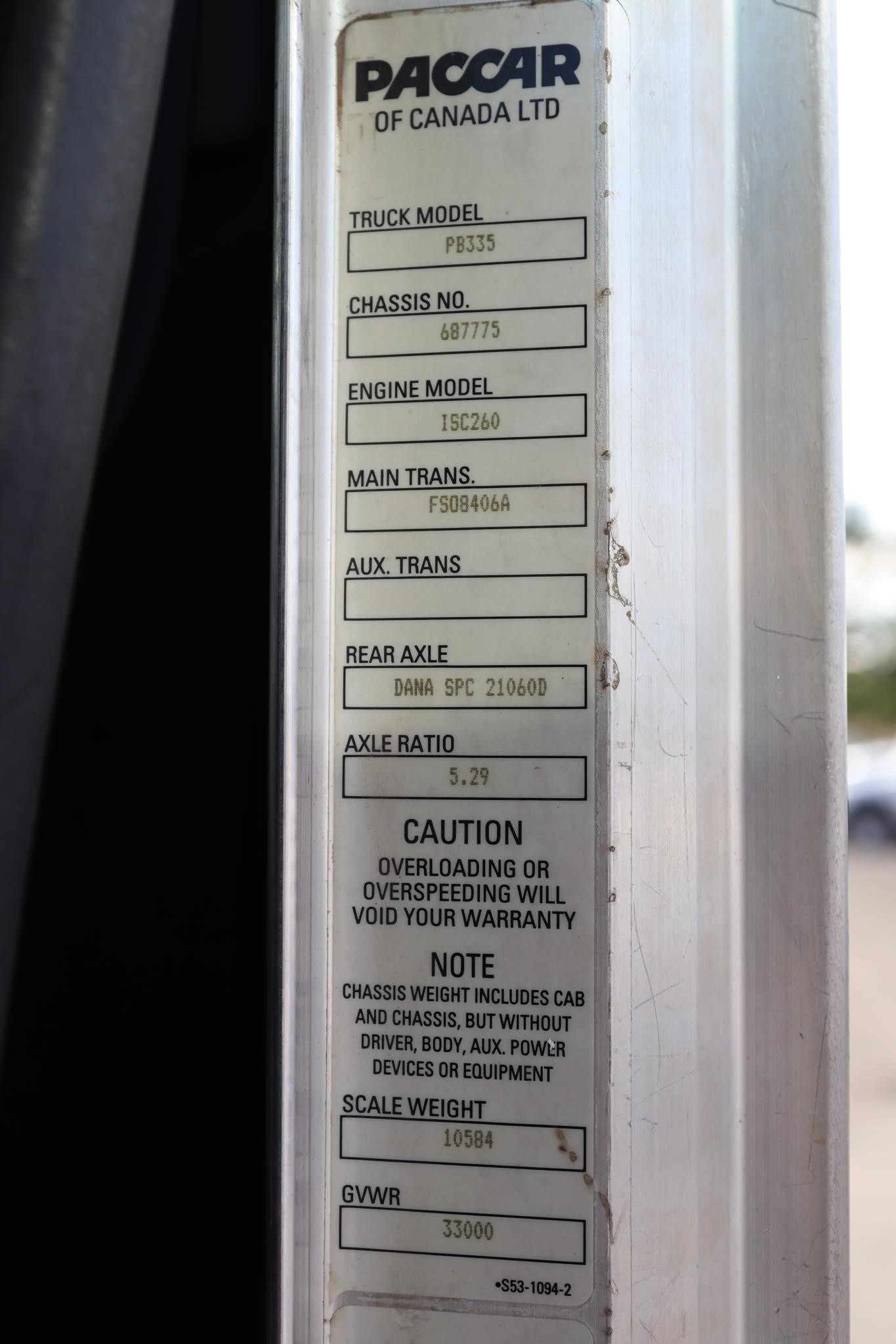 You’re viewing a 2007 Peterbilt 335 CDL SwapLoader SL-240 Hooklift #687775. The truck is powered by a 260HP Cummins ISC diesel engine and a manual 6-Spd Eaton transmission with 81,019 miles and 6,354 hours on the odometer. The Peterbilt is equipped with a spring suspension, 22.5″ tires, and aluminum rims.