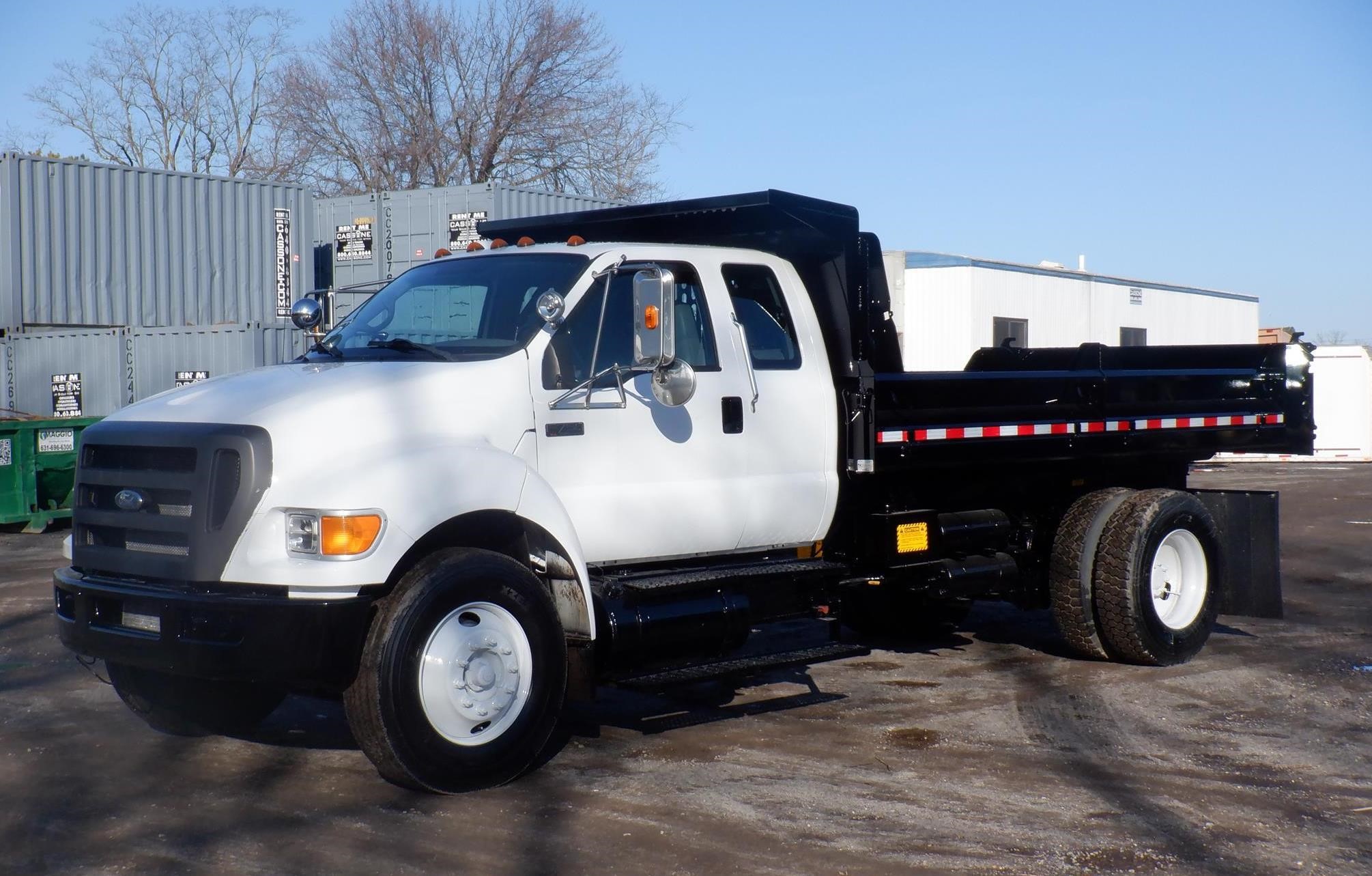 You’re viewing a 2009 Ford F750 14 Foot Mason Dump w/ Drop Sides #162062. This truck is powered by a Cummins diesel engine and a automatic transmission with 105,181 miles. The interior features bucket seats and bench in rear, tilt, cruise A/C and a AM/FM radio. Body is a new 14ft dump with 14” drop sides, 50” bulk head, 24” cab protector, with a 23”x89” gate and 1 chute. Equipped with 20 ton pintle with electric. This truck sits on spring suspension, steel rims, and 11 22.5 tires. Call us today for more information on this beauty. We Finance! Call Today!