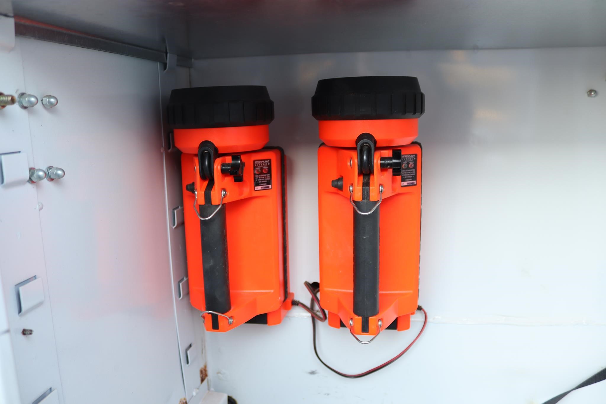 The interior features cruise control, A/C, AM/FM/BT radio, heated mirrors, power locks, power windows, and work lights.
