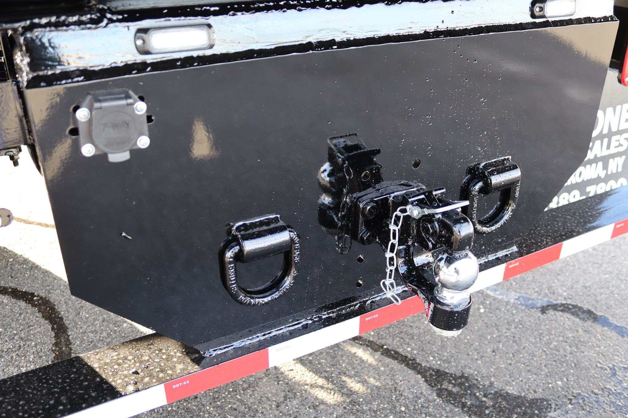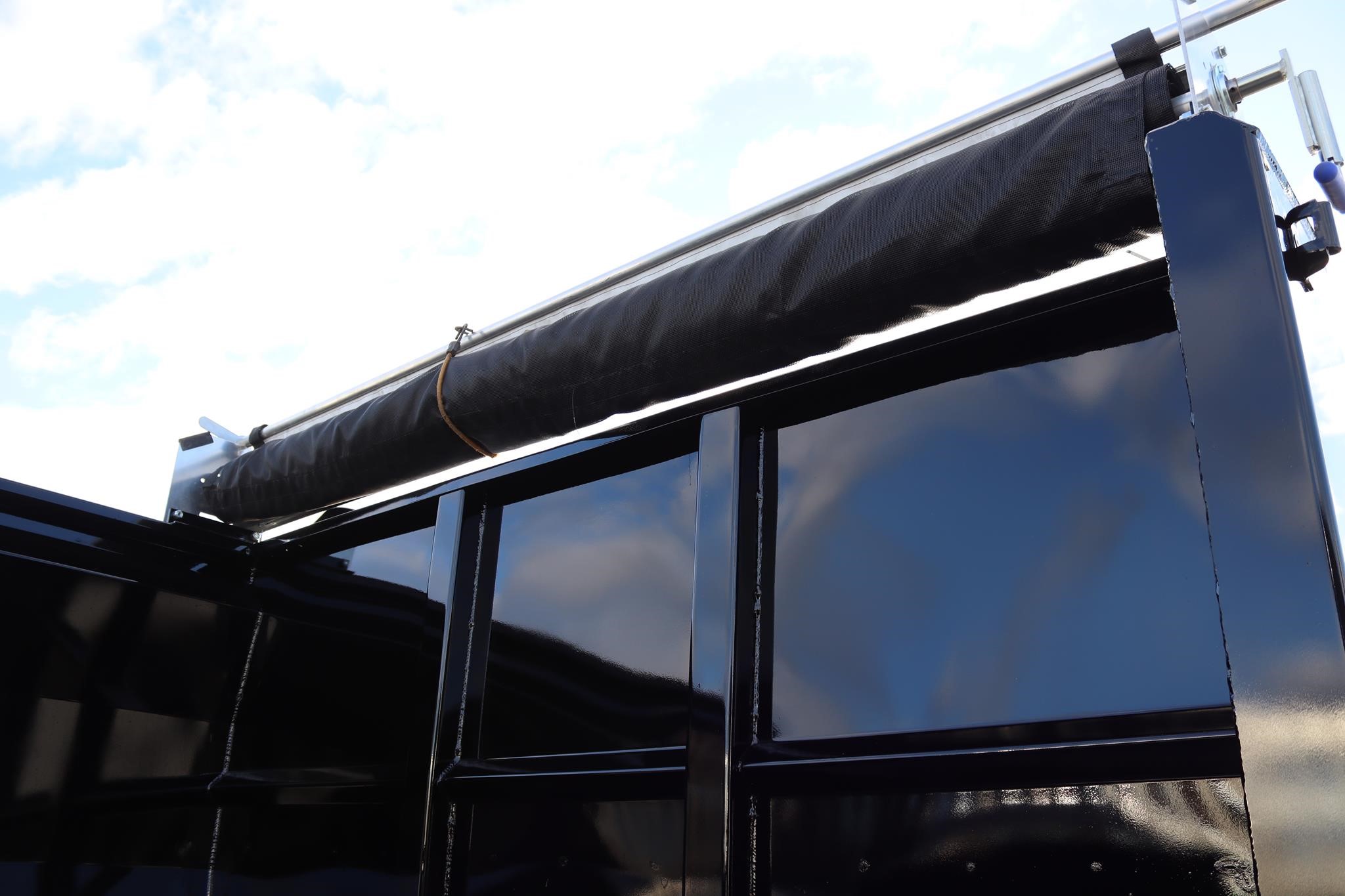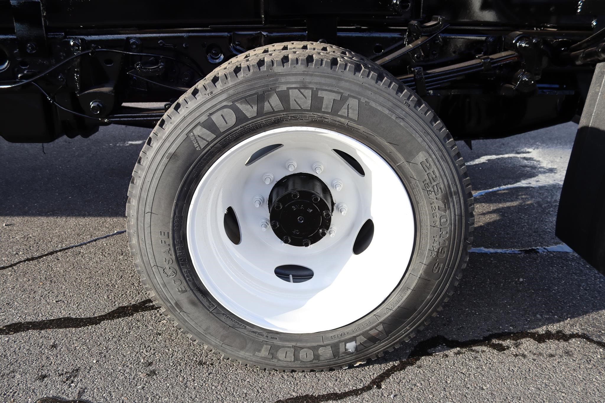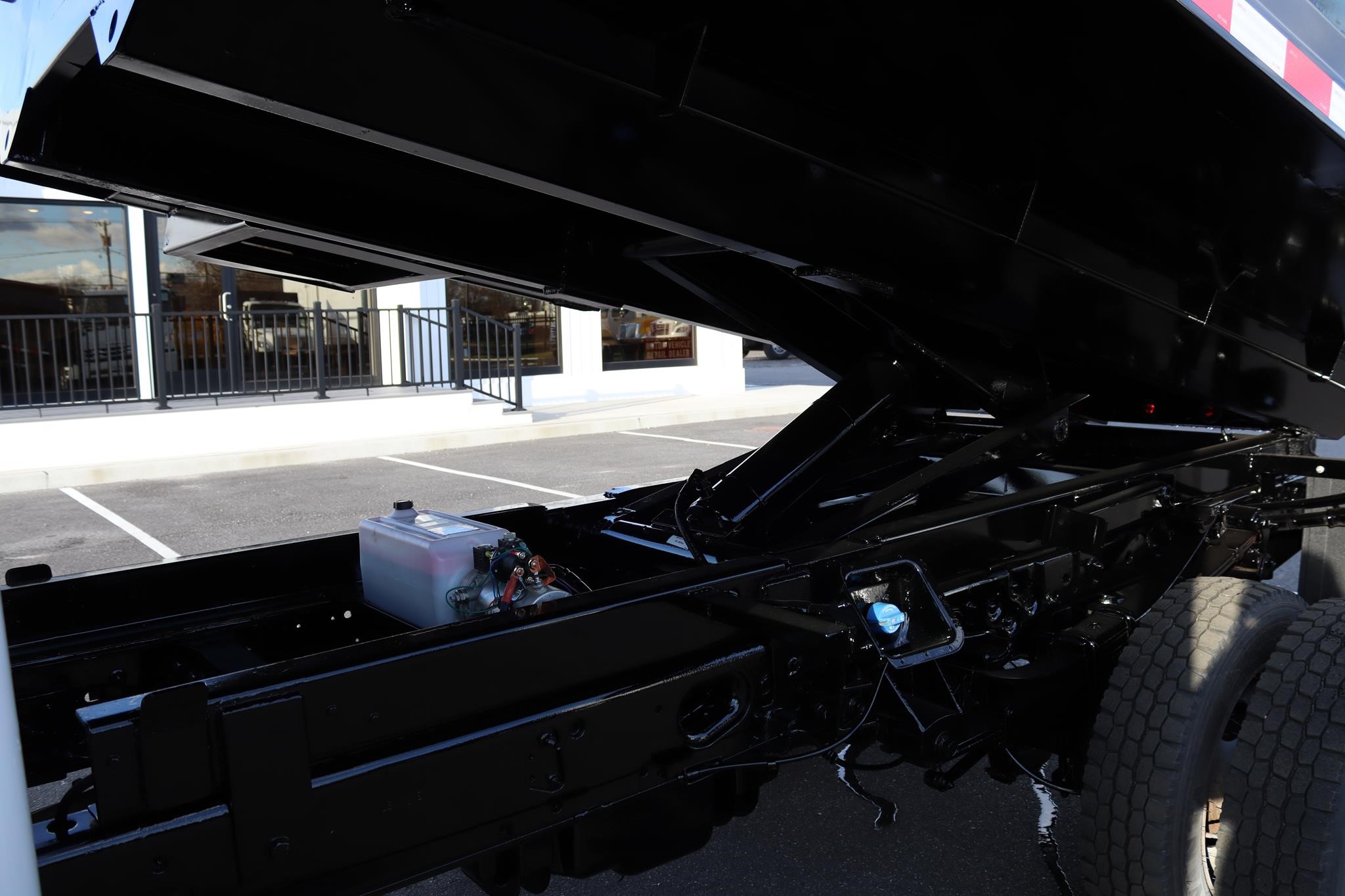 This commercial truck comes equipped with a Brand-New Crysteel 12′ Landscape body (Serial # – 41225606) that has 48” sides, 20″ cab protector, 15″ x 7″ centered chute, a curb side swing door with step, rear swing door with aluminum ramp and two-way gate, and is equipped with a U.S tarp, front winch, 8-ton ball tow hitch and 7-way flats plug in the rear.
