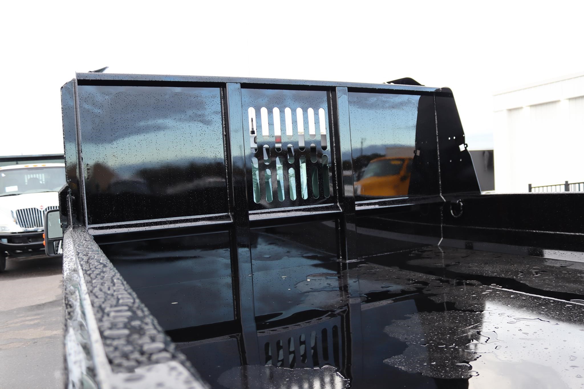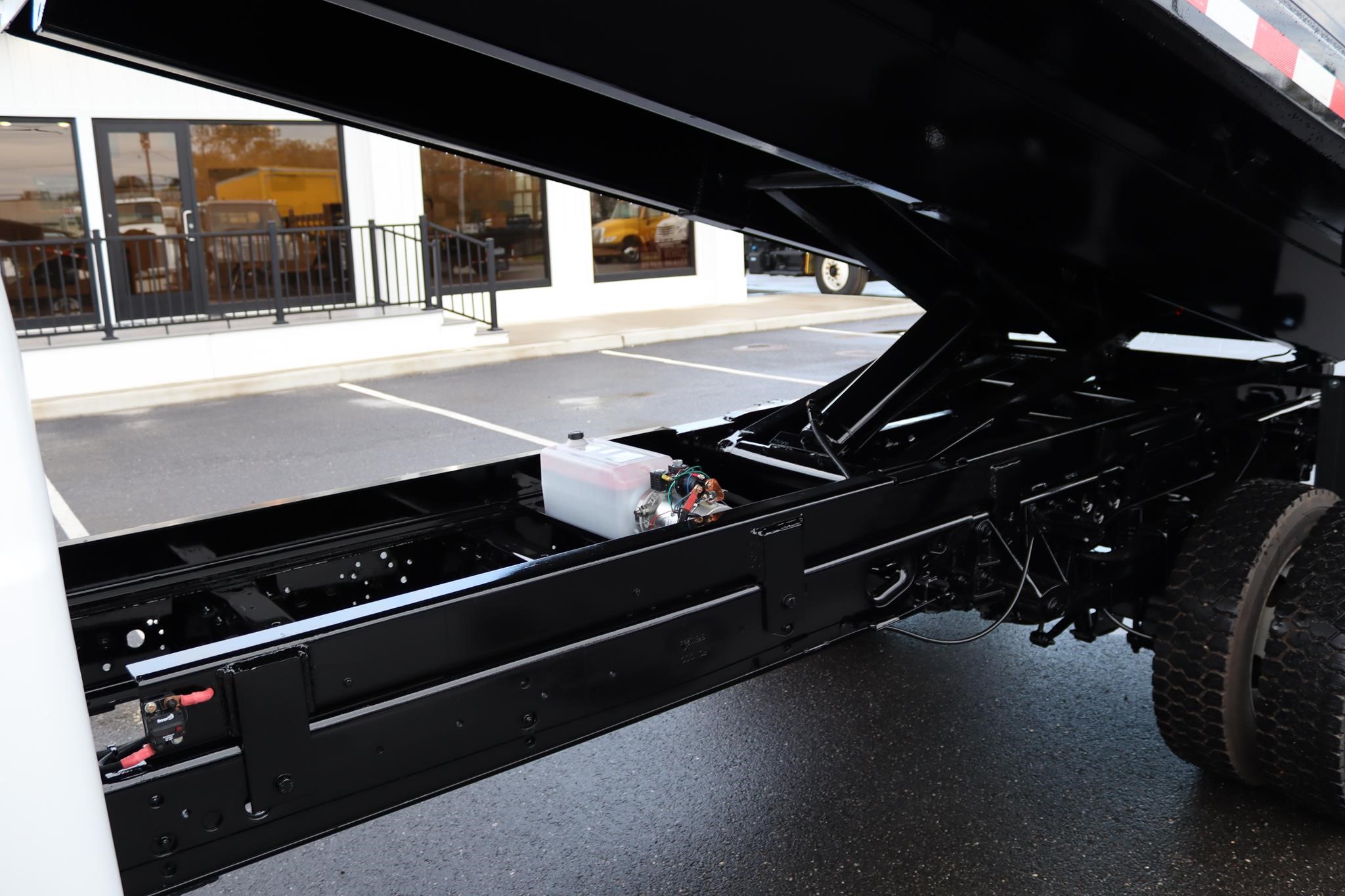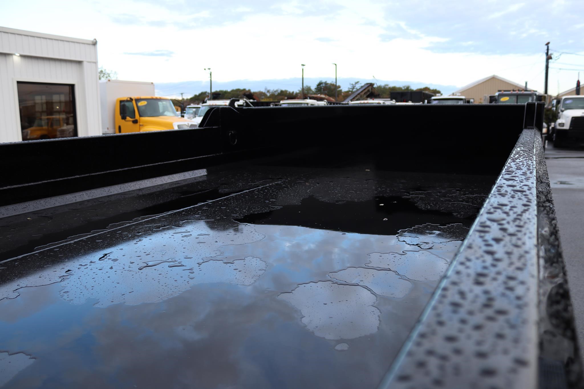 This commercial truck comes equipped with a Brand-New Crysteel 13′ Mason body (Serial # – 41226415 / Hoist Model – LB520) that has 14″ sides, 20″ cab protector, and is equipped with a 20-ton pintle hitch, and 7-way flats plug in the rear.