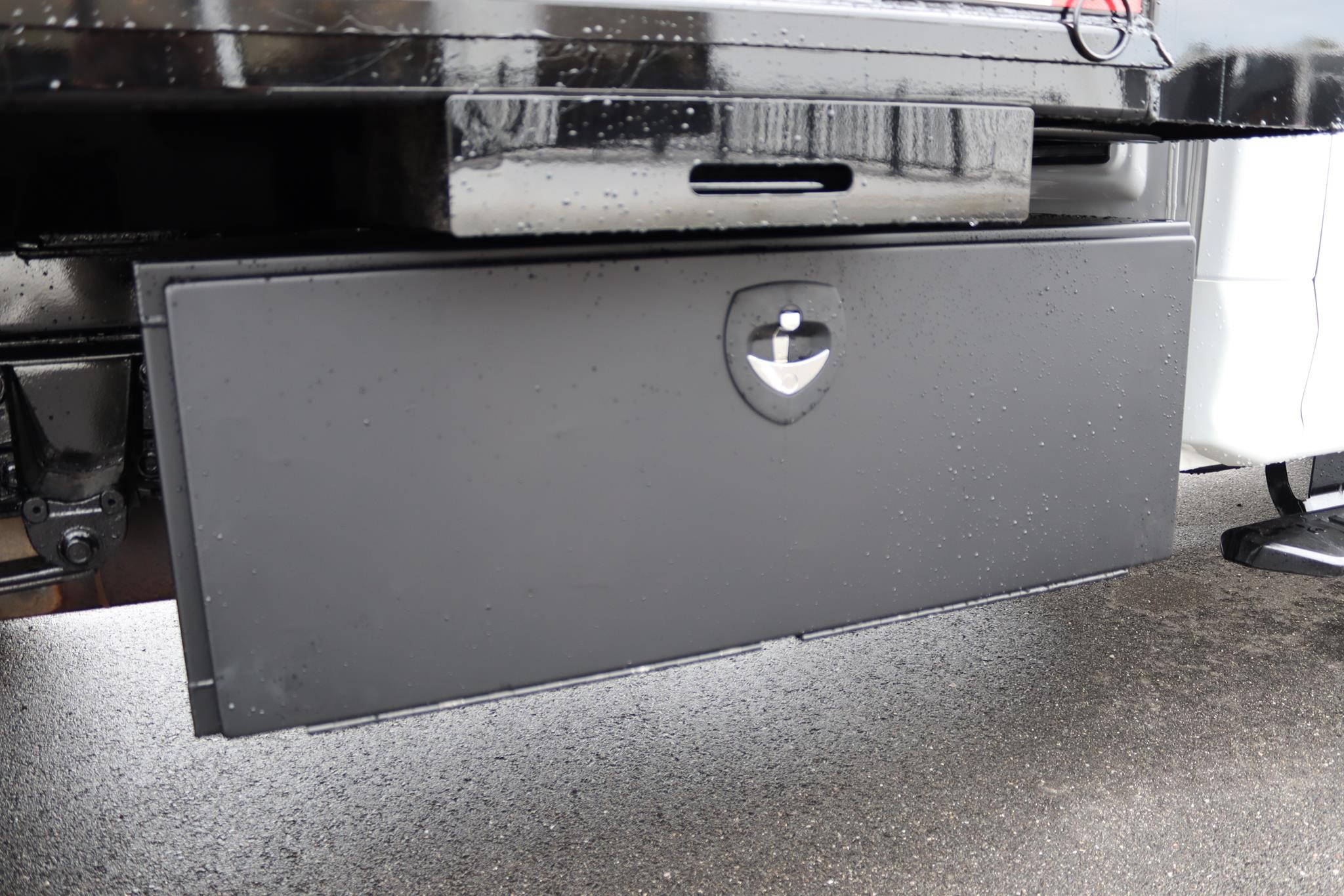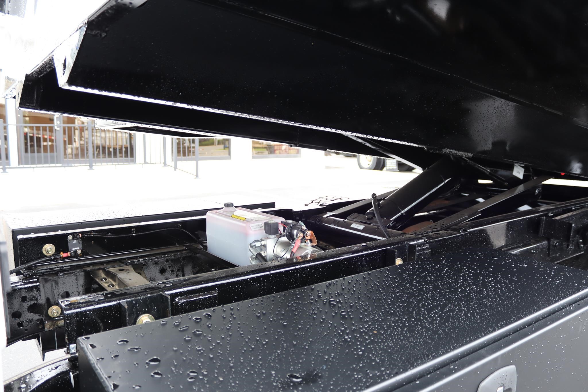 This commercial truck comes equipped with a Brand-New Crysteel 12′ Landscape body (Serial # – 41225266 / Hoist Model – LB520) that has 48” sides, 20″ cab protector, rear swing doors, a curb side swing door with step, and is equipped with two toolboxes that measure 48X18X18″, a pro series Rouch country 12,000LB electric winch, and an ARB twin motor 12v on board air compressor.