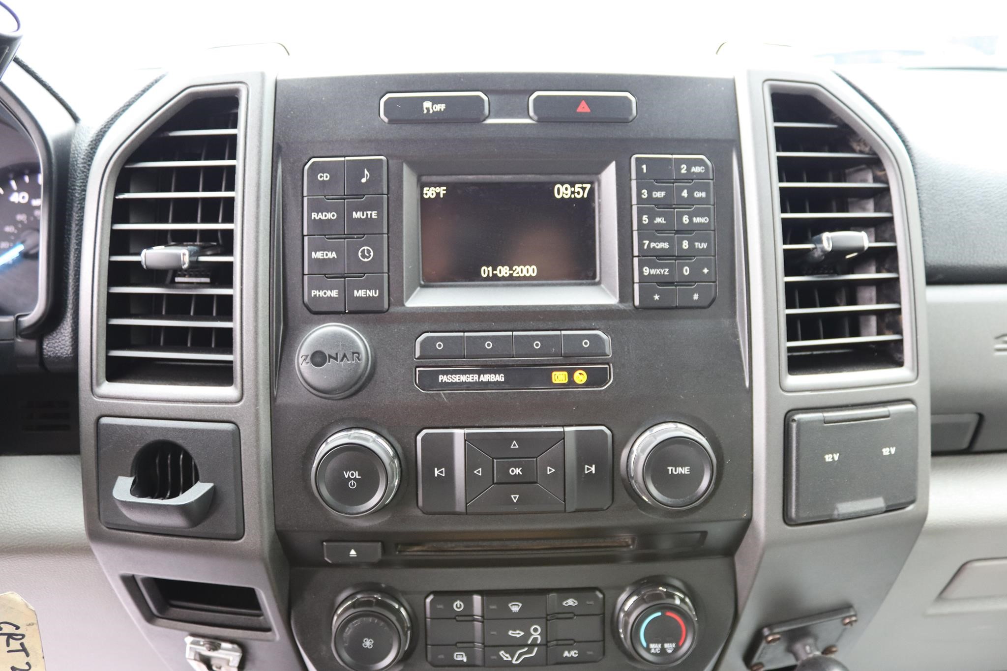 The interior features split bench seats, cruise control, A/C, AM/FM/BT radio, tilt-tele, heated mirrors, power locks, power windows, and strobes.