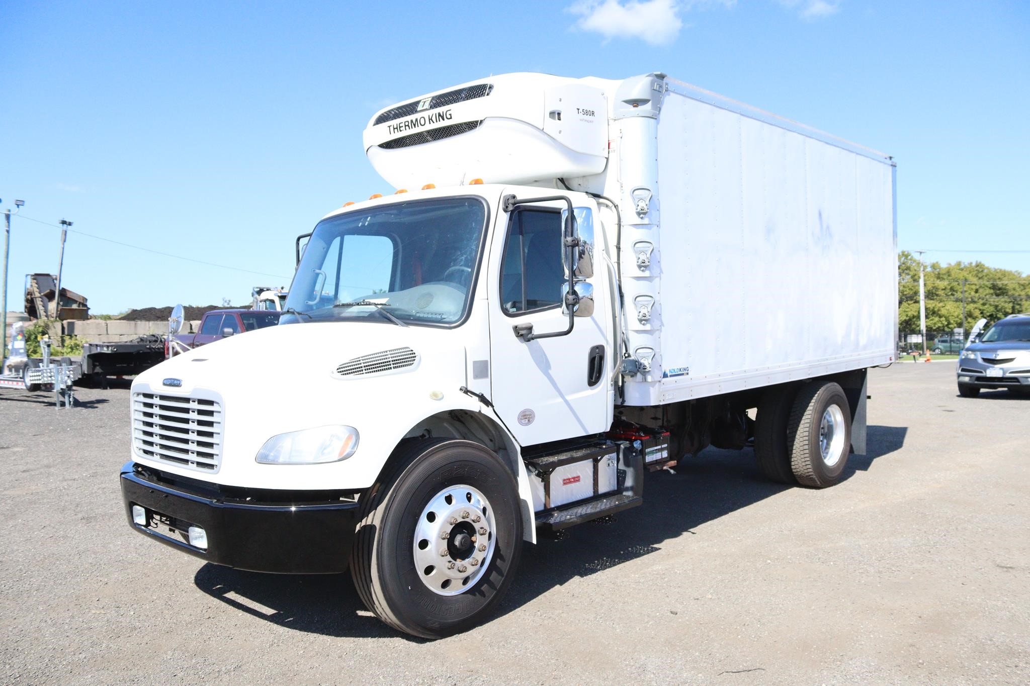 You’re viewing a 2017 Freightliner M2 106 Non CDL 16ft Reefer Truck #JE3802. The truck has a 240HP Cummins 6.7L diesel engine and automatic Allison 2500 RDS transmission with 123,443 miles and 9,119 hours. The interior features two bucket seats, an air ride driver seat, air brakes, tilt-tele, cruise control, heated mirrors, A/C, AM/FM radio, power locks and windows. This truck sits on an air ride suspension and 22.5 tires with aluminum rims. The Supreme body (Serial # – SVG16085096-G0103086) has an aluminum flat floor, two rows e-track, ramp and is also equipped with a Thermo King T-580R Whisper that has 1,480 hours and is equipped with standby. The Box and unit are available separately for $21,500. This vehicle qualifies as a Cassone Truck Sales Pre-Owned vehicle which includes a 30-Day limited Warranty. At Cassone we also offer financing options and nationwide shipping.