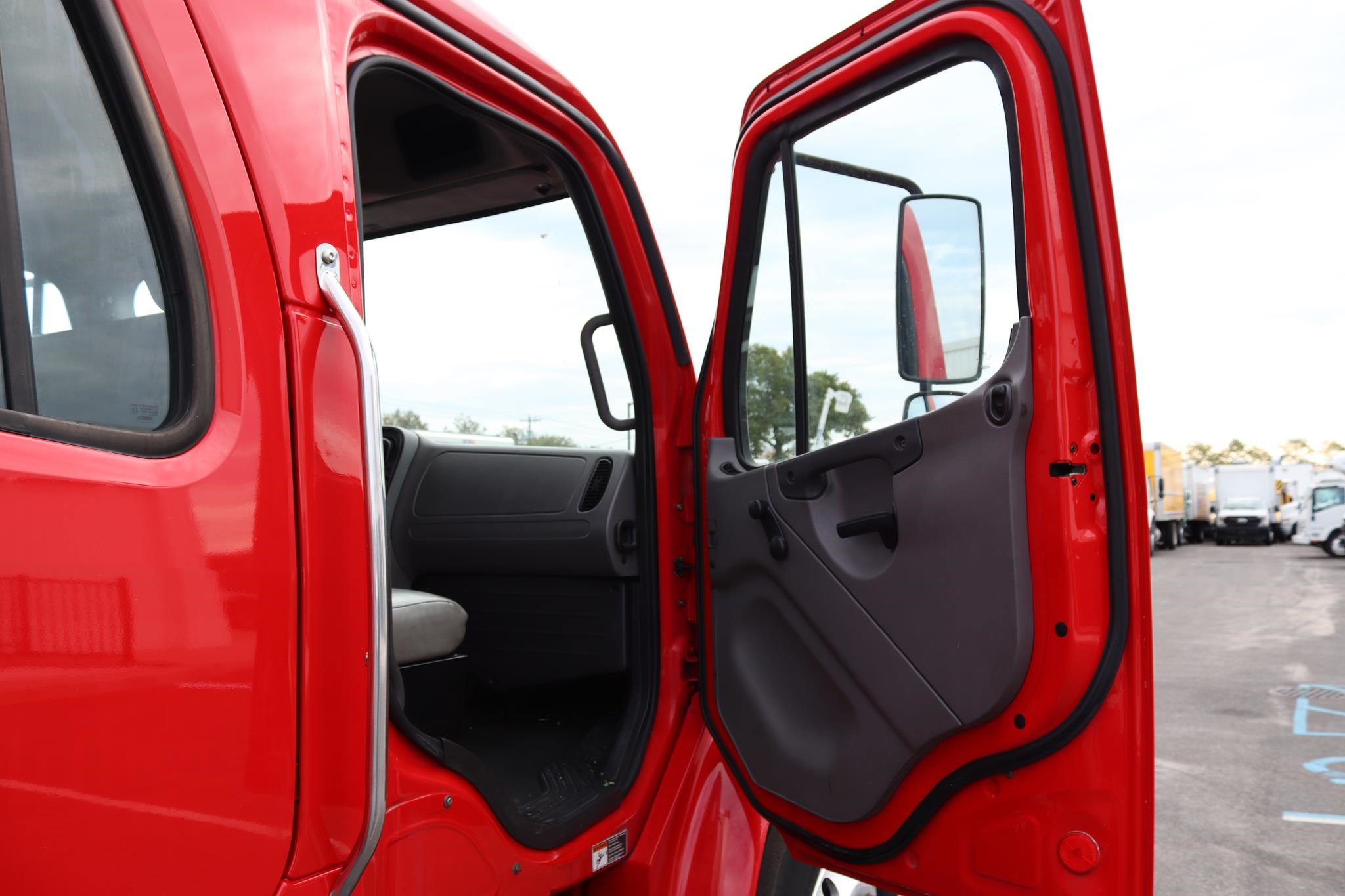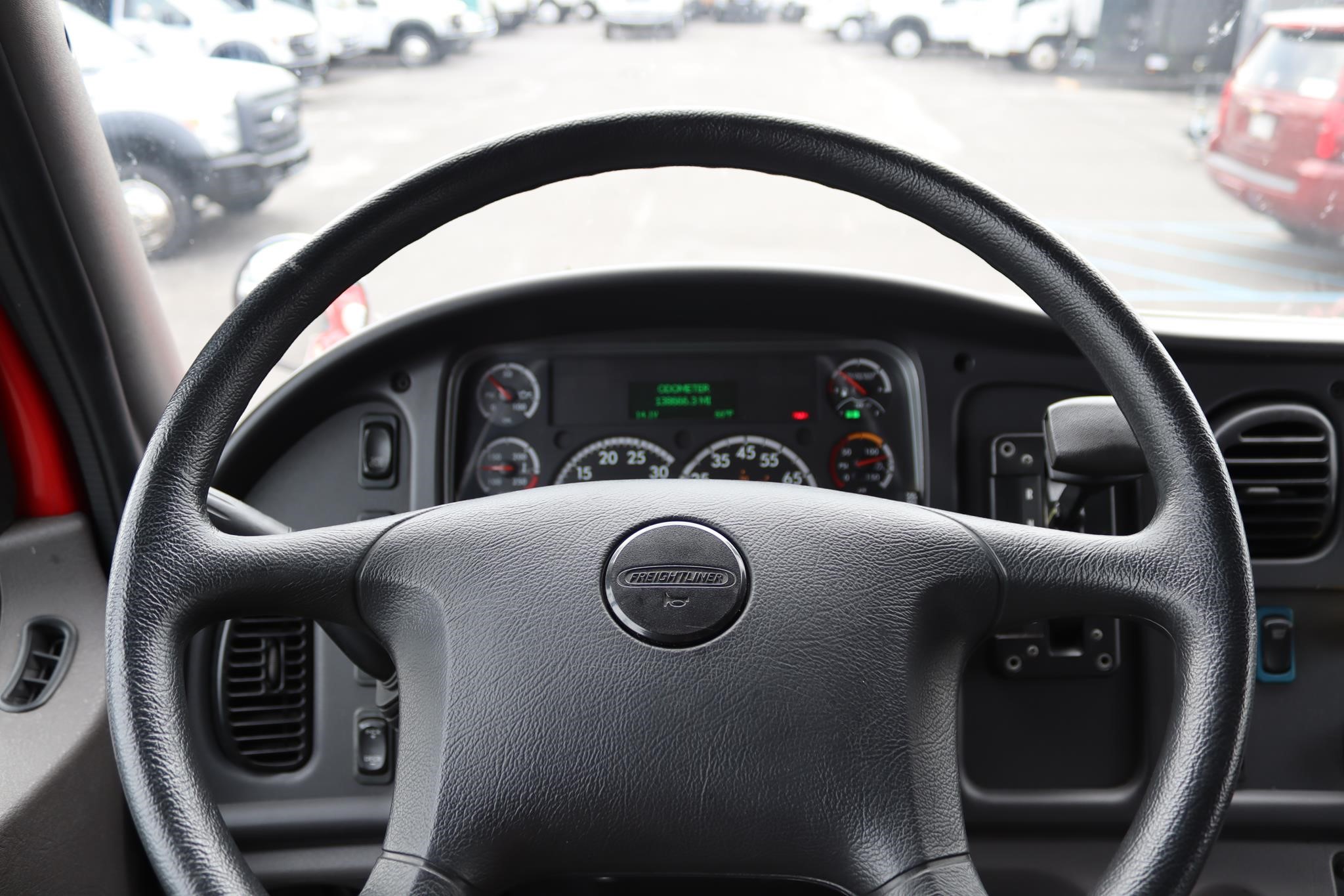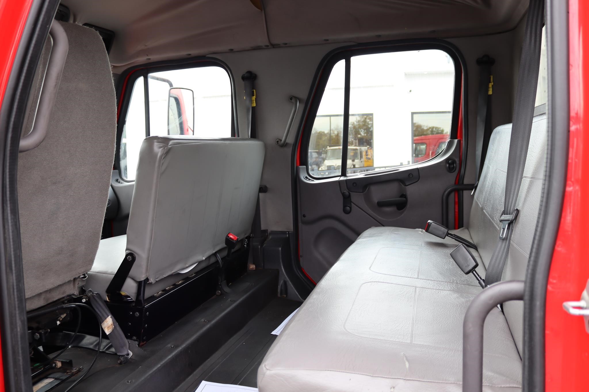 The interior features split bench seats, an air-ride driver’s seat, cruise control, A/C, AM/FM radio, heated mirrors, and air brakes.