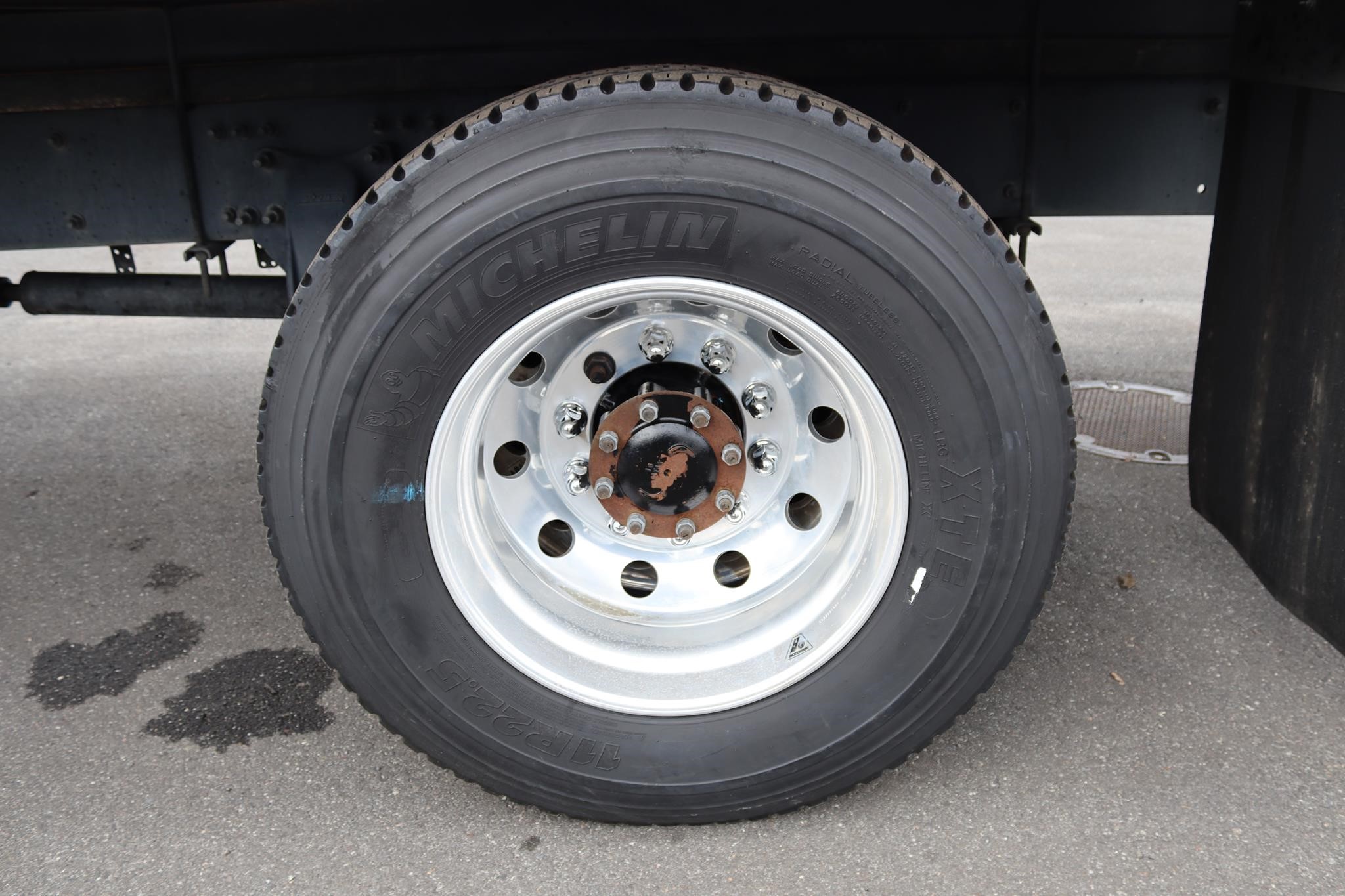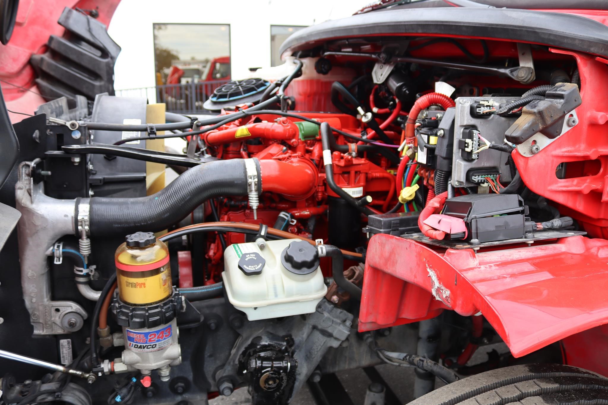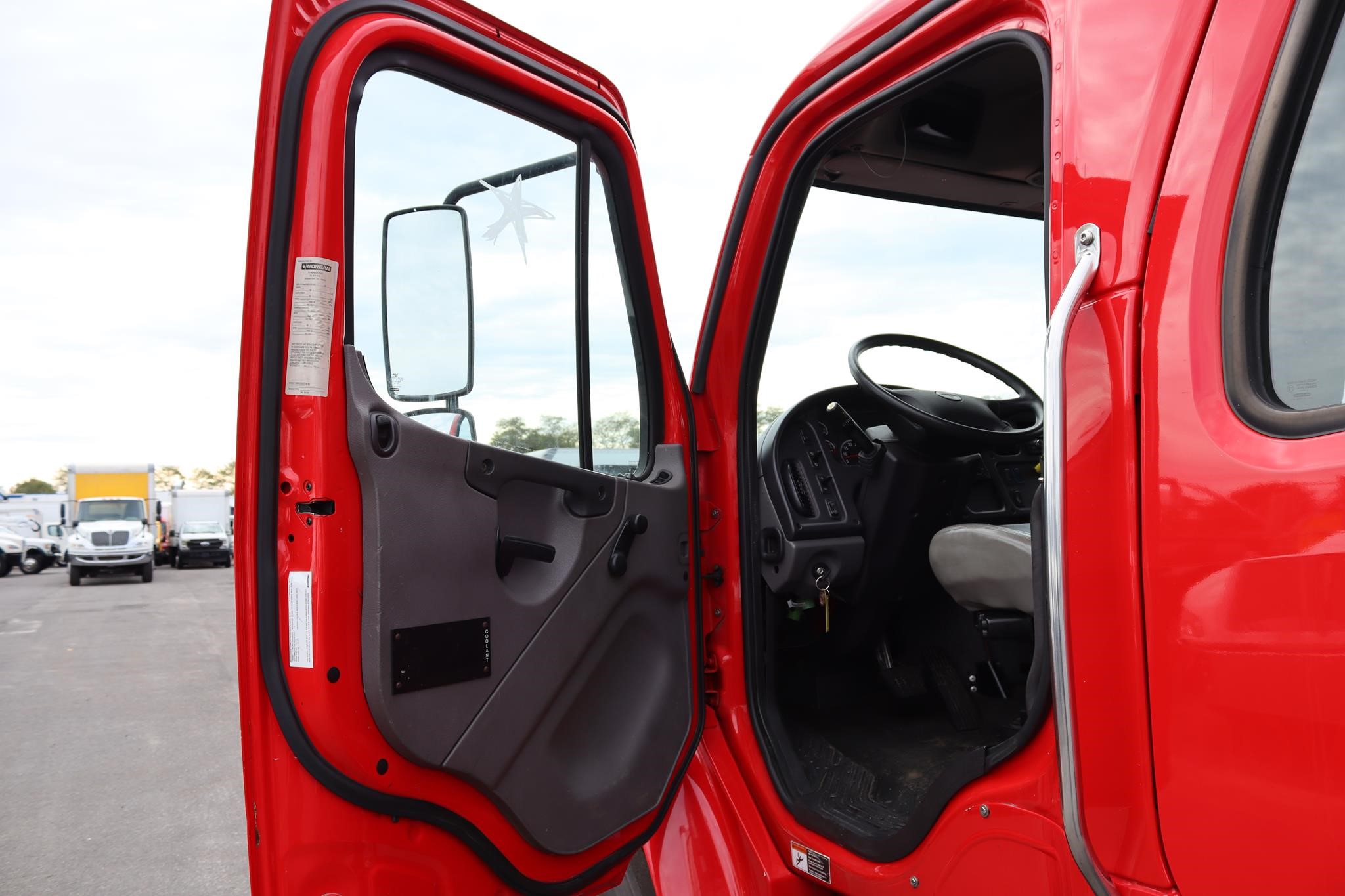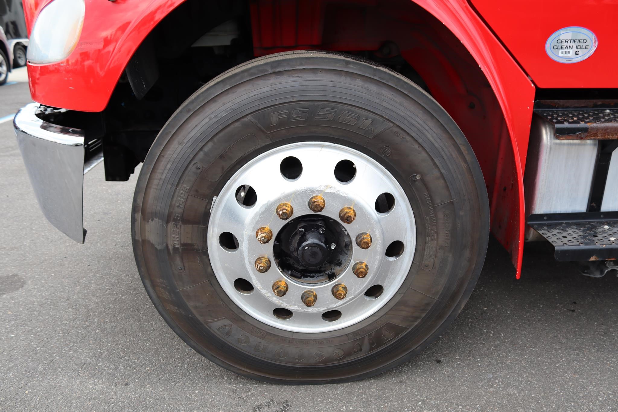 The interior features split bench seats, an air-ride driver’s seat, cruise control, A/C, AM/FM radio, heated mirrors, and air brakes.