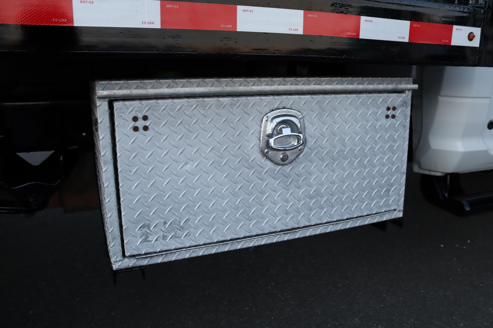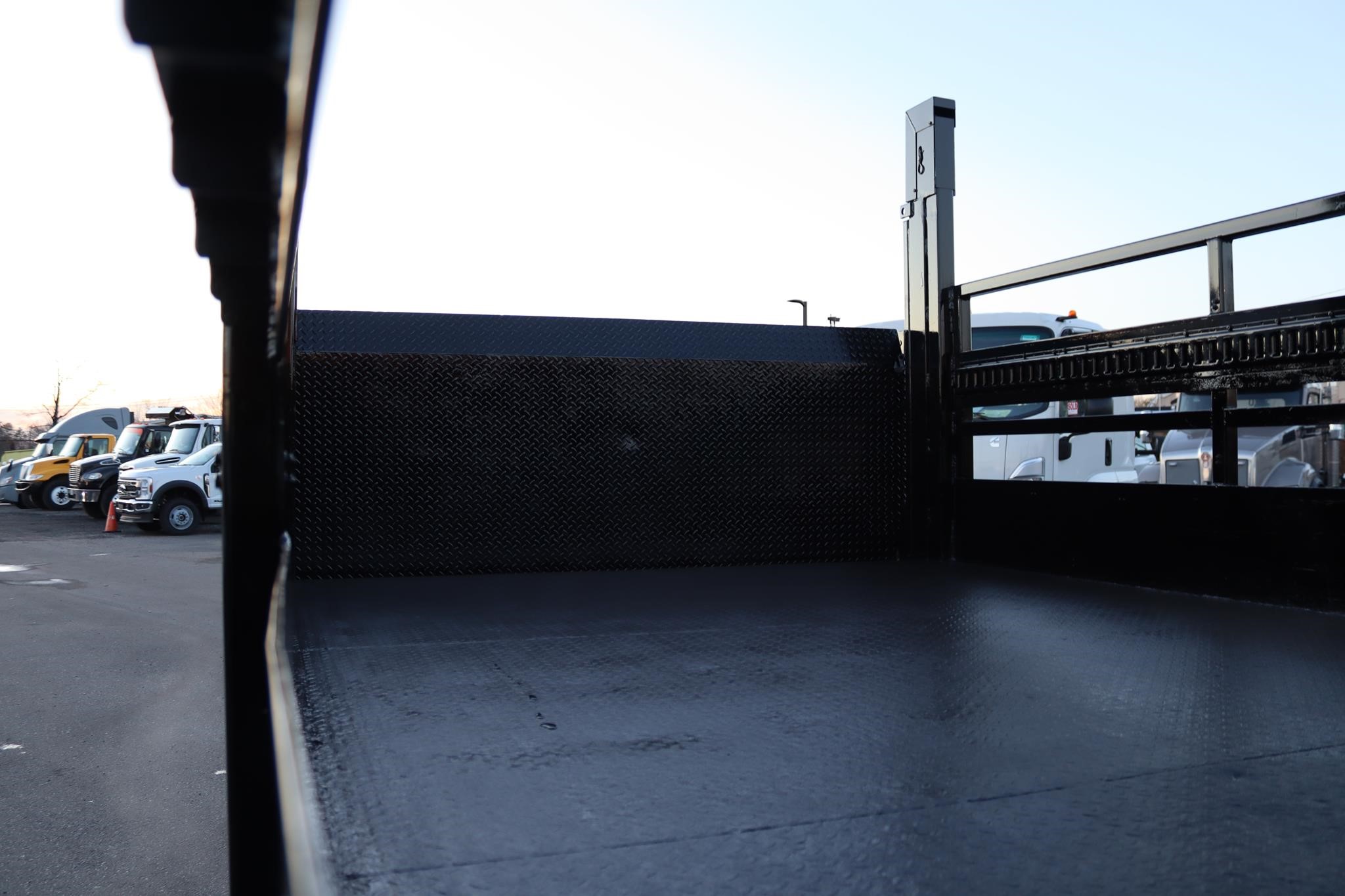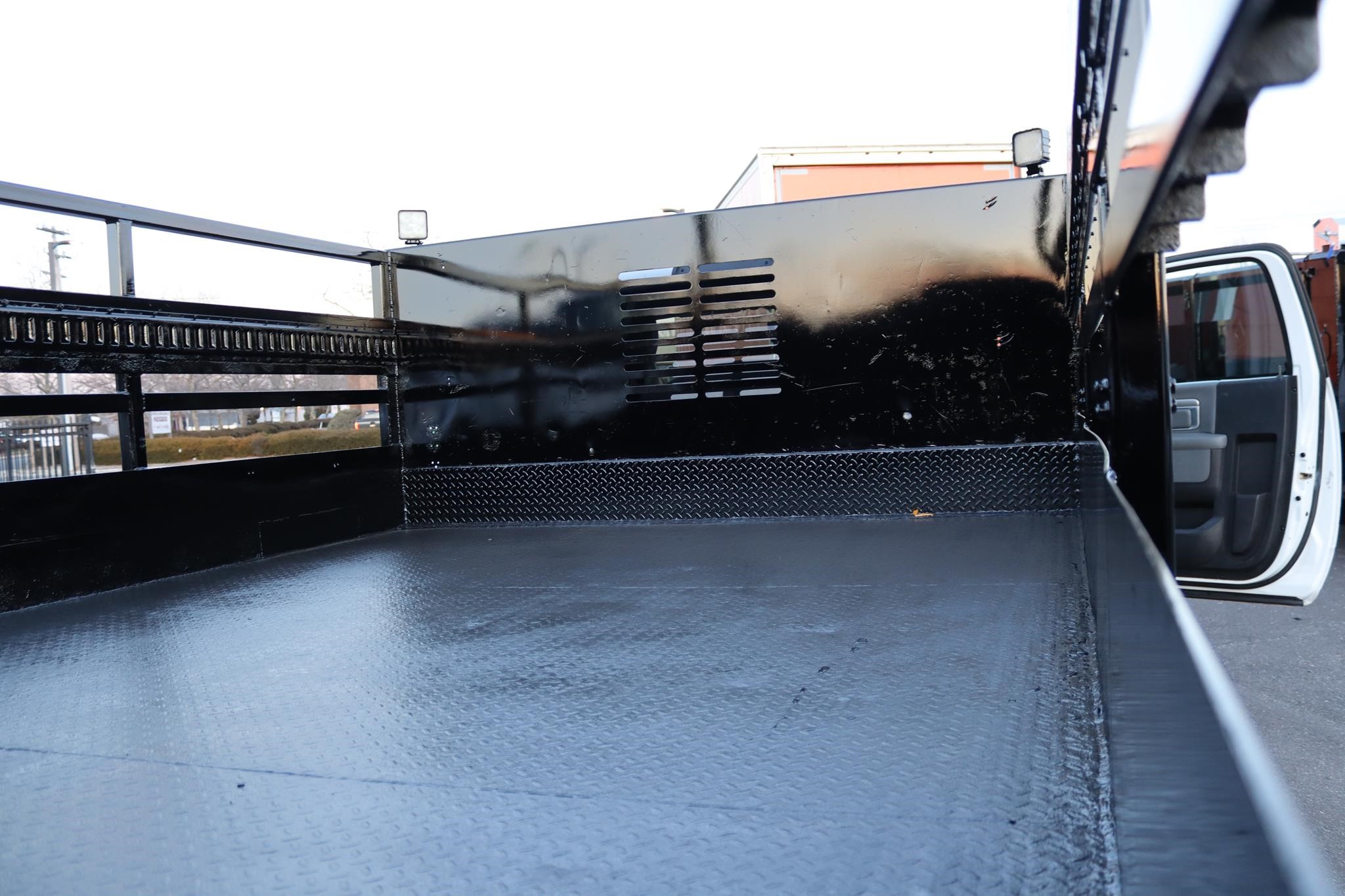 This commercial truck comes equipped with an 12.5′ steel flatbed with racks that measures 92″ wide and 40″ high. The body is equipped with a rear gate that measures 90″ x 42″ and a toolbox that measure 36X18X18″.
