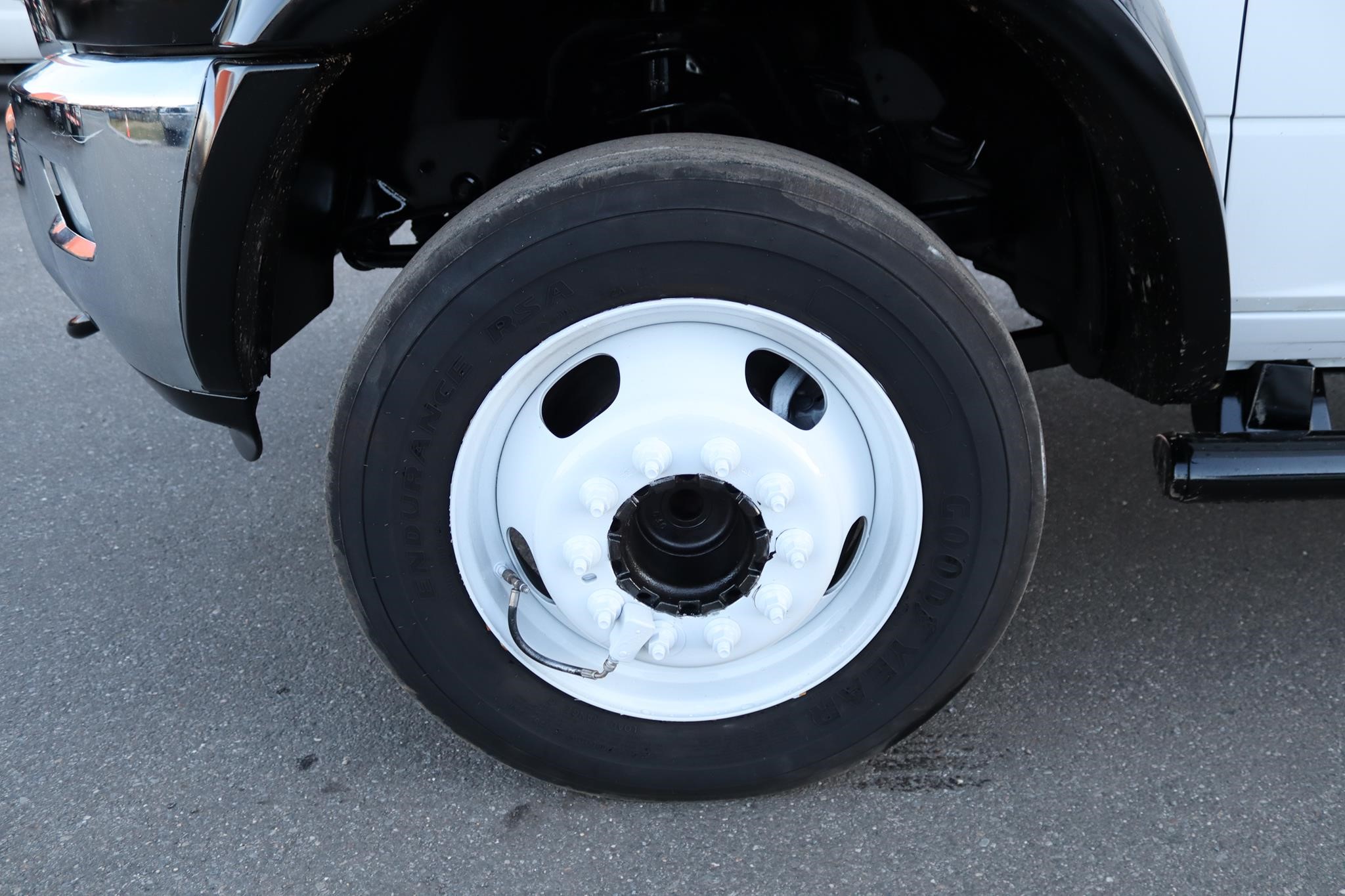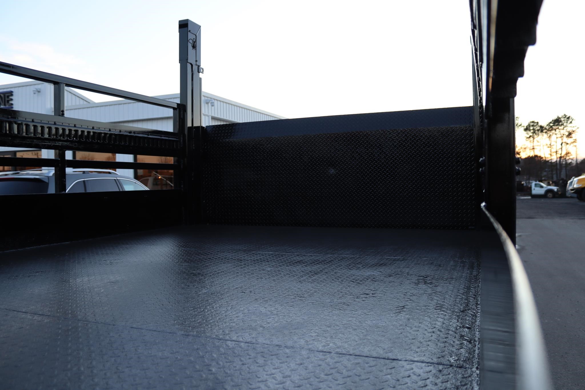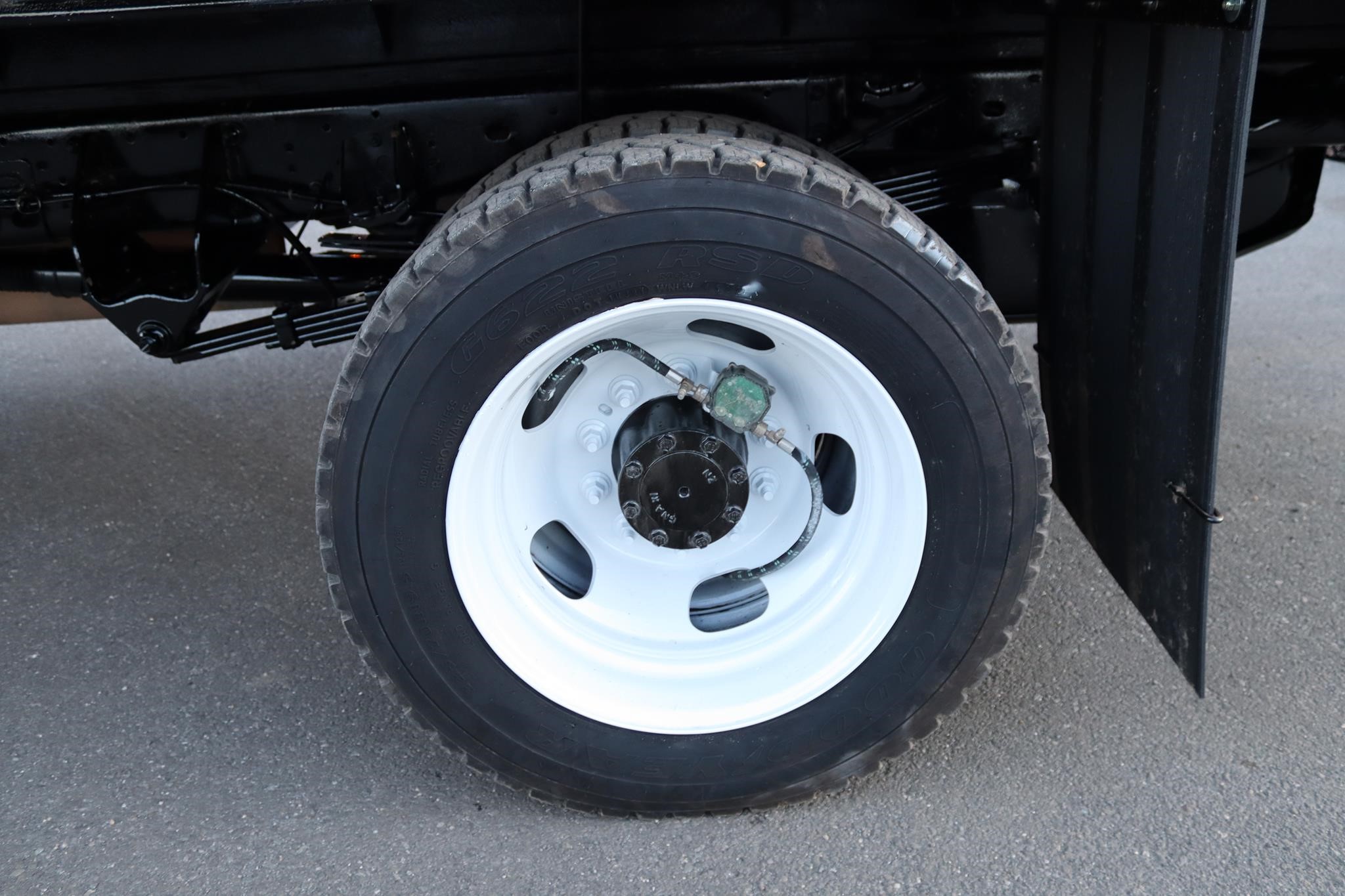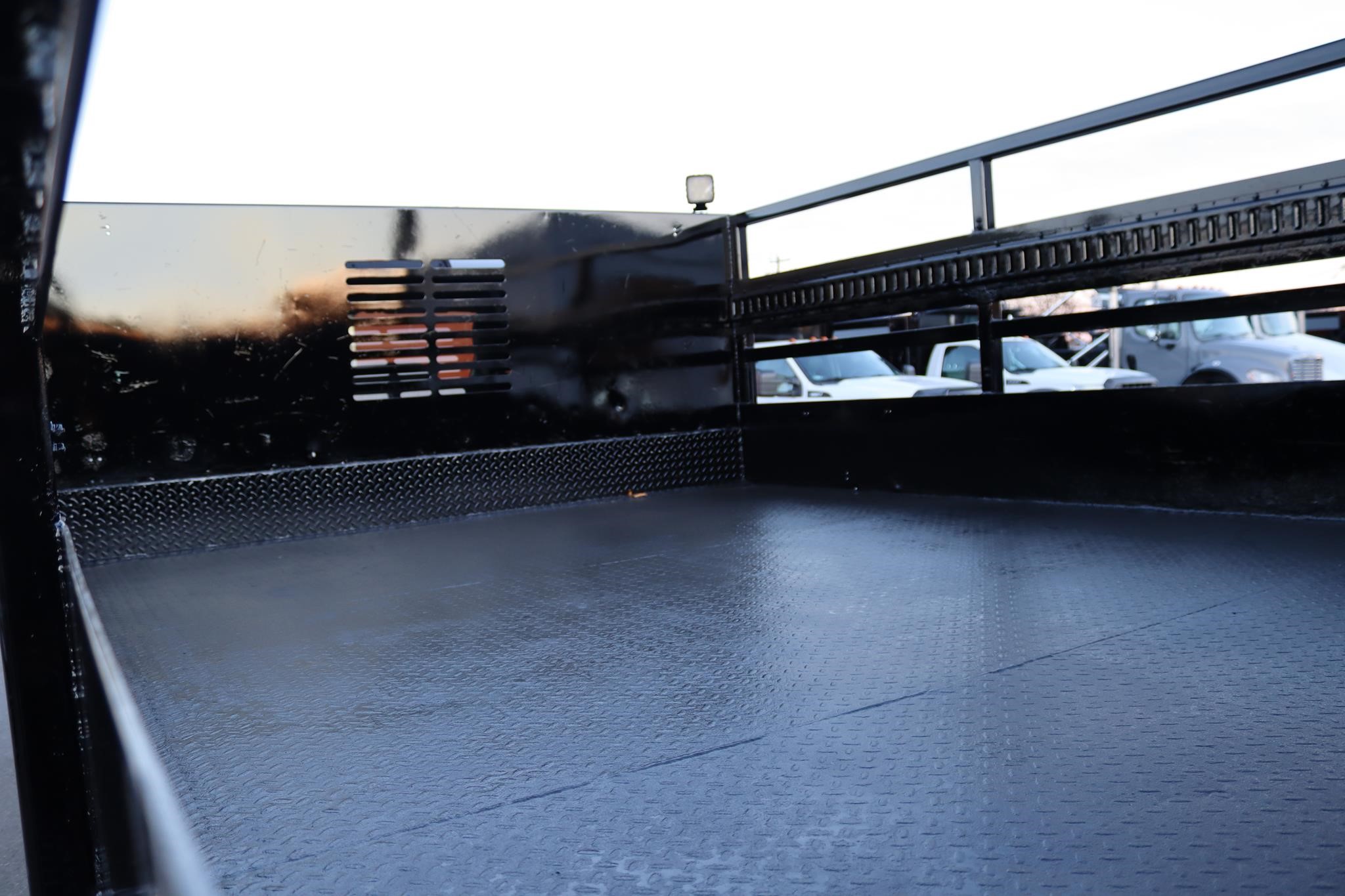 This commercial truck comes equipped with an 12.5′ steel flatbed with racks that measures 92″ wide and 40″ high. The body is equipped with a rear gate that measures 90″ x 42″ and a toolbox that measure 36X18X18″.