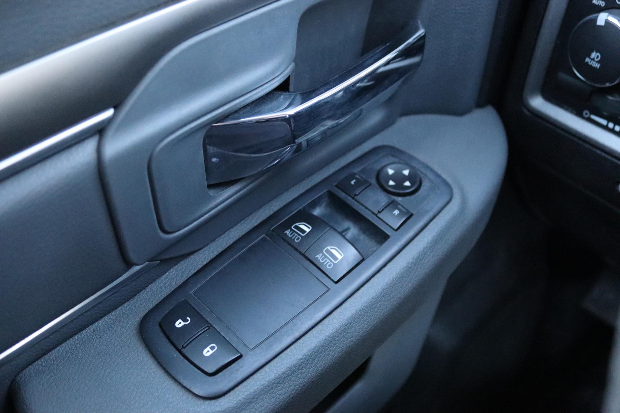 The interior features split bench seats, cruise control, A/C, AM/FM/BT radio, heated mirrors, power locks, power windows, tilt, and backup camera.