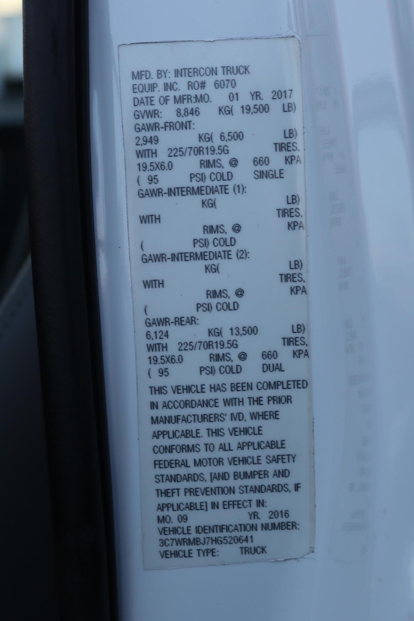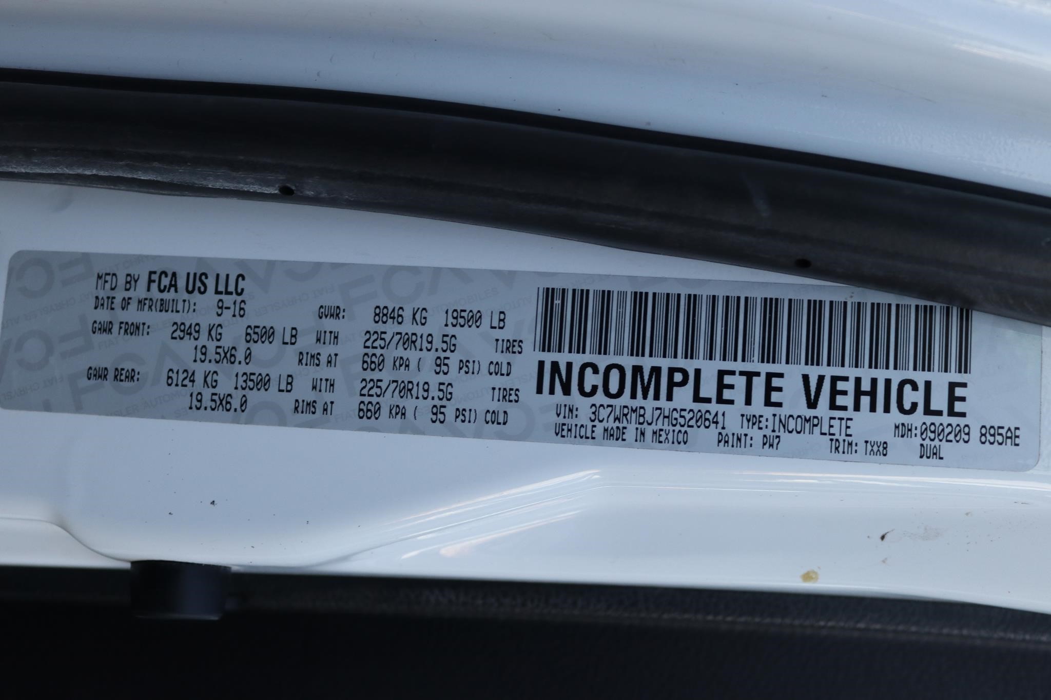 VIN # – 3C7WRMBJ7HG520641