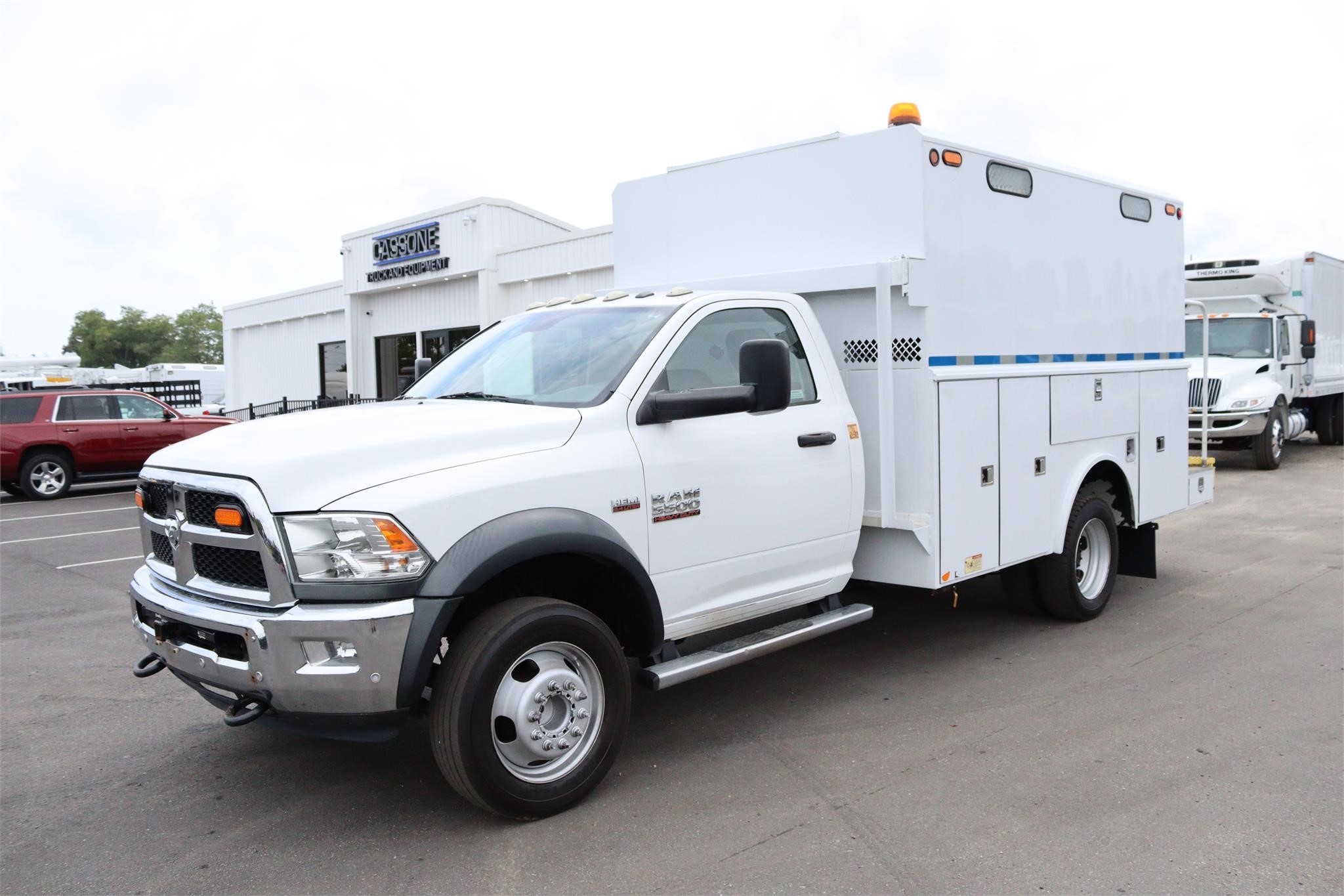 You’re viewing a 2017 Ram 5500 HD Non CDL Utility Service Truck #600070. This truck is powered by a Hemi 6.4L V8 gas engine and an automatic transmission with 71,927 miles and 9,781 hours. The interior features split bench seats, tilt, cruise control, heated mirrors, backup cameras, spotlights, A/C and an AM/FM/BT radio. This truck sits on a spring suspension and 19.5 tires with aluminum rims. The utility body measures 11.5 foot long and is equipped with a roll up door, VMAC Compressor and a front and back receiver hitch. Financing Available.