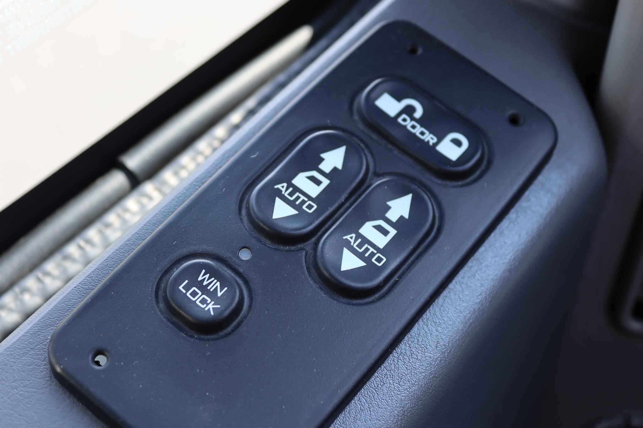 The interior features an air ride driver seat, split bench seats, cruise control, A/C, AM/FM radio, tilt, power locks, power windows, and air brakes.