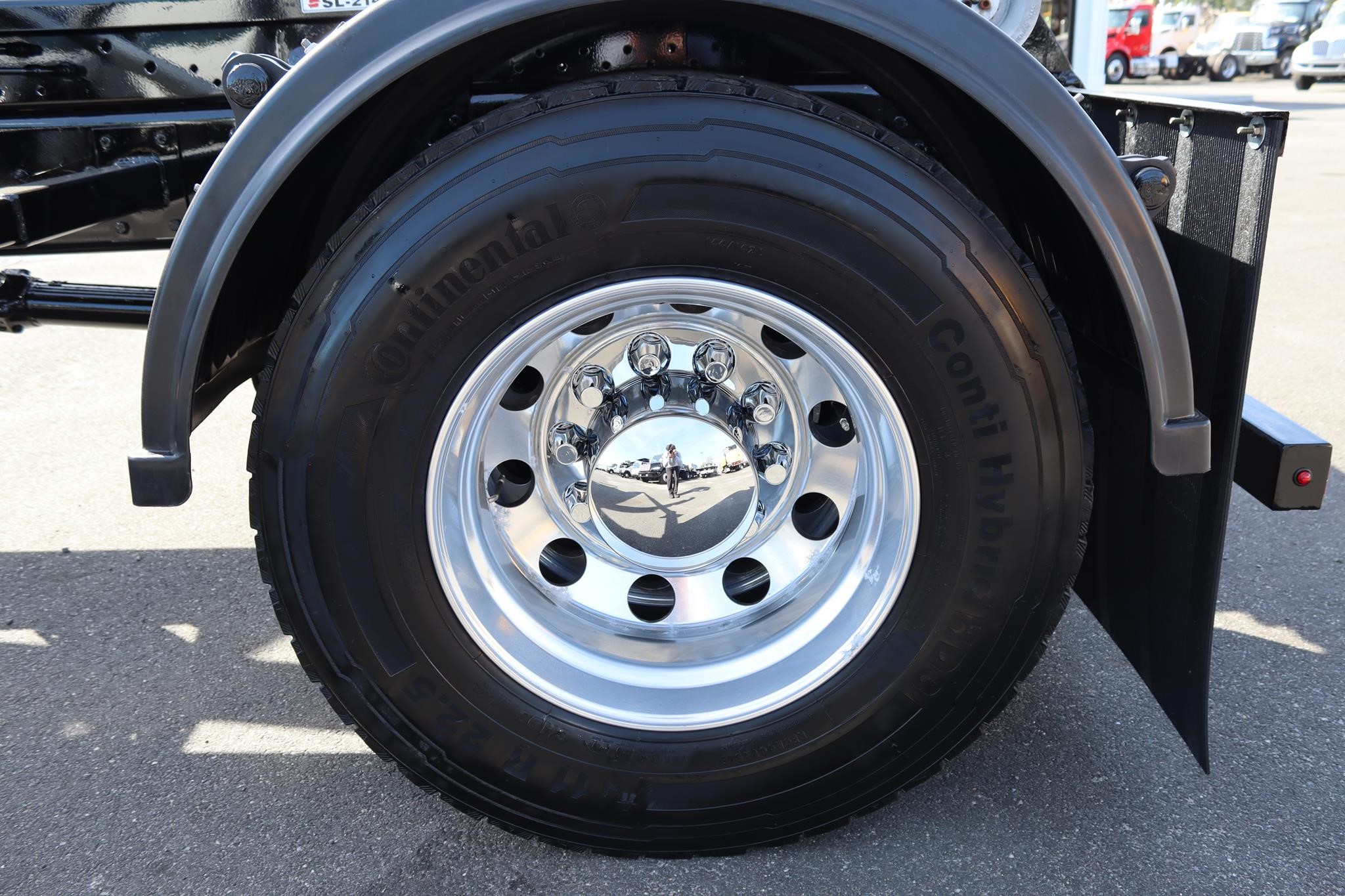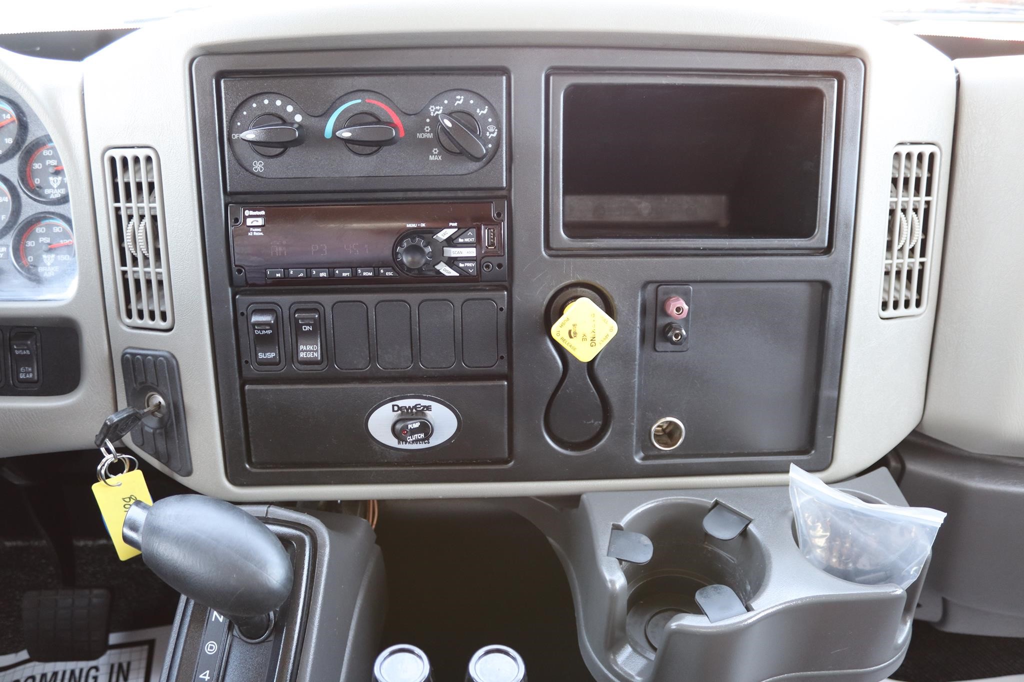 The interior features an air ride driver seat, split bench seats, cruise control, A/C, AM/FM/BT radio, heated mirrors, tilt, work light, and air brakes.
