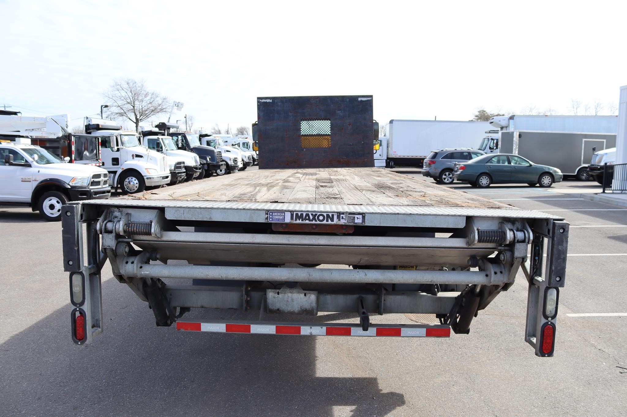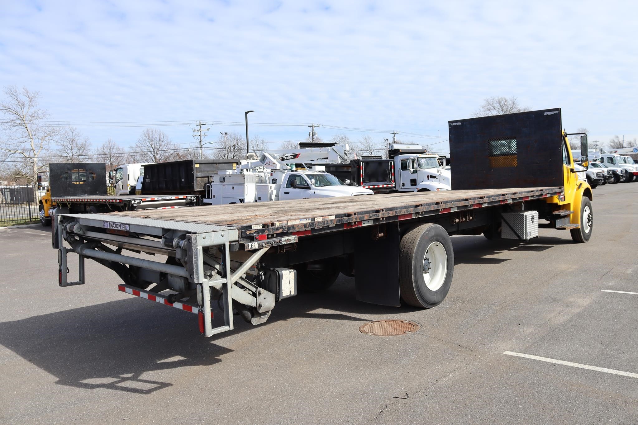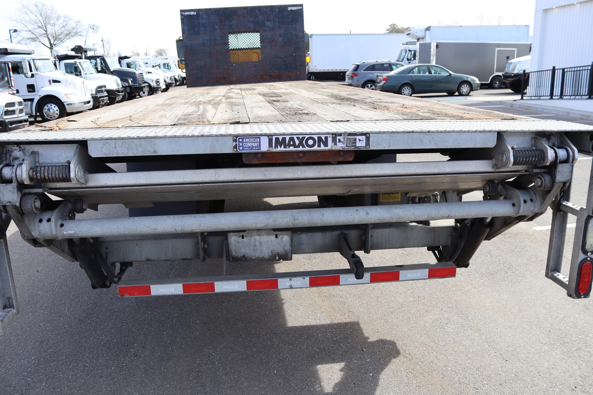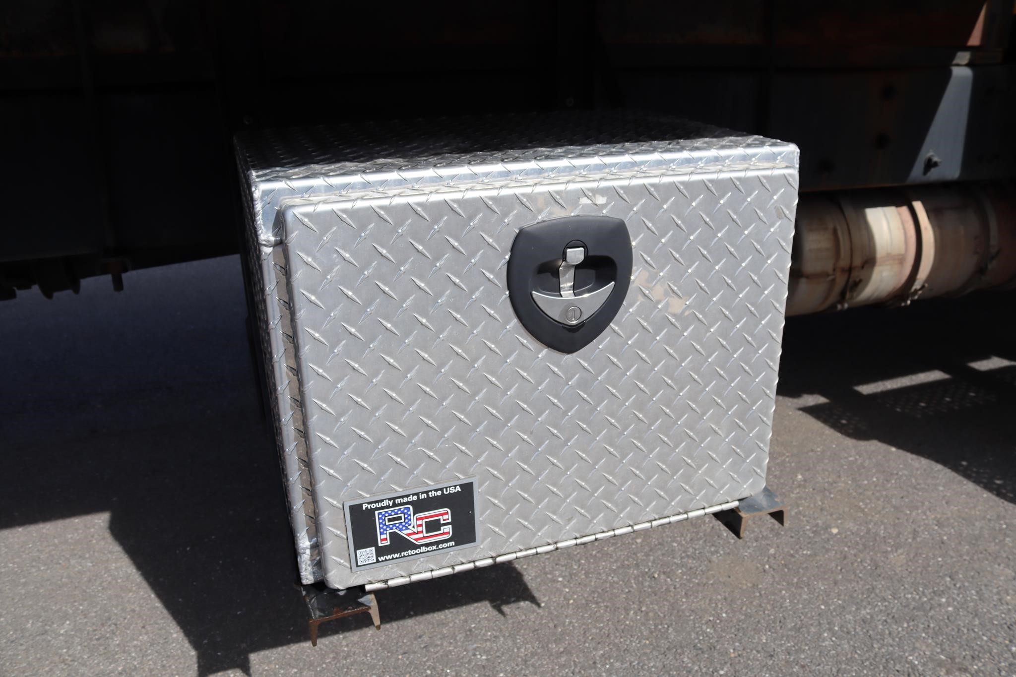 This commercial truck comes equipped with a Mogan 26′ Flatbed that measures 98″ in width, with a 60″ Bulkhead, and is equipped with a wooden deck, RC toolbox that measures 24X18X18″, and a 2019 Maxon GPT Liftgate (Serial # – 1802423629) that has a 3,000LB capacity and measures 80″ X 60″.