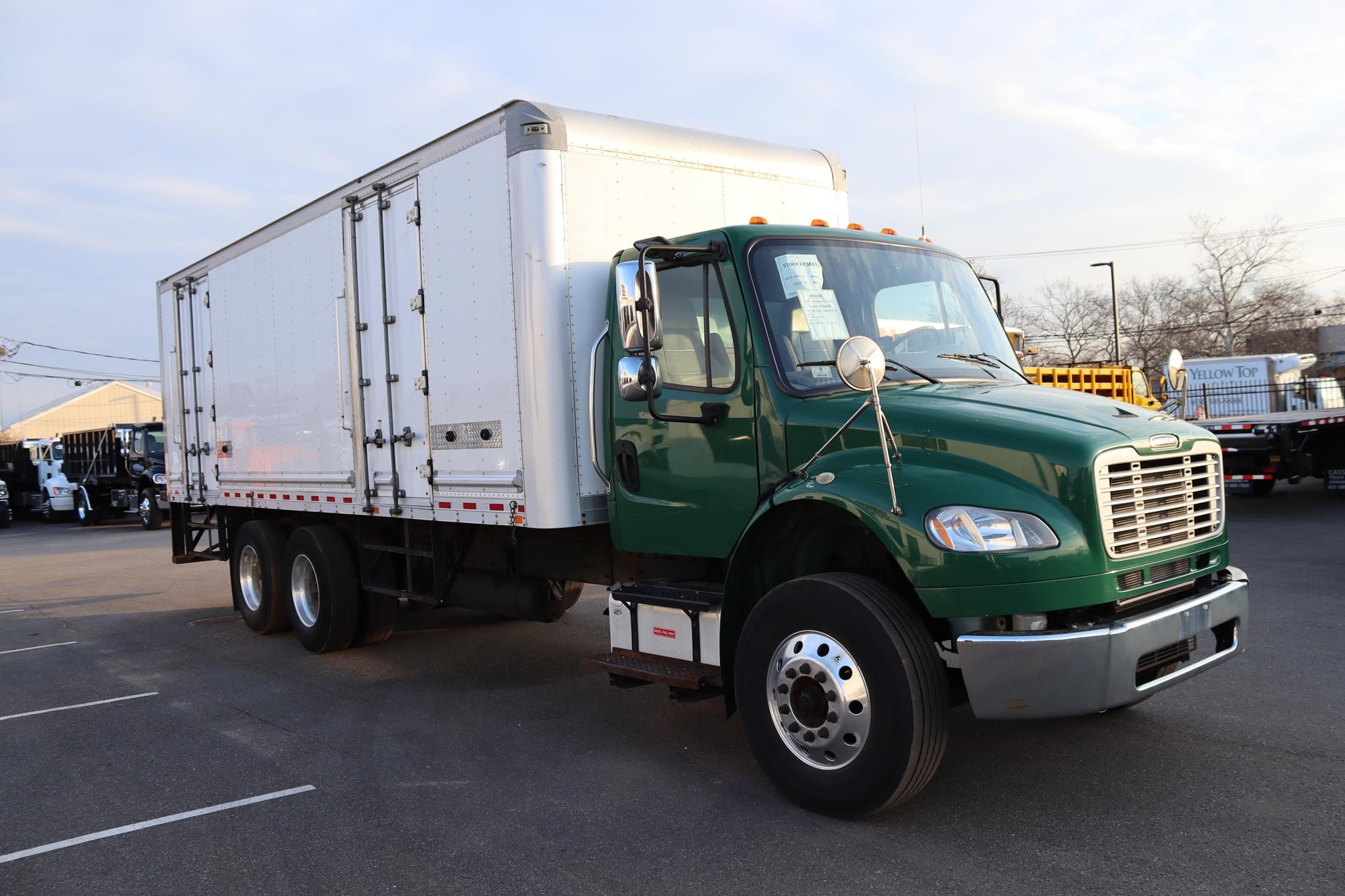 You’re viewing a 2019 Freightliner M2 106 CDL 24′ Box Truck #KM4762. This truck is powered by a 300 HP Cummins L9 diesel engine and an automatic Allison 3000 HS transmission with 156,509 miles and 7,851 hours on the odometer. The Freightliner is equipped with an air ride suspension, 22.5″ tires, and aluminum rims.