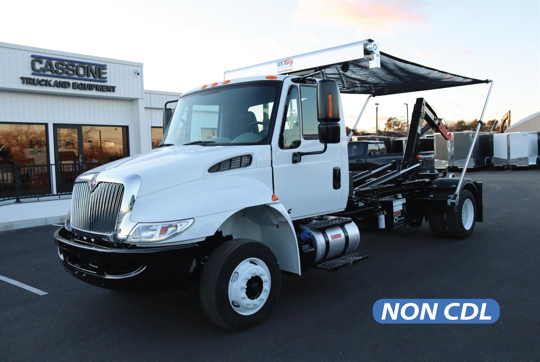 You’re viewing a 2019 International Durastar 4300 Non CDL SL160 Hooklift Truck #580921. The truck has a 220HP Cummins 6.7L diesel engine and an automatic transmission with 147,531 miles and 4,593 hours. The interior features two bucket seats, air ride driver seat, cruise control, A/C, AM/FM/BT radio, tilt and air brakes. The truck sits on a spring suspension and 19.5 tires with steel rims. It comes equipped with a Brand-New Swaploader SL160 Hooklift (Serial # – VK0261) with a 16,000lb capacity and an adjustable 36” and 54″ hook (Works in Gear) that can take 10ft – 15ft containers and comes equipped with a Brand-New Single Stage U.S Tarp System (Serial # – 110824-1192). This vehicle qualifies as a Cassone Truck Sales Pre-Owned vehicle which includes a 30-Day limited Warranty. At Cassone we also offer financing options and nationwide shipping.