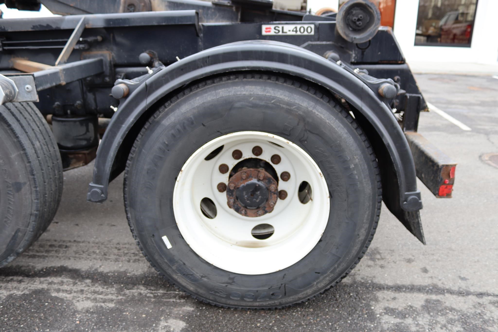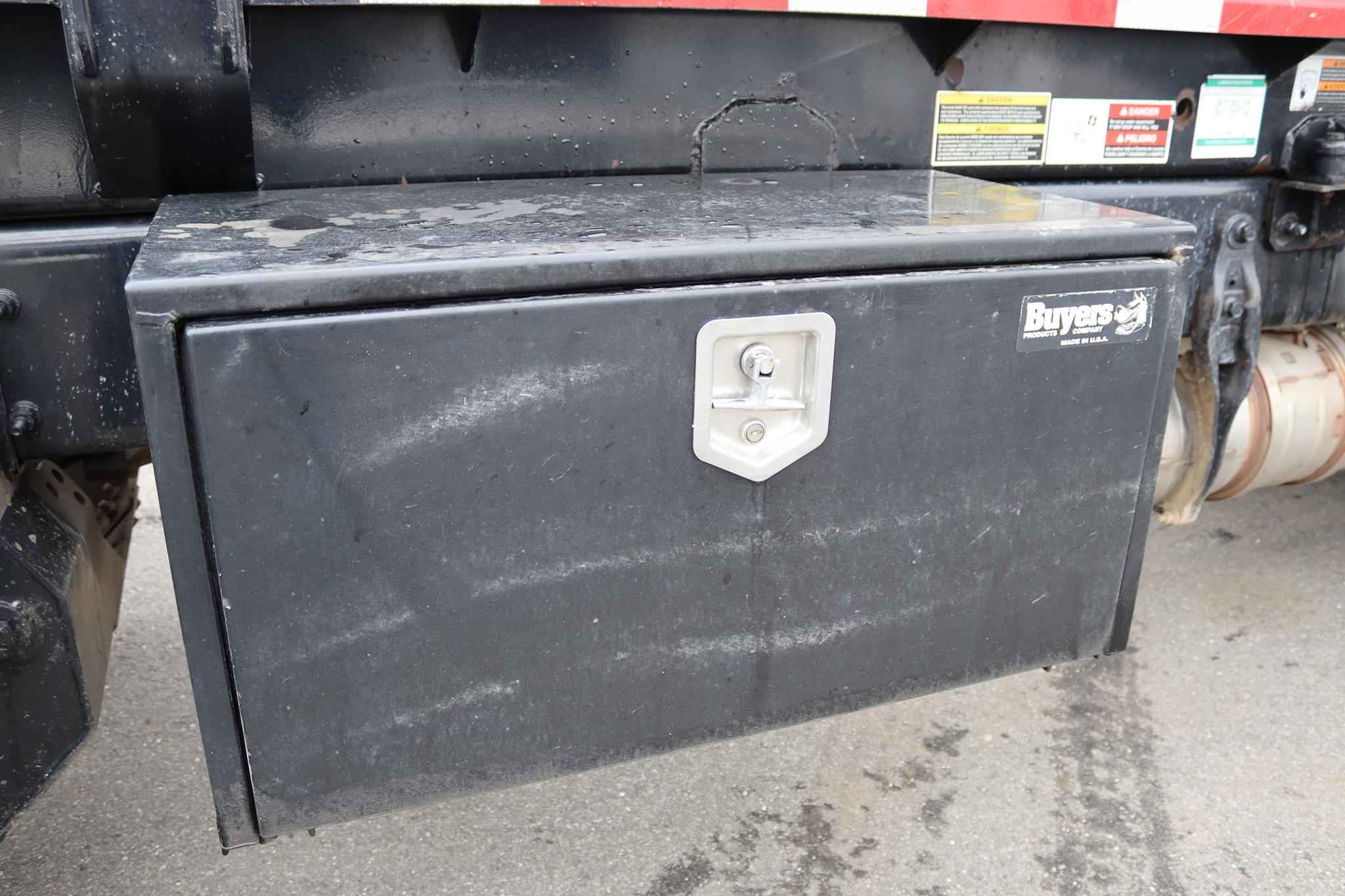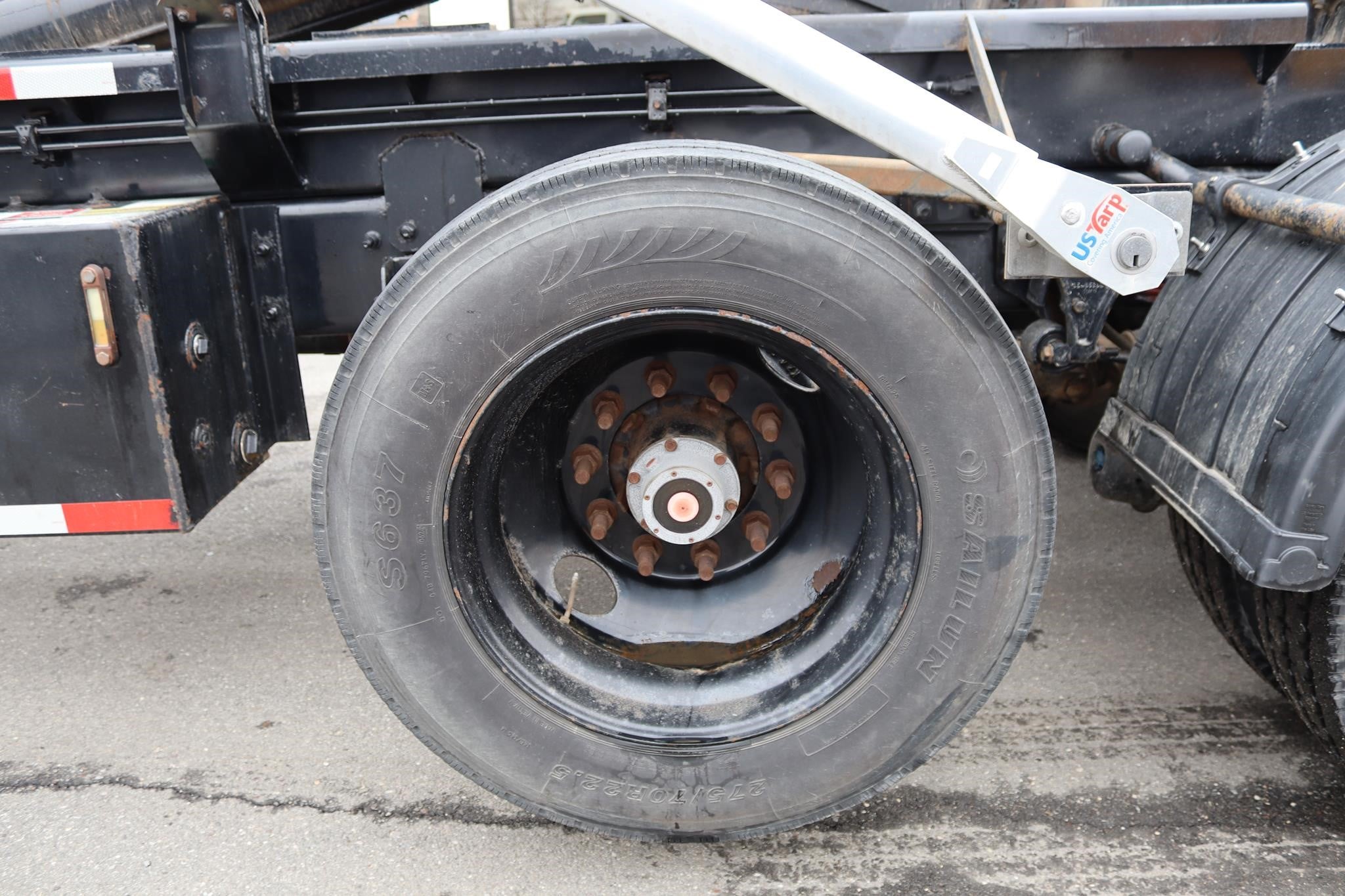 This commercial truck comes equipped with a Used 2019 SwapLoader SL-400 Hooklift (Serial # – WO1091), which has a 40,000 LB capacity and an adjustable 54” and 62″ hook that can take 12′ to 18′ foot containers and is equipped with a Used Single Stage U.S Tarp System (Serial # – 120224-1232), a Buyers metal toolbox that measures 36X18X18″, and a ASC2500 Drop Axle that has a 25,000 LB capacity. (Serial # – 806849)