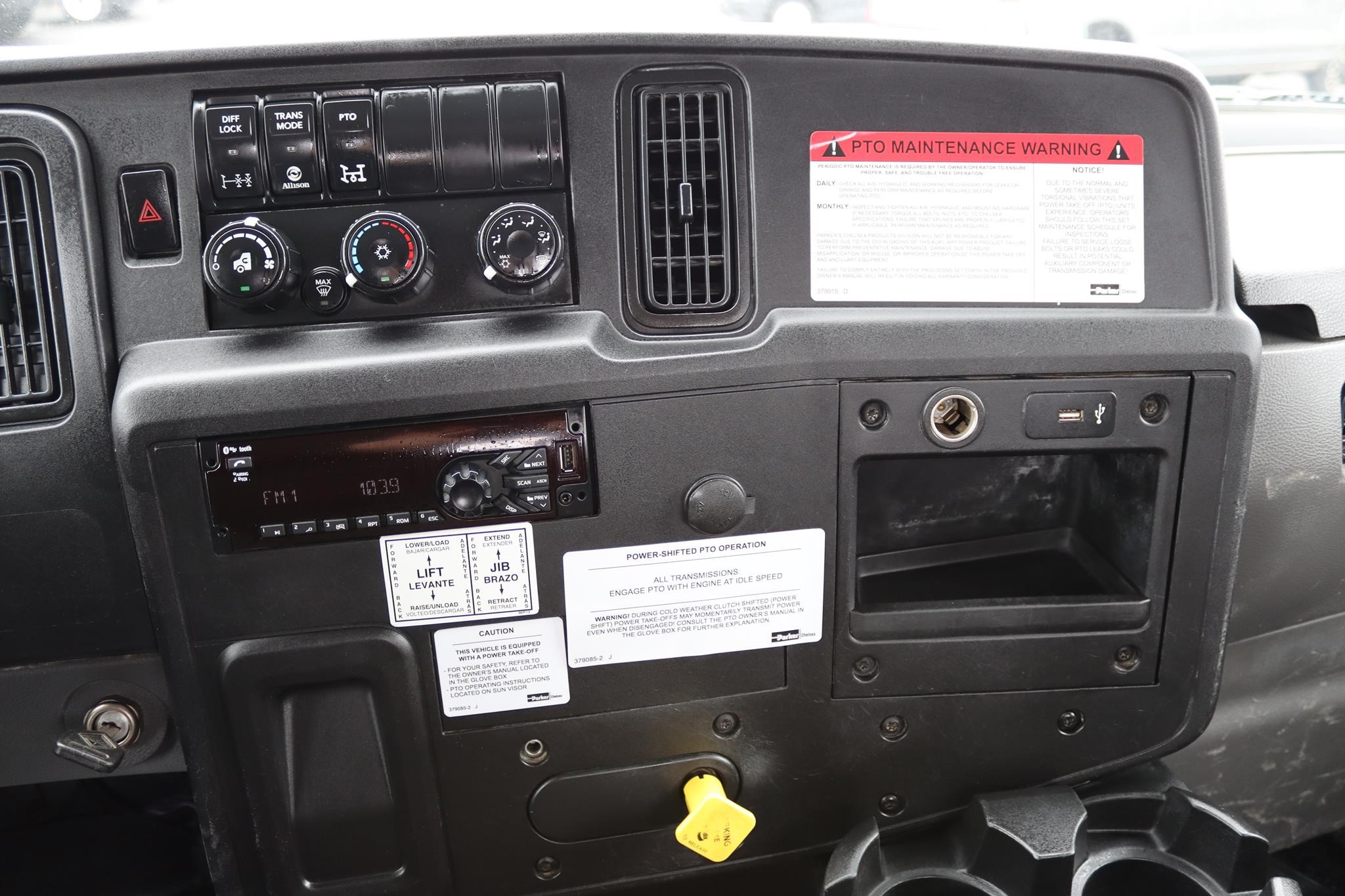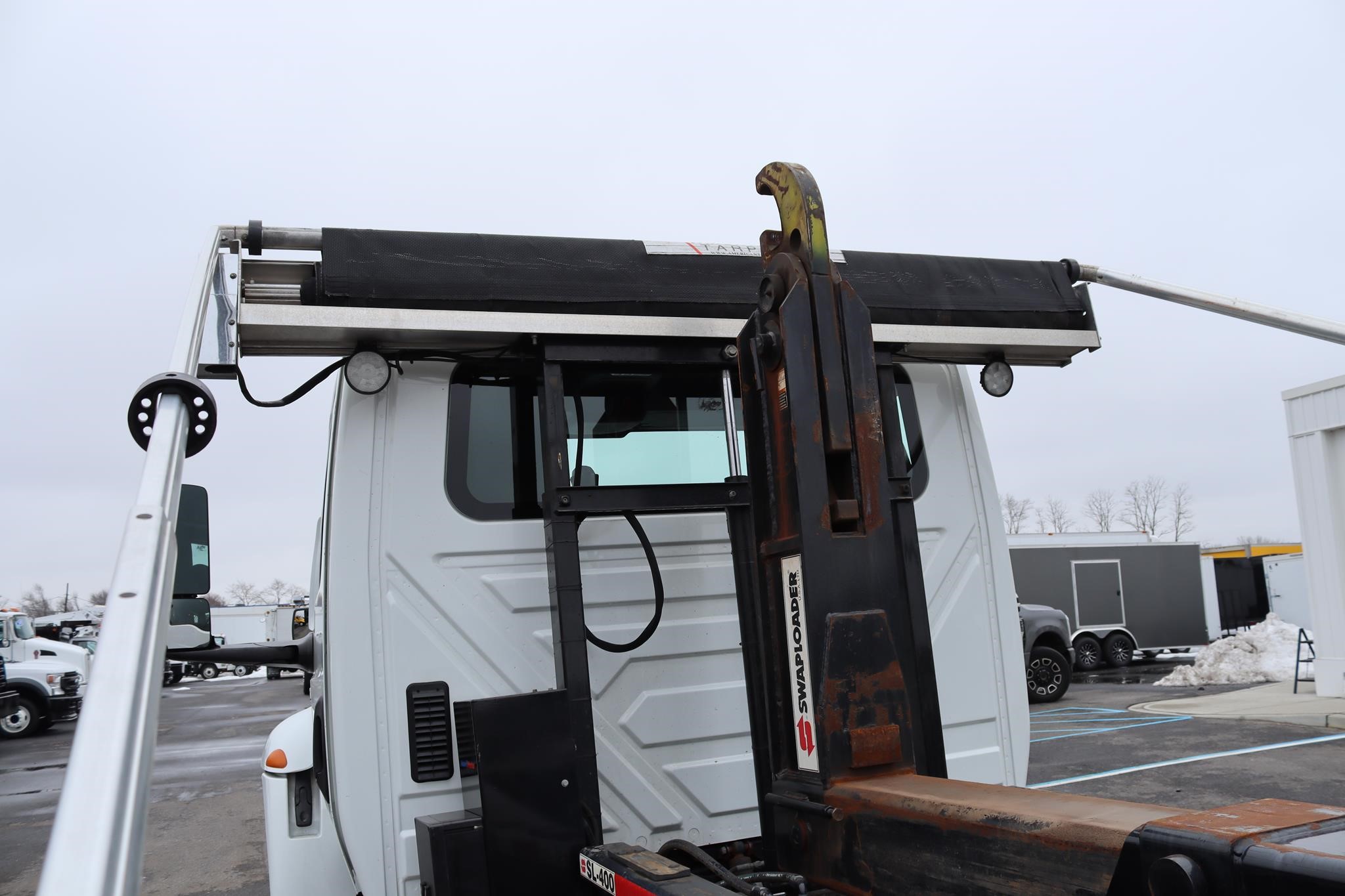 You’re viewing a 2019 International MV CDL SwapLoader SL-400 Hooklift #563727. The truck is powered by a 350 HP Cummins ISL9 diesel engine and an Allison automatic transmission with 254,725 miles and 10,630 hours on the odometer. The International is equipped with a spring suspension, 22.5″ tires, and steel rims.