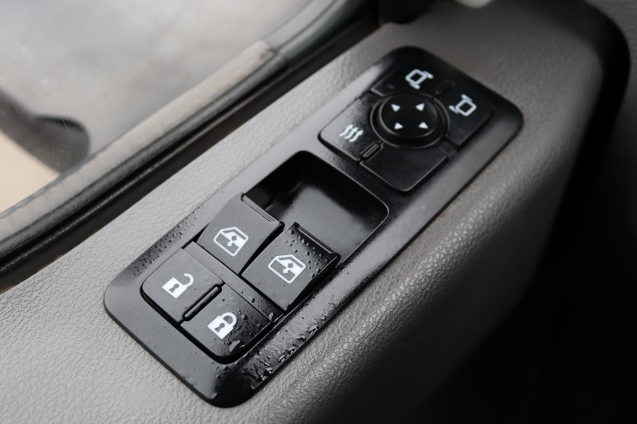 The interior features two bucket seats, cruise control, tilt, A/C, AM/FM/BT radio, air brakes, heated mirrors, tilt, power locks, power windows, and a differential lock.