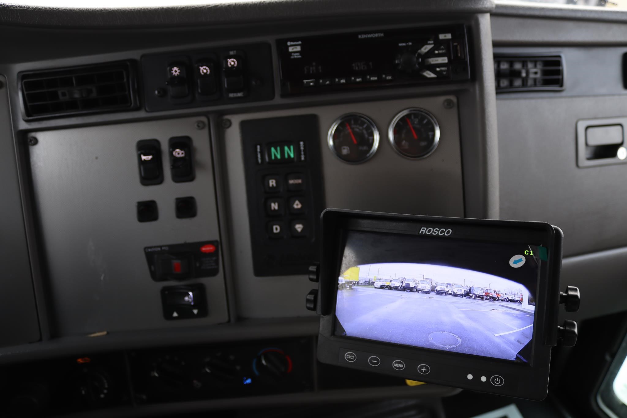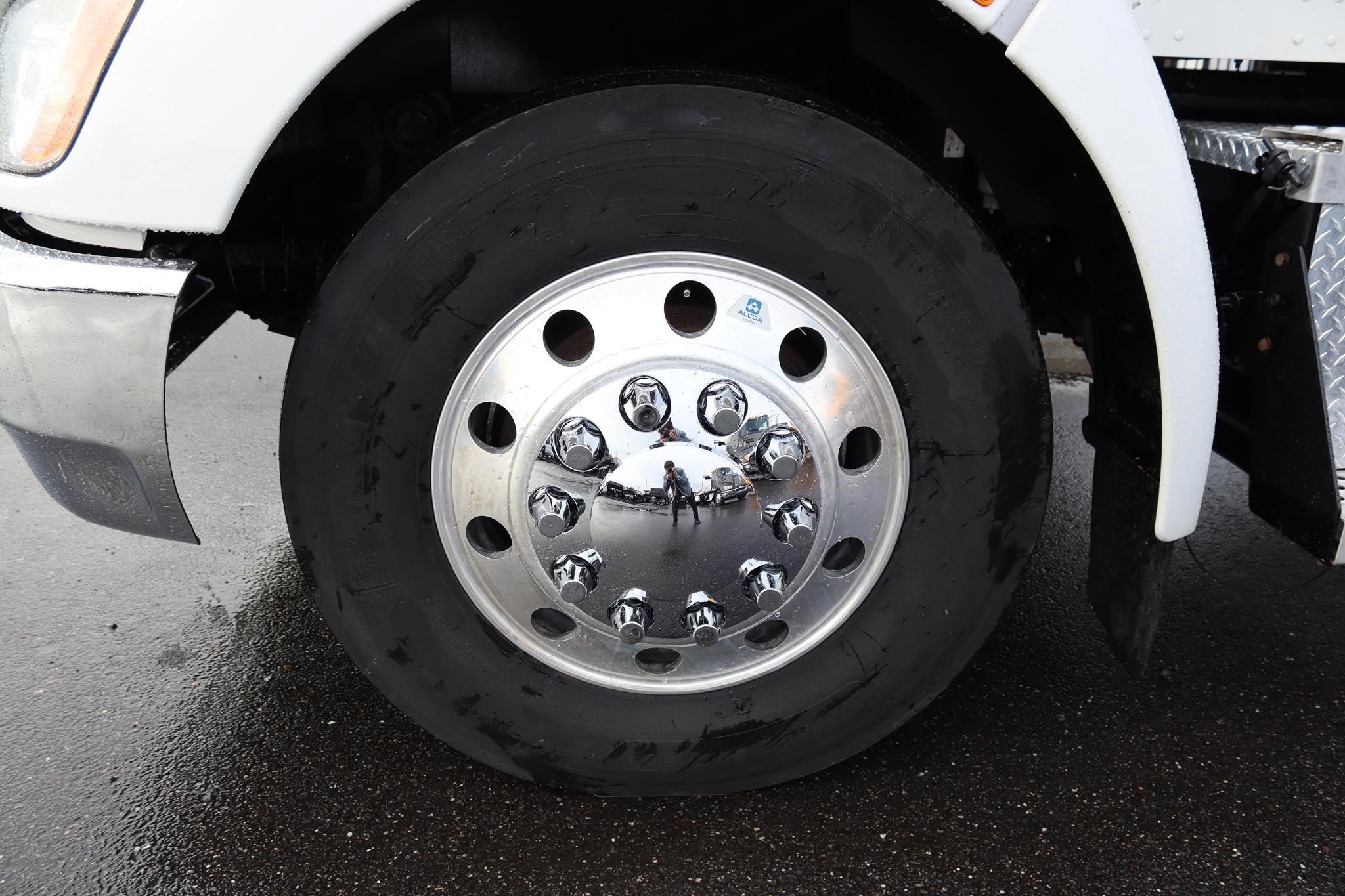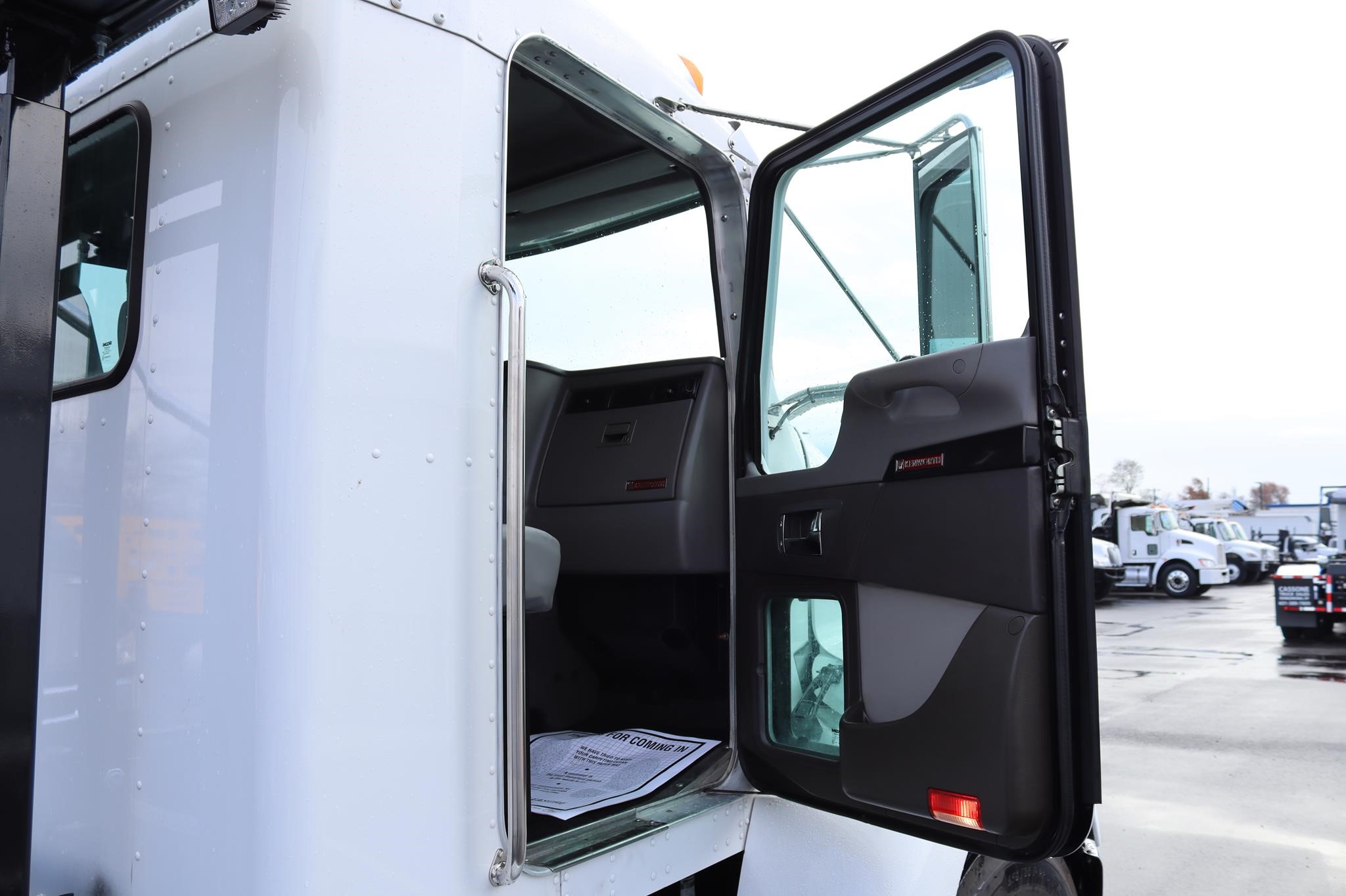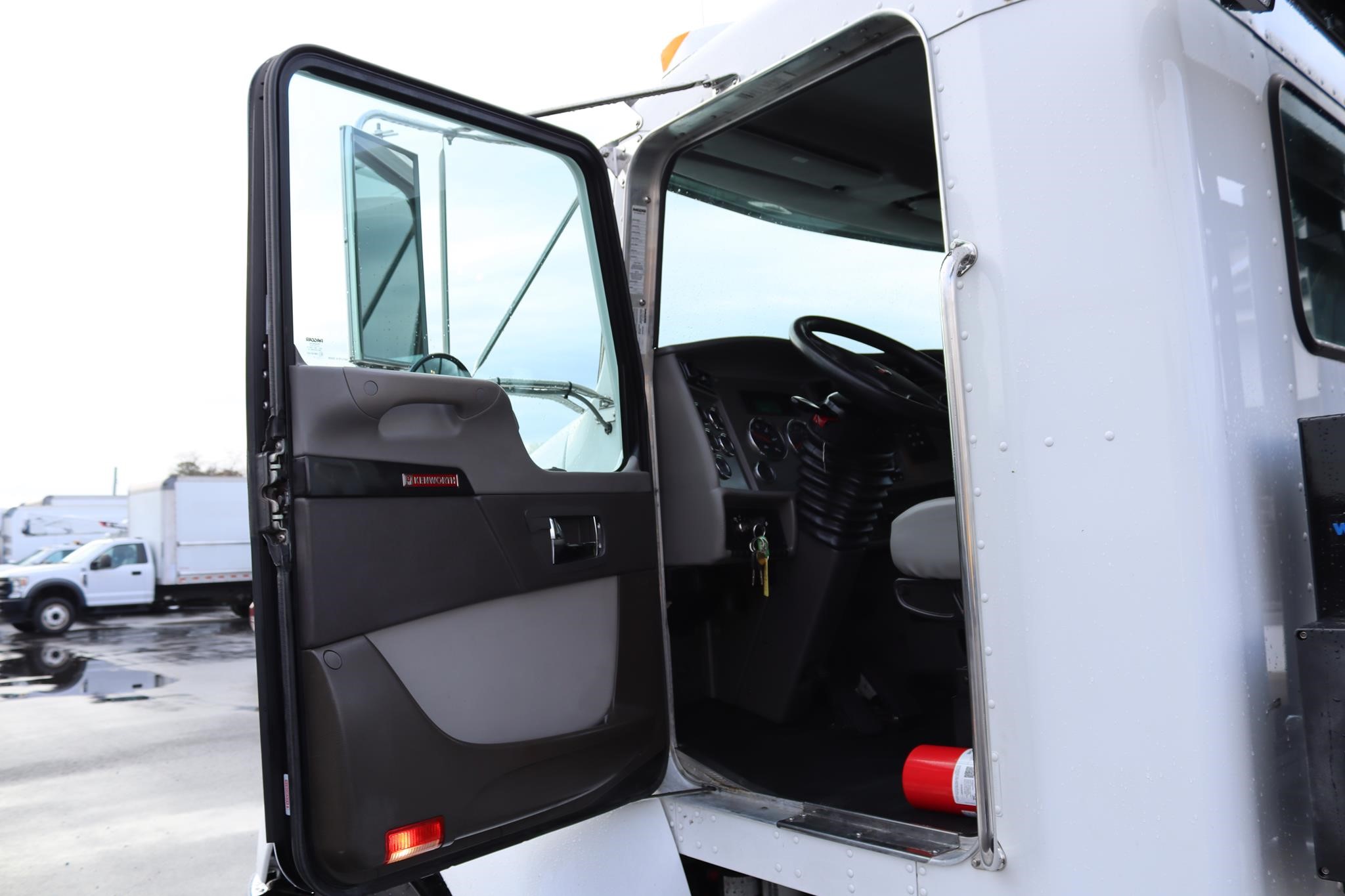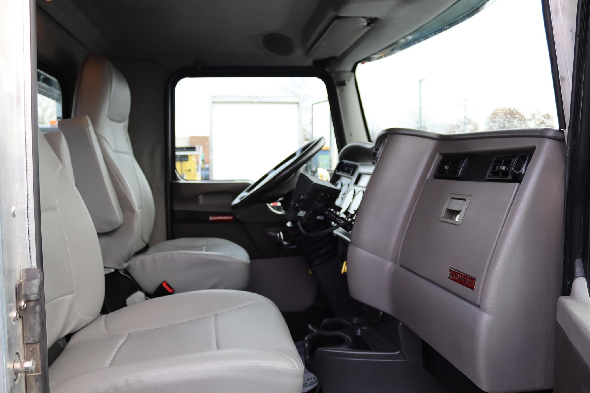 The interior features two bucket seats, cruise control, heated mirrors, power locks, power windows, backup camera, air brakes, exhaust brake, A/C, and AM/FM/BT radio.