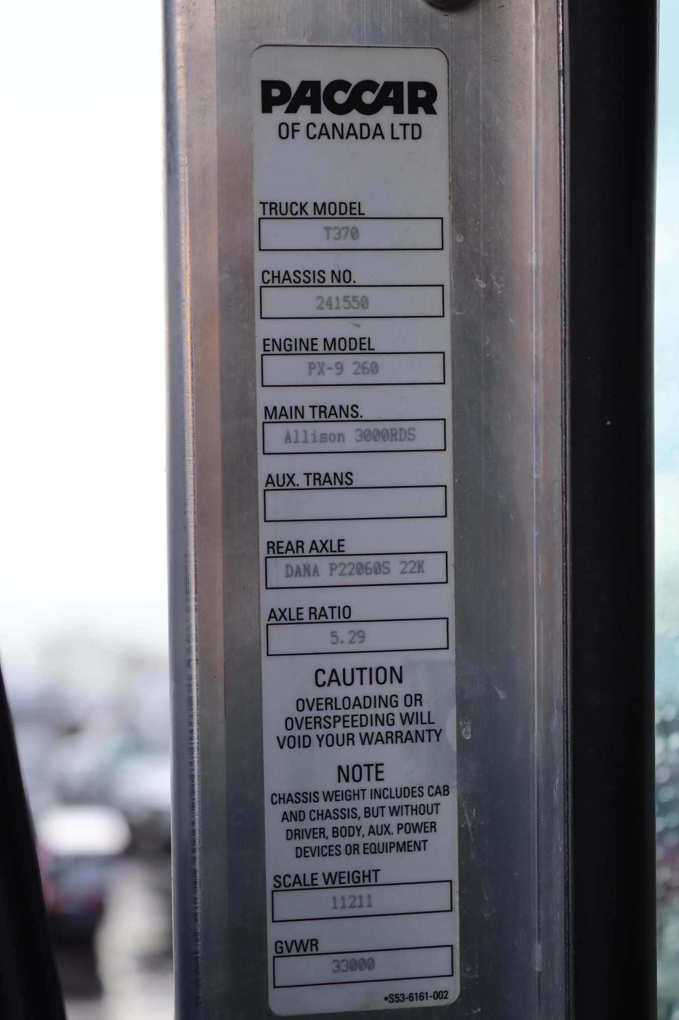 You’re viewing a 2019 Kenworth T370 CDL SwapLoader SL-222 Hooklift #241550. The truck is powered by a 260HP Paccar PX-9 diesel engine and an Allison 3000 RDS automatic transmission with 168,226 miles on the odometer. The Kenworth is equipped with an air ride suspension, 22.5″ tires, and aluminum rims.