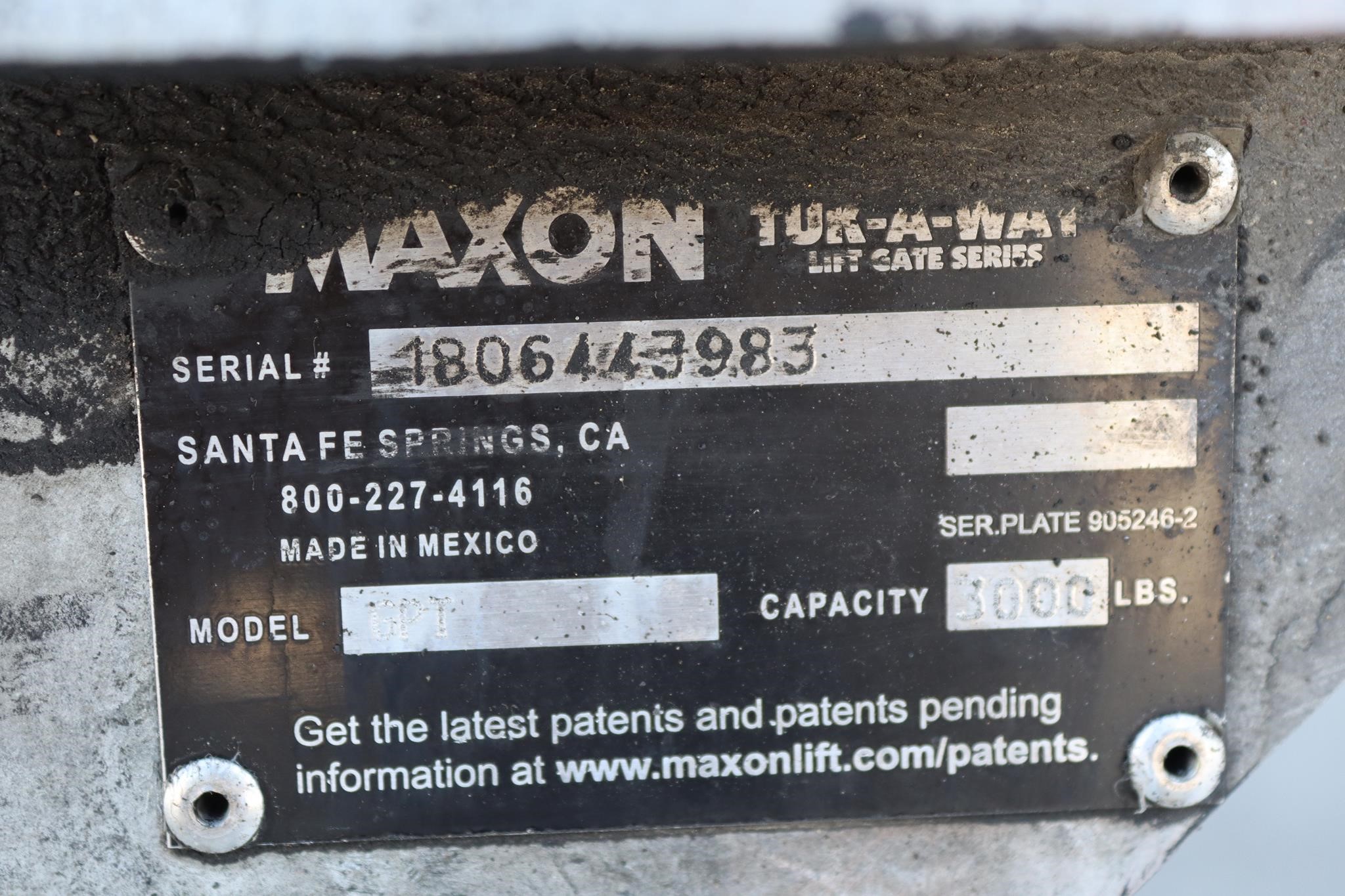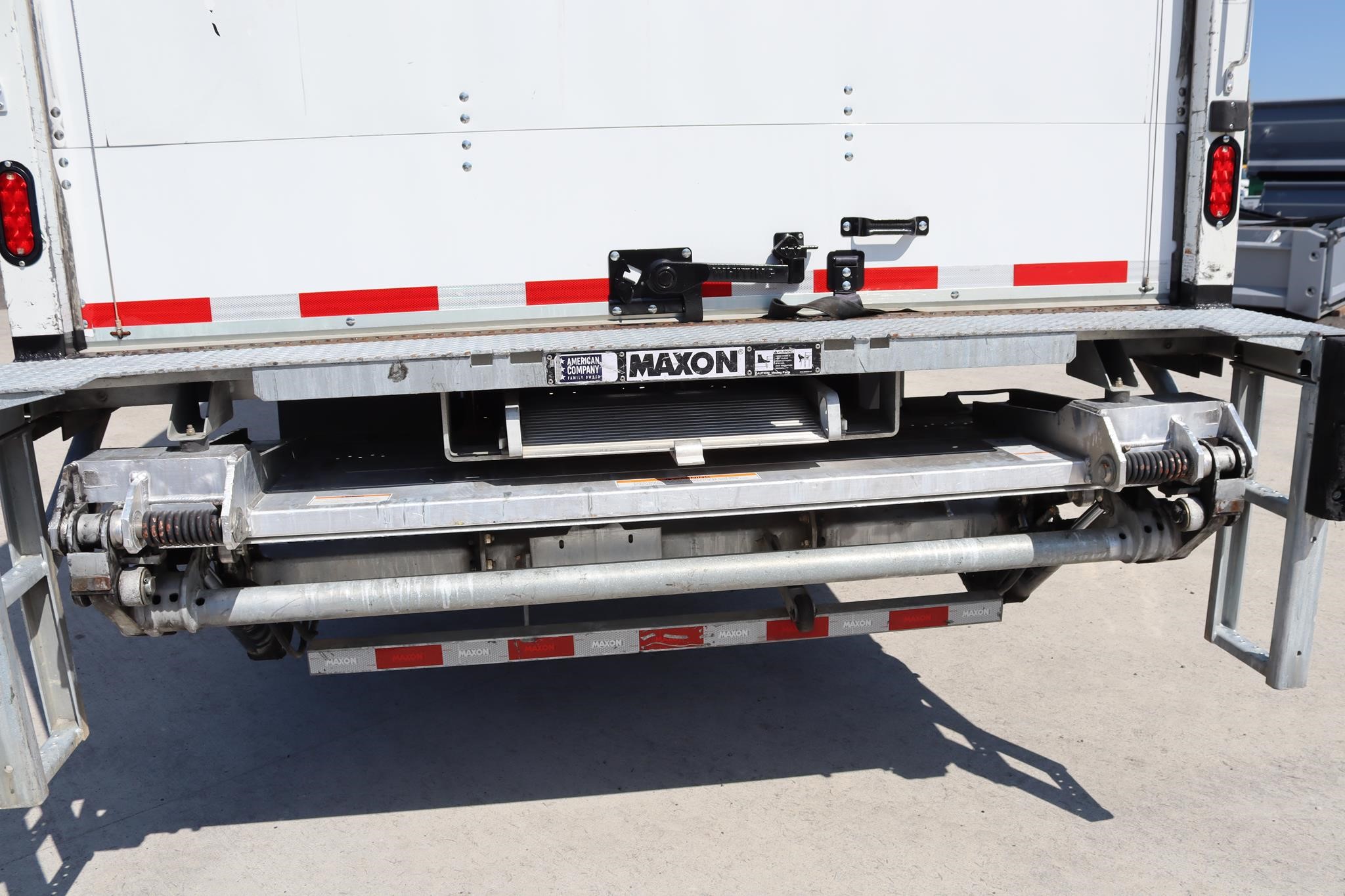 The 2019 Morgan body (Serial # – MTX52929-004 / Model # – GVSD10326102) that has a solid wooden deck, ramp, two rows of e-track, and is equipped with a 2019 Maxon GPT Liftgate (Serial # – 1806443983) that measures 80″ x 60″ and has a 3,000LB capacity.