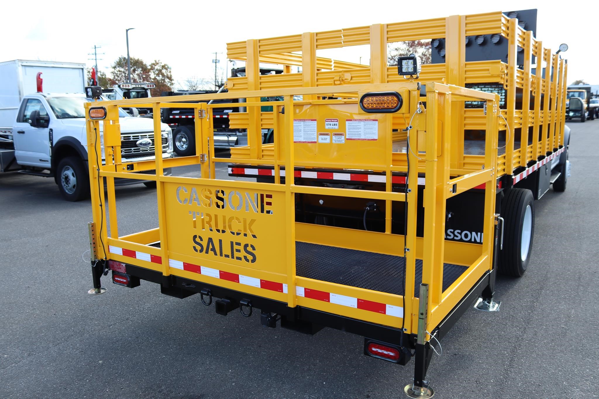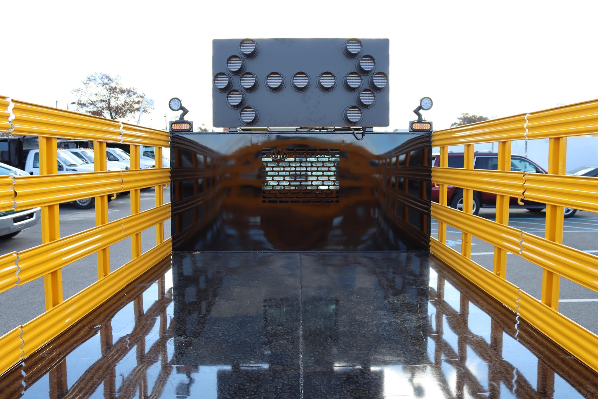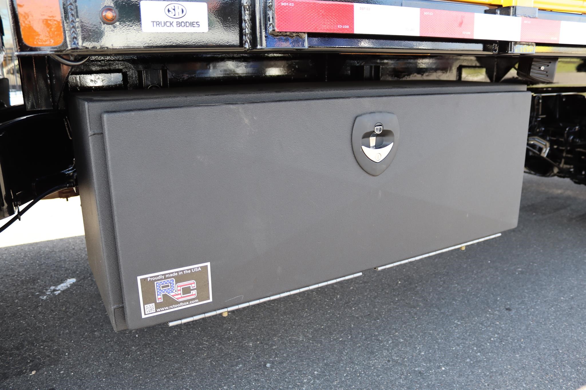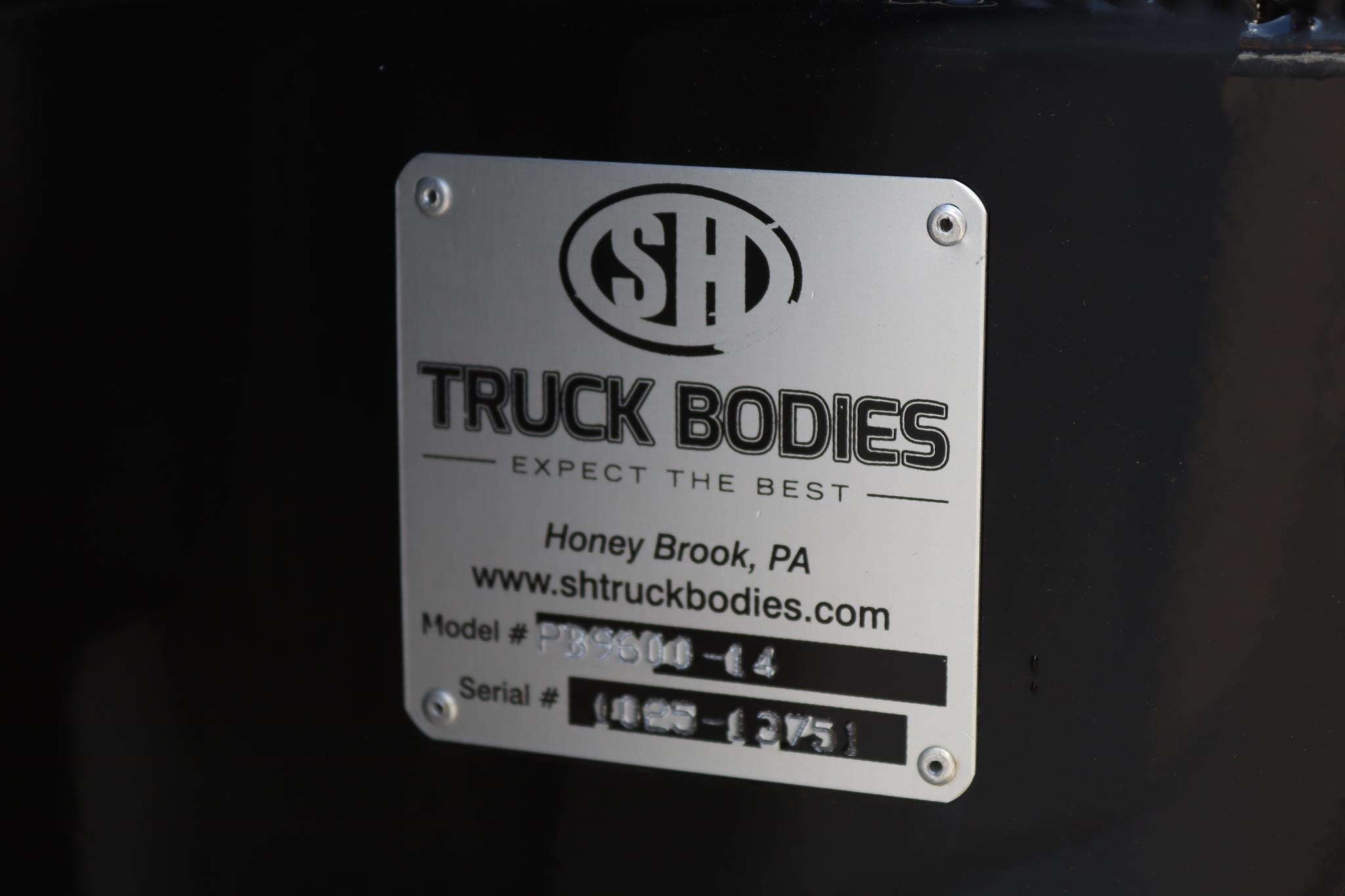 This commercial truck comes equipped with an SH 14′ Flatbed body (Serial # 1025-13751 / Model # – PB9600-14) that has a steel deck with racks that measures 92″ wide and 42″ high. The body is equipped with a brand-new Haugen Attachment MWP Lift (Serial # M0031303) that measures 4′ x 8′ with a 1,000 LB capacity, a Solar Tech Arrow Board, two RC toolboxes that measure 48X18X18″, a receiver hitch, and a 7-way flat plug in the rear.