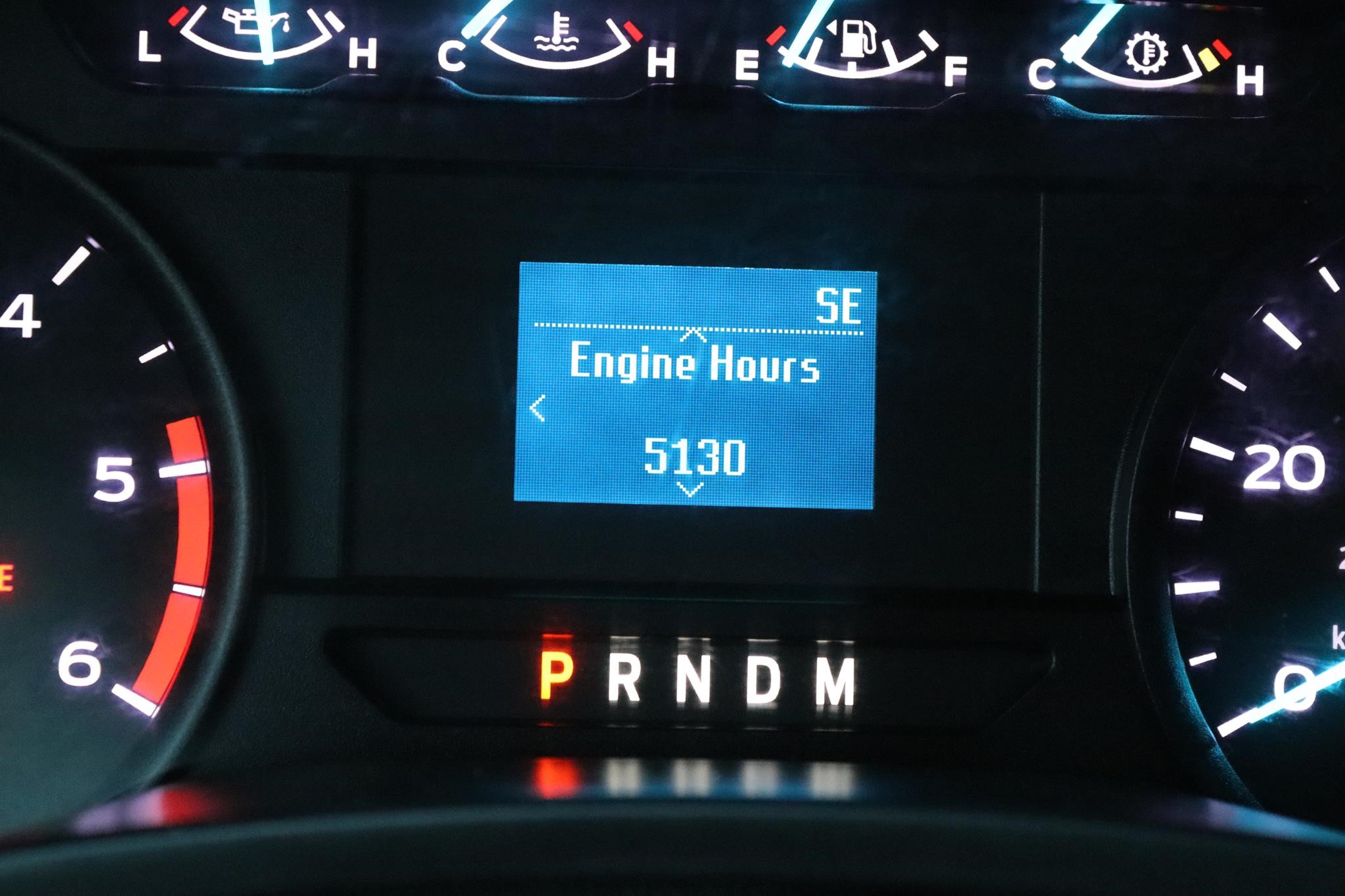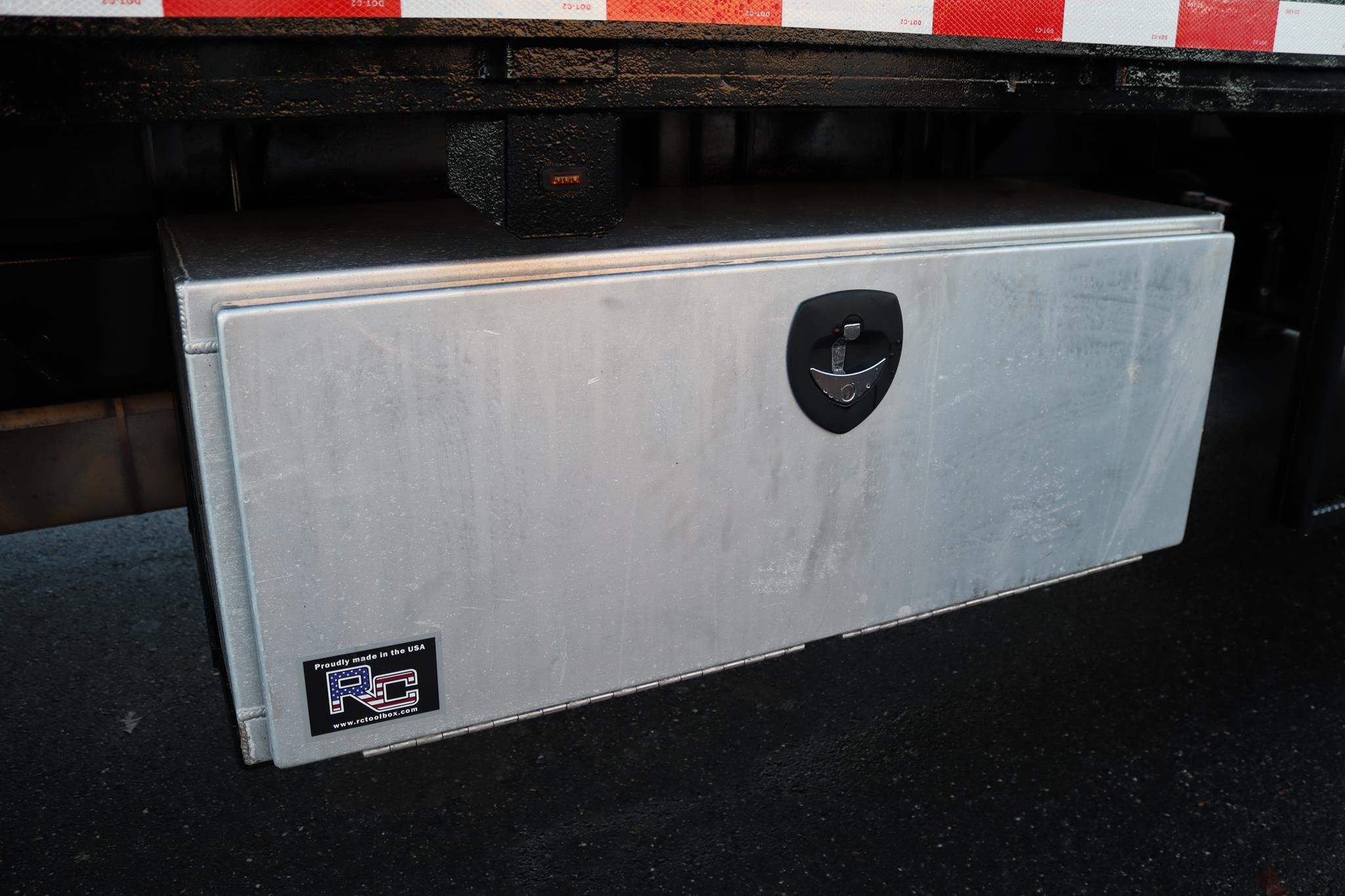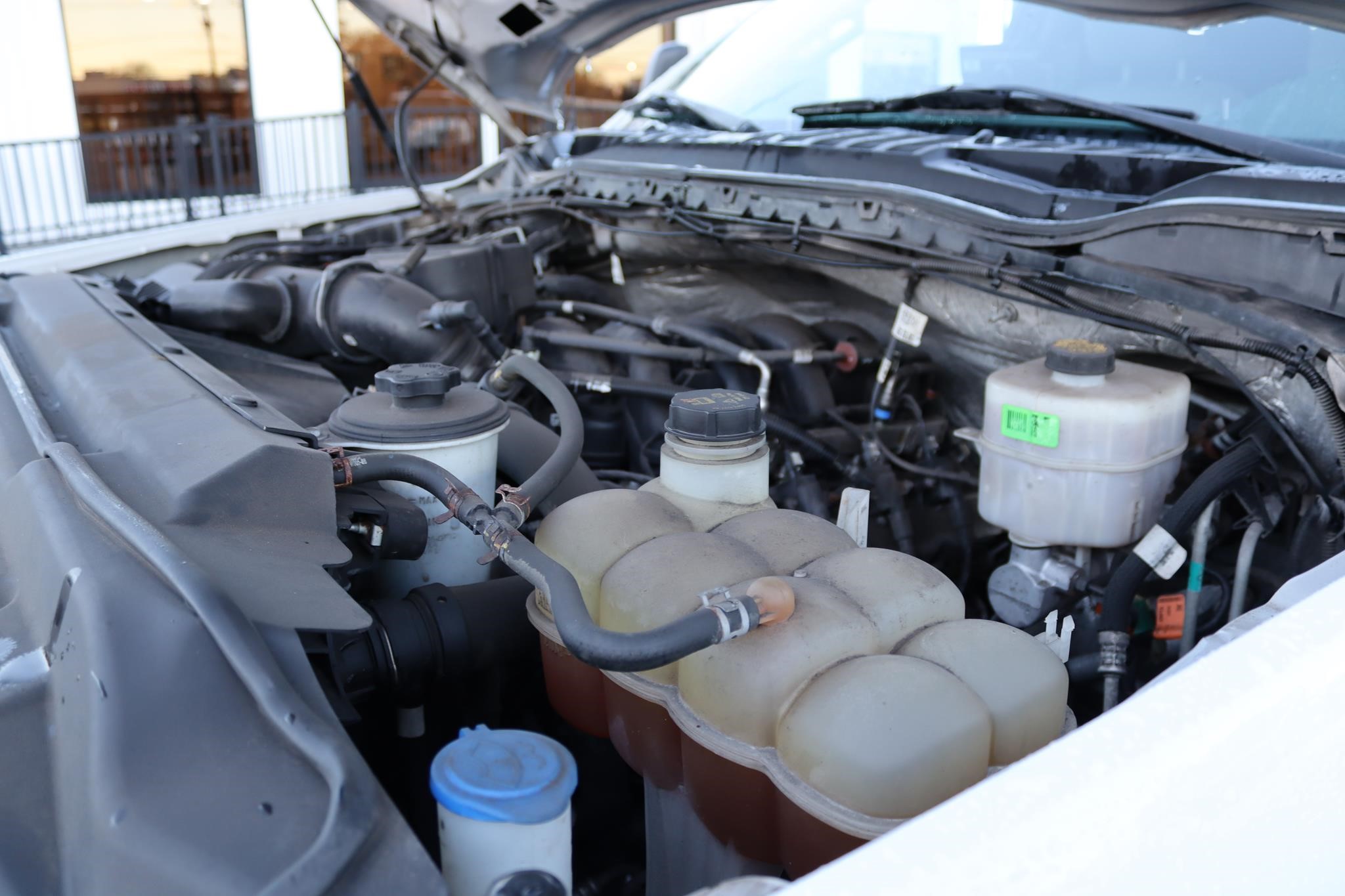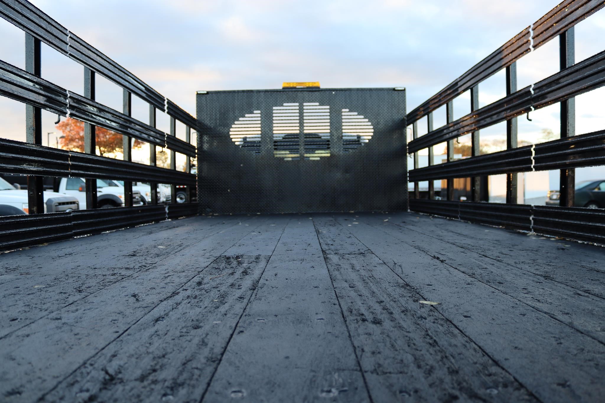 This commercial truck comes equipped with a Supreme 18′ wood deck flatbed with racks (Serial # – L0502311-SX18096) that measures 92″ wide, 42″ high, and comes equipped with an RC Toolbox that measures 48X18X18″, 7-way flats plug in the rear, and an 8-ton ball tow hitch.