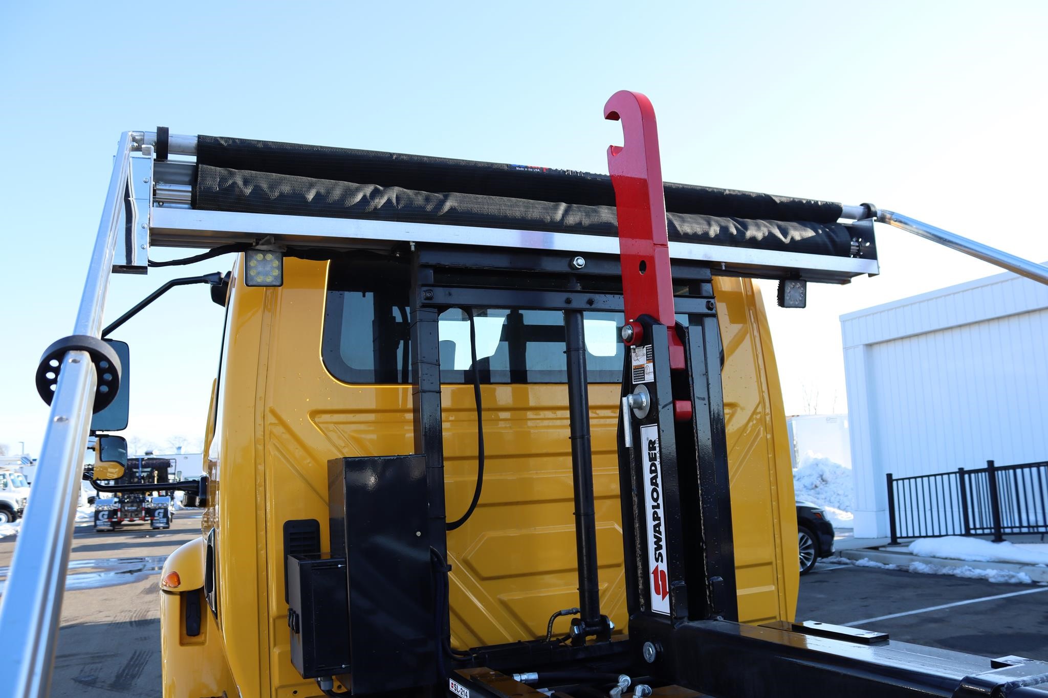 This commercial truck comes equipped with a Brand-New SwapLoader SL-214 Hooklift (S# – VJ1049), which has a 20,000LB capacity and an adjustable 36” and 54″ hook that can take 12′ to 18′ foot containers (Works in Gear) and comes equipped with a Brand-New Single Stage U.S Tarp System (S# – 081425-1710).