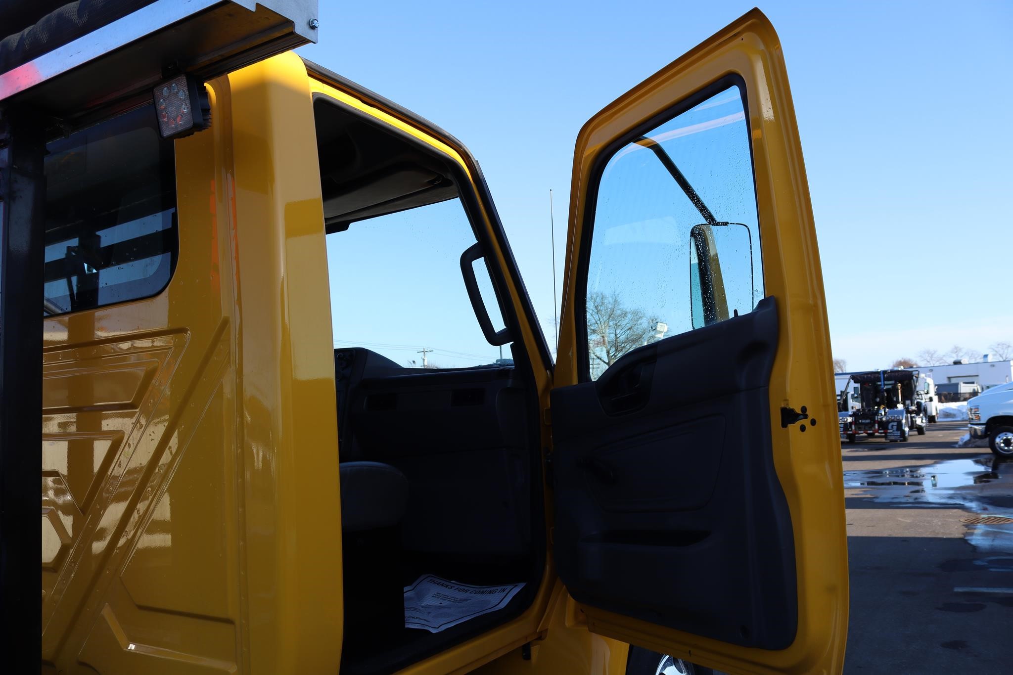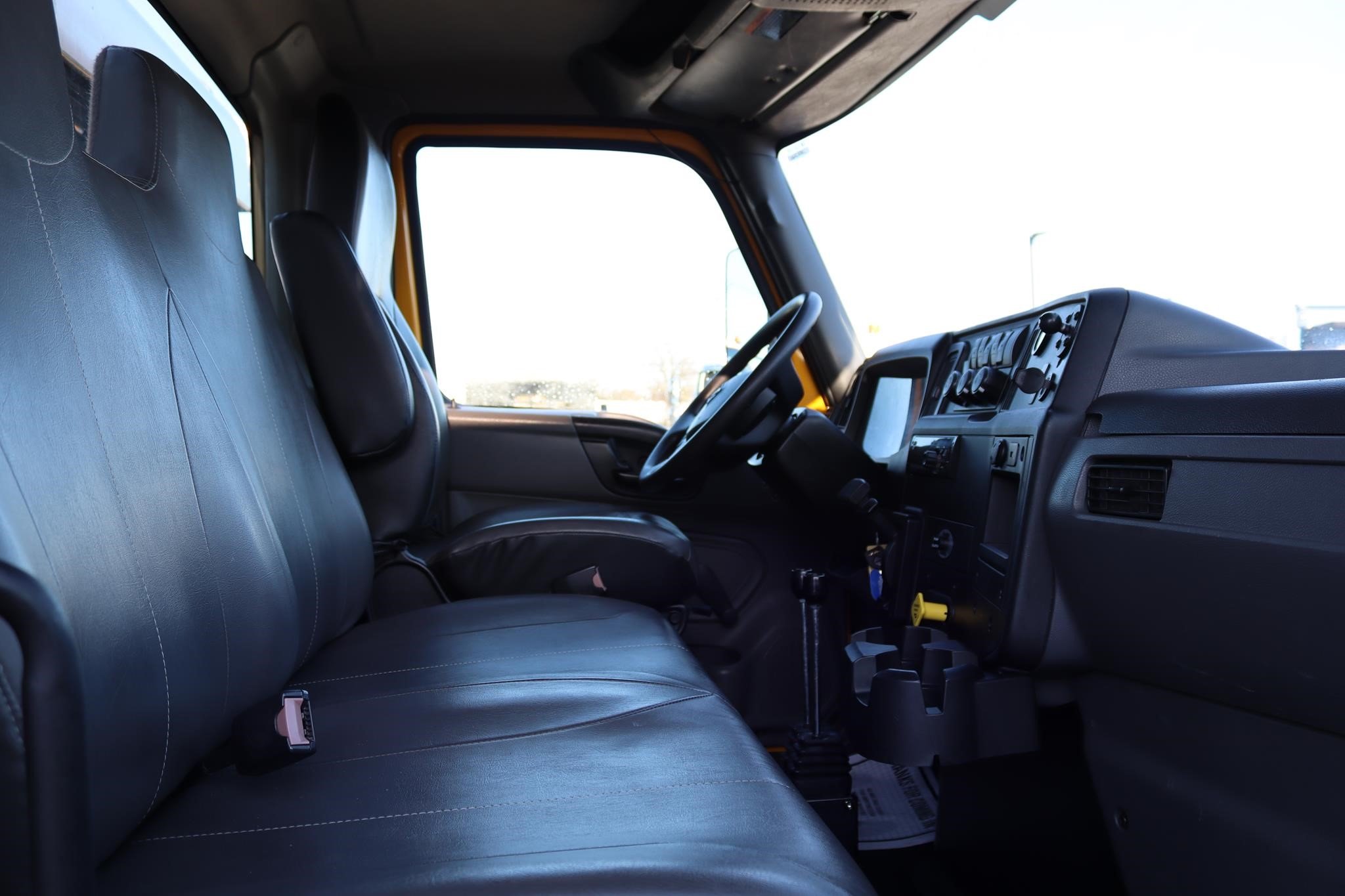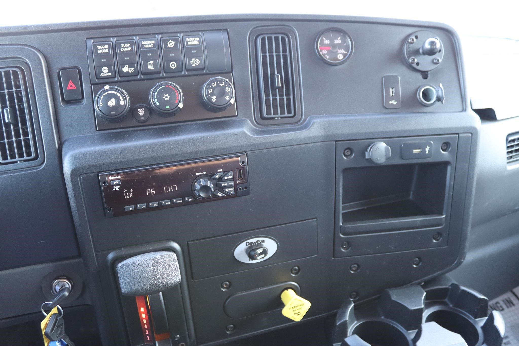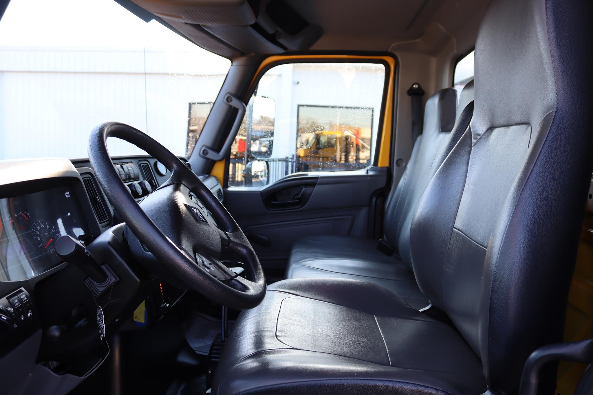 The interior features an air ride driver seat, split bench seats, cruise control, A/C, AM/FM/BT radio, tilt, heated mirrors, and air brakes.