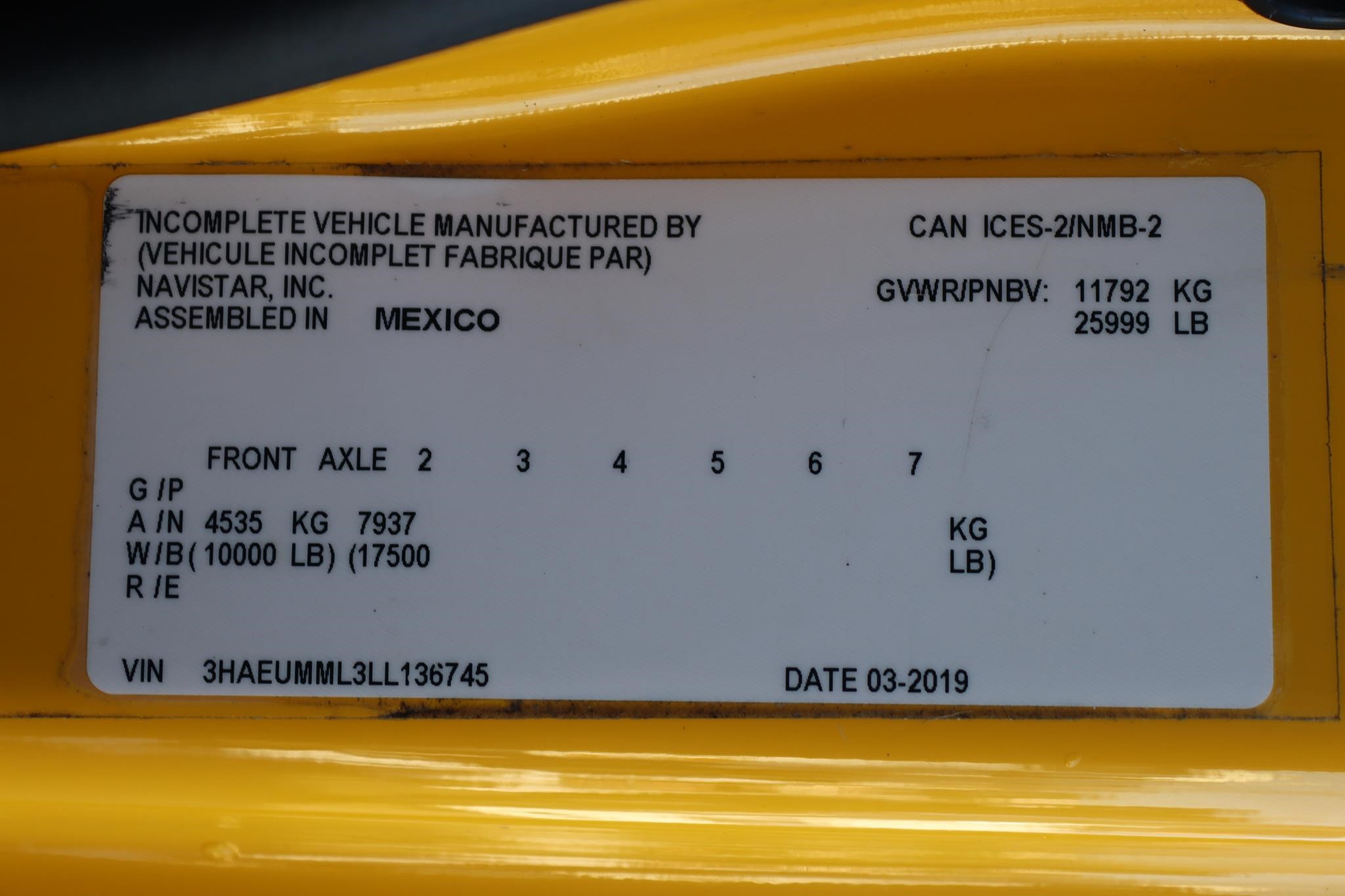 VIN # – 3HAEUMML3LL136745