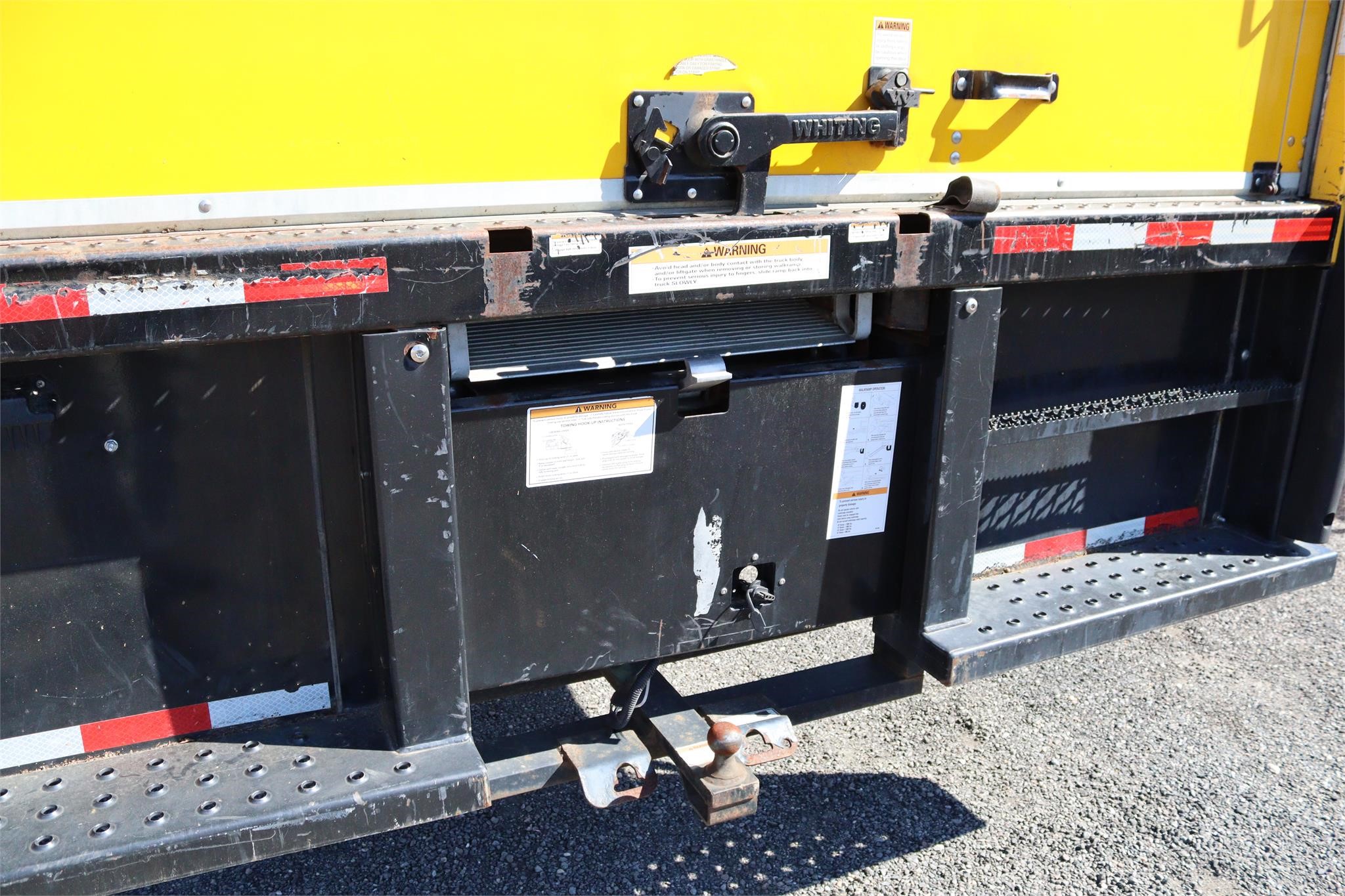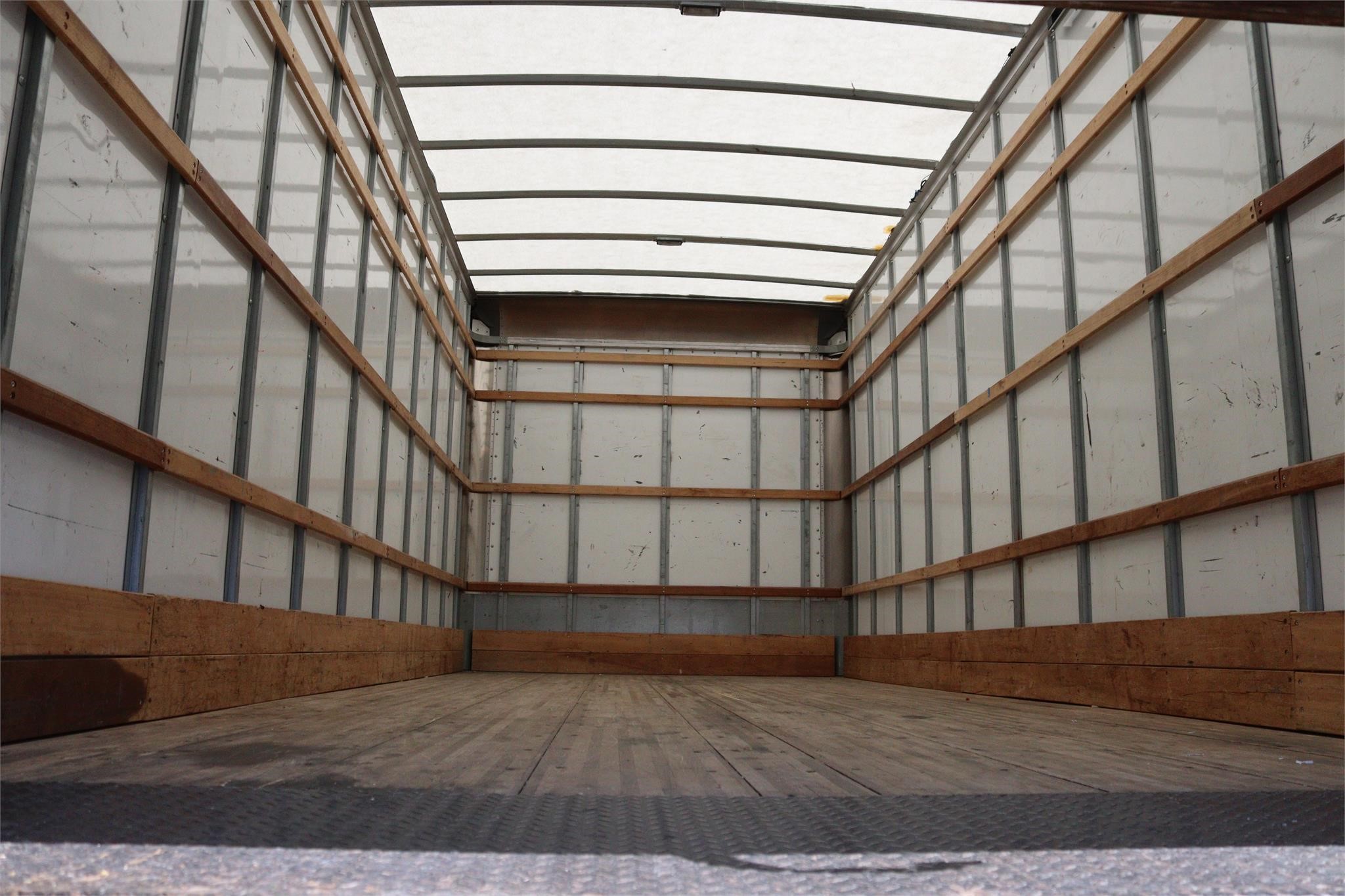 This commercial truck comes equipped with a Morgan body (Serial # – PM50694-011-010 / Model # – GVMD09722P19YL) has a solid wooden deck, translucent roof and ramp.