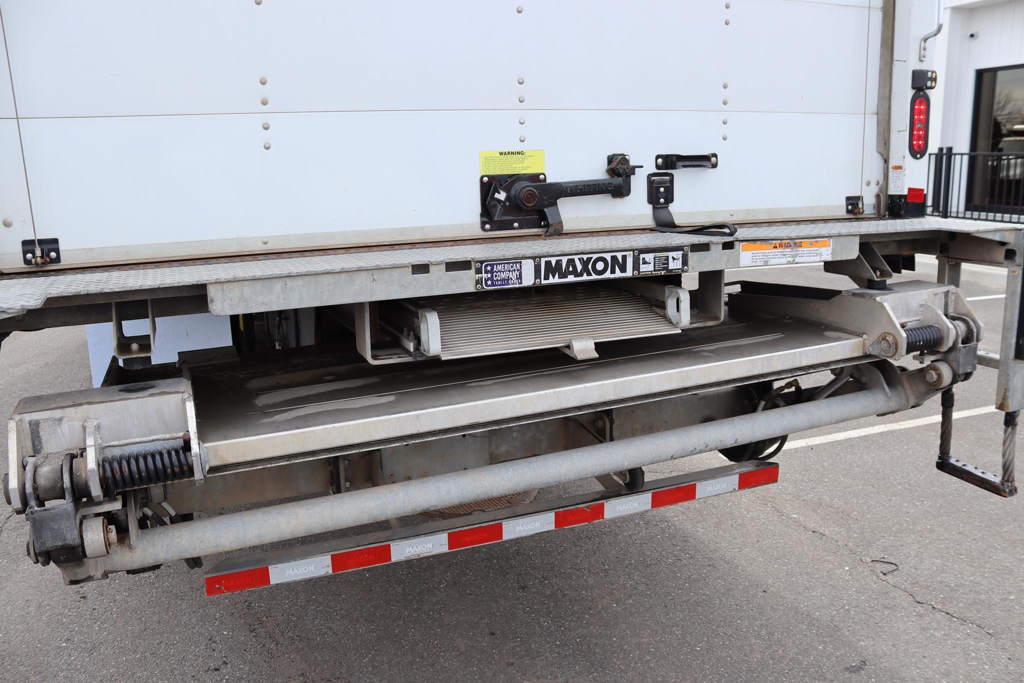 This commercial truck comes equipped with a Morgan body (Serial # – MTX59794-001 / Model # – GVSD10326102) that has a translucent roof, solid wooden deck, ramp, three rows of e-track and is equipped with a 2022 Maxon GPT Liftgate (Serial # – 103585579) that measures 80″ x 60″ and has a 3,000LB capacity.