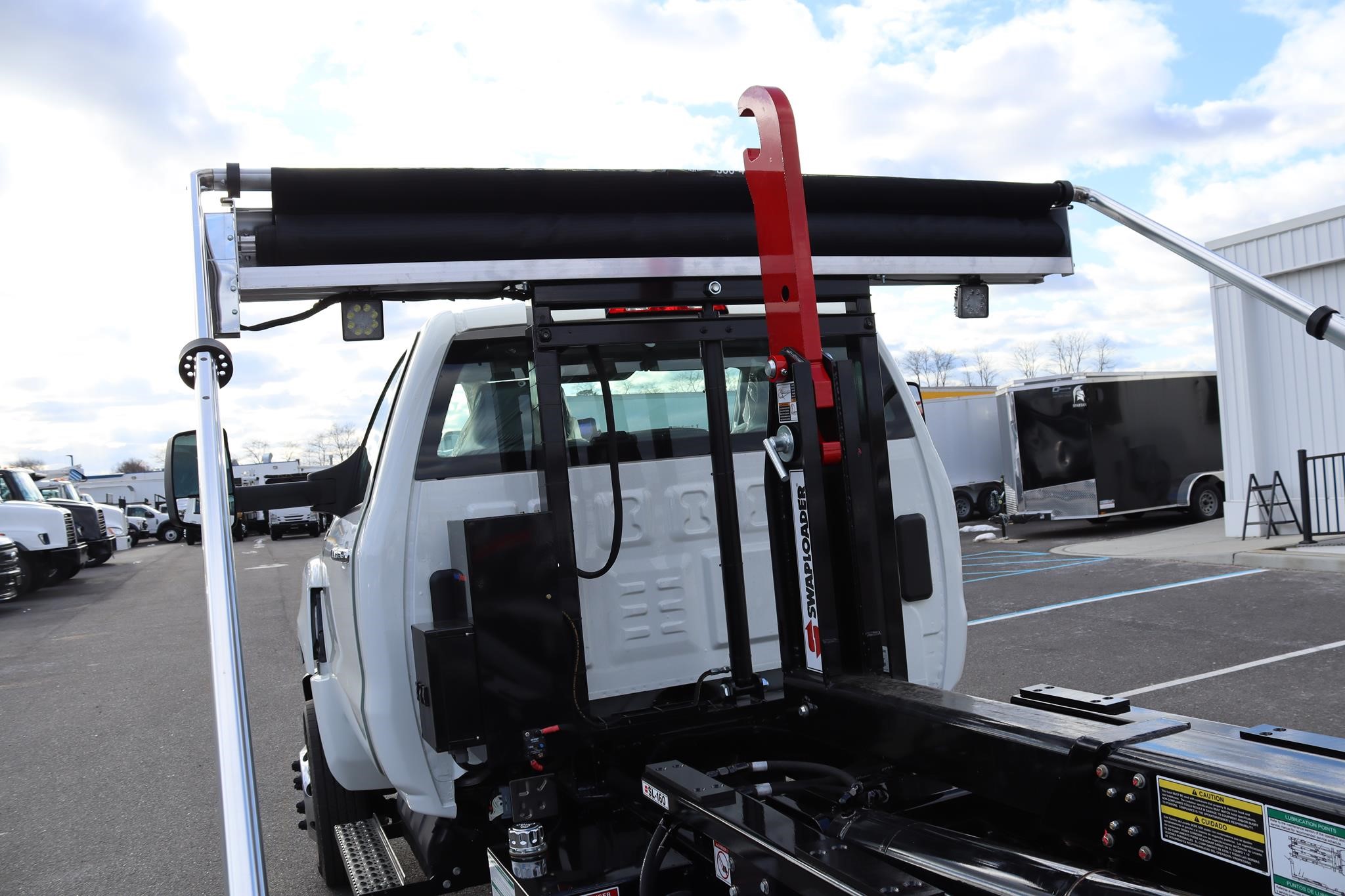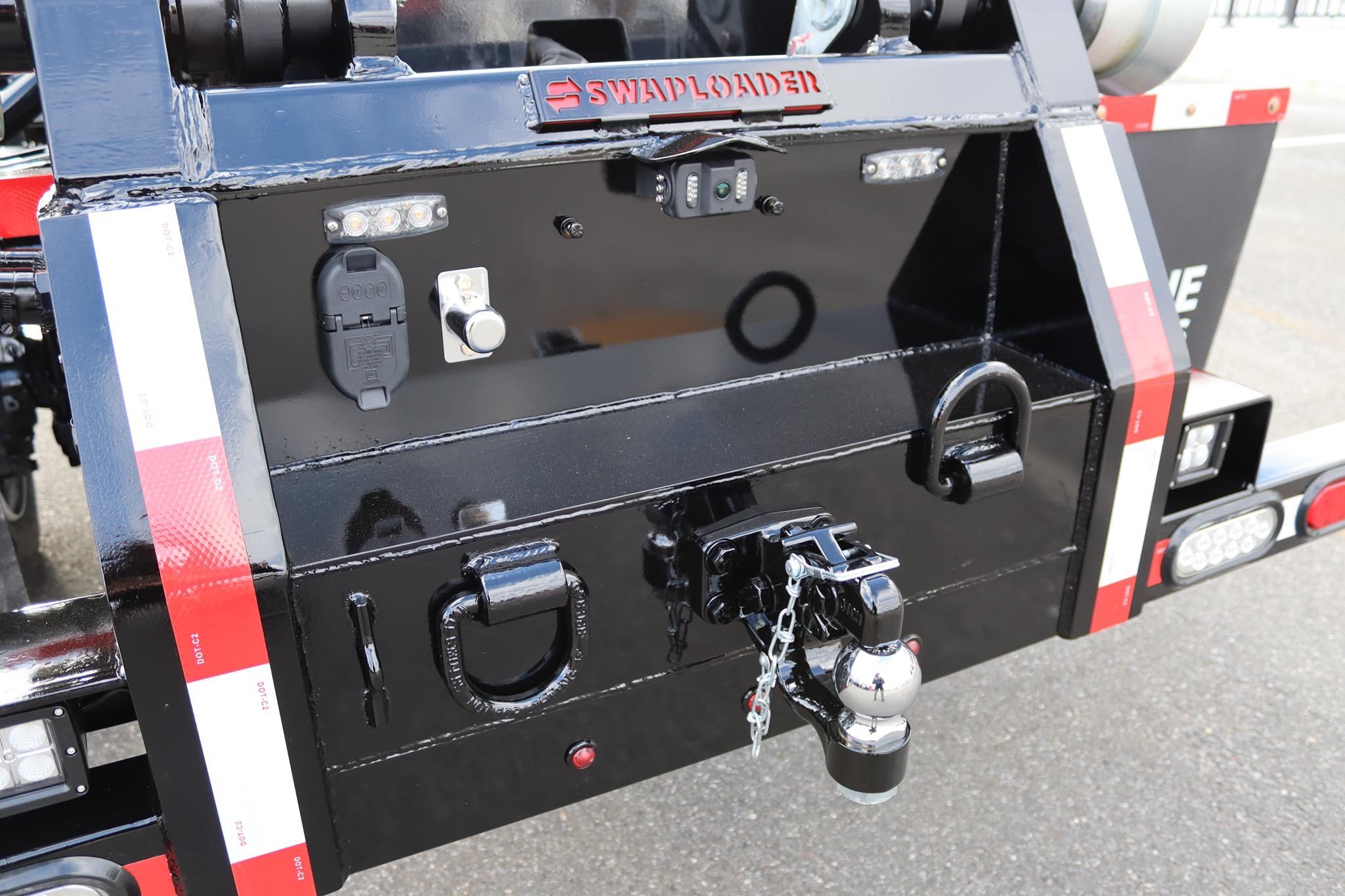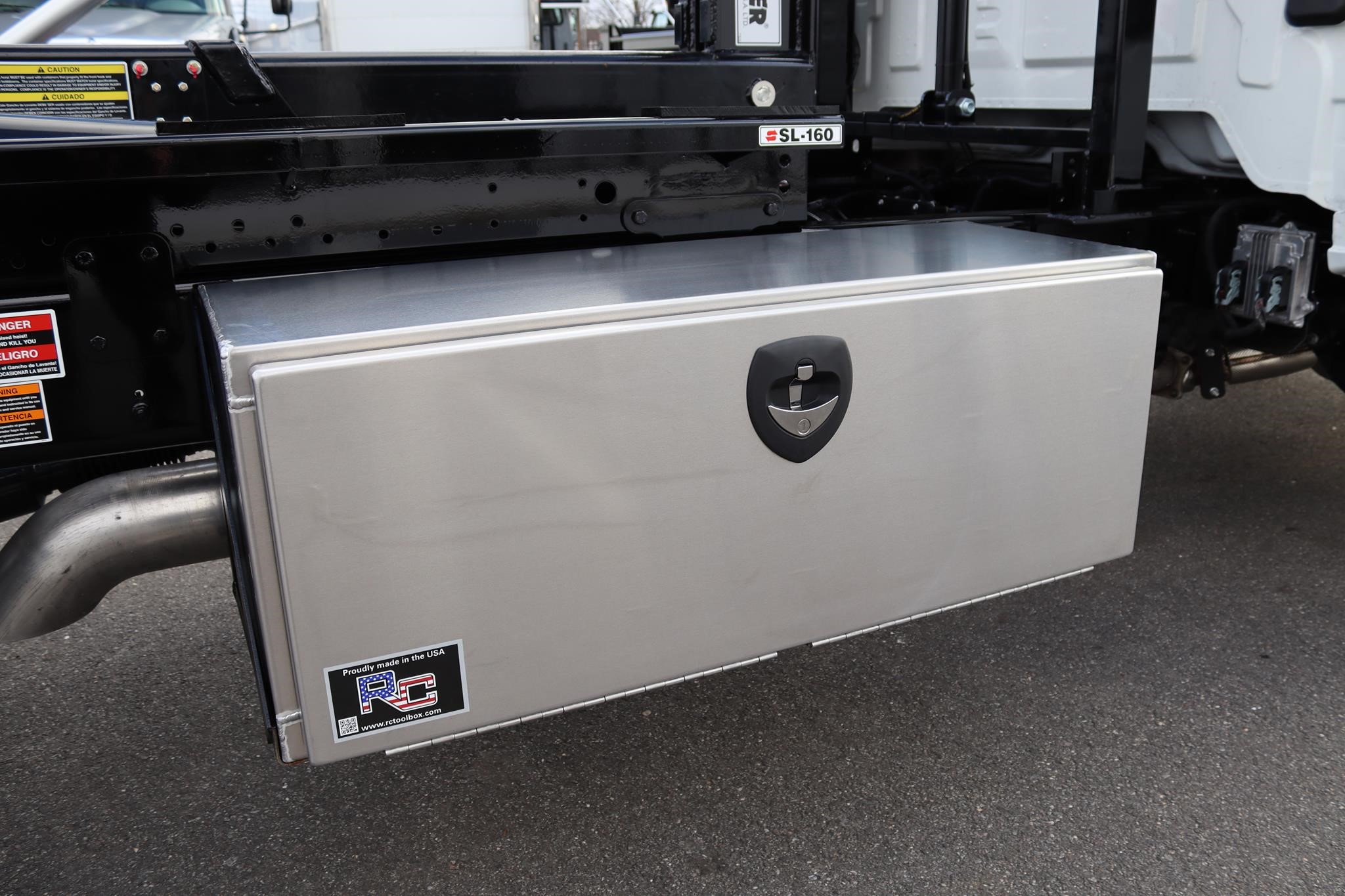 This commercial truck comes equipped with a Brand-New SwapLoader SL-160 Hooklift (Serial # – VK0346), which has a 16,000LB capacity and an adjustable 36” and 54″ hook that can take 10′ to 15′ foot containers and is also equipped with a Shurco Single Stage Tarp System with remote (Serial # – 112125-1895), an RC toolbox that measures 48X18X18″, an 8-Ton ball tow hitch, and 7-way flats plug in rear.