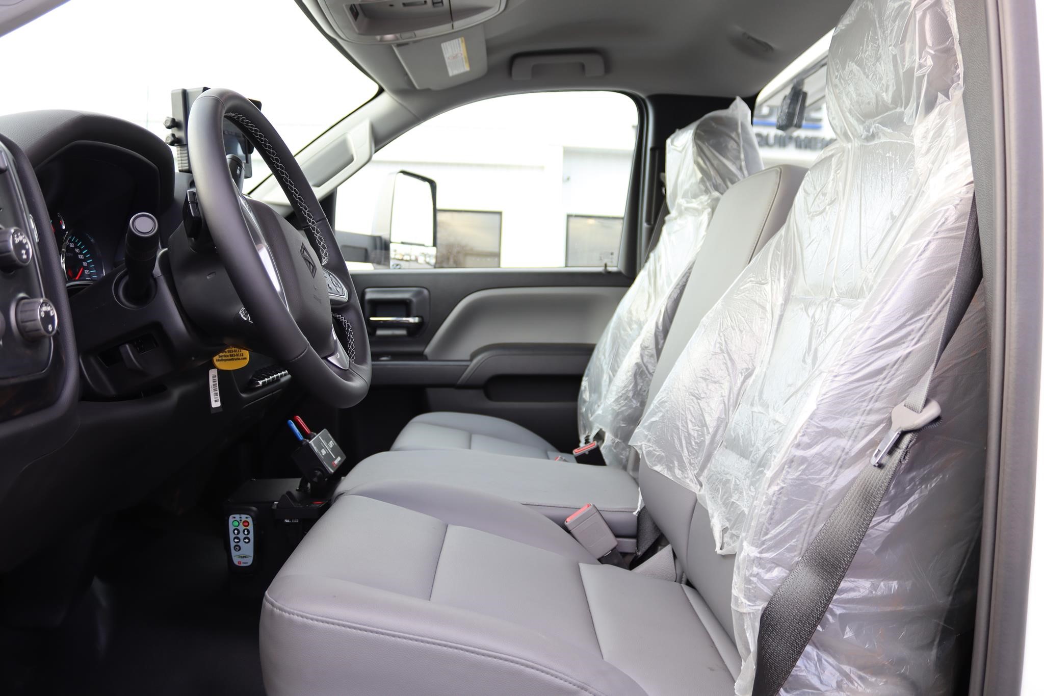 The interior features split bench seats, cruise control, A/C, AM/FM/BT radio, tilt, heated mirrors, power locks, power windows, backup camera, and strobes.