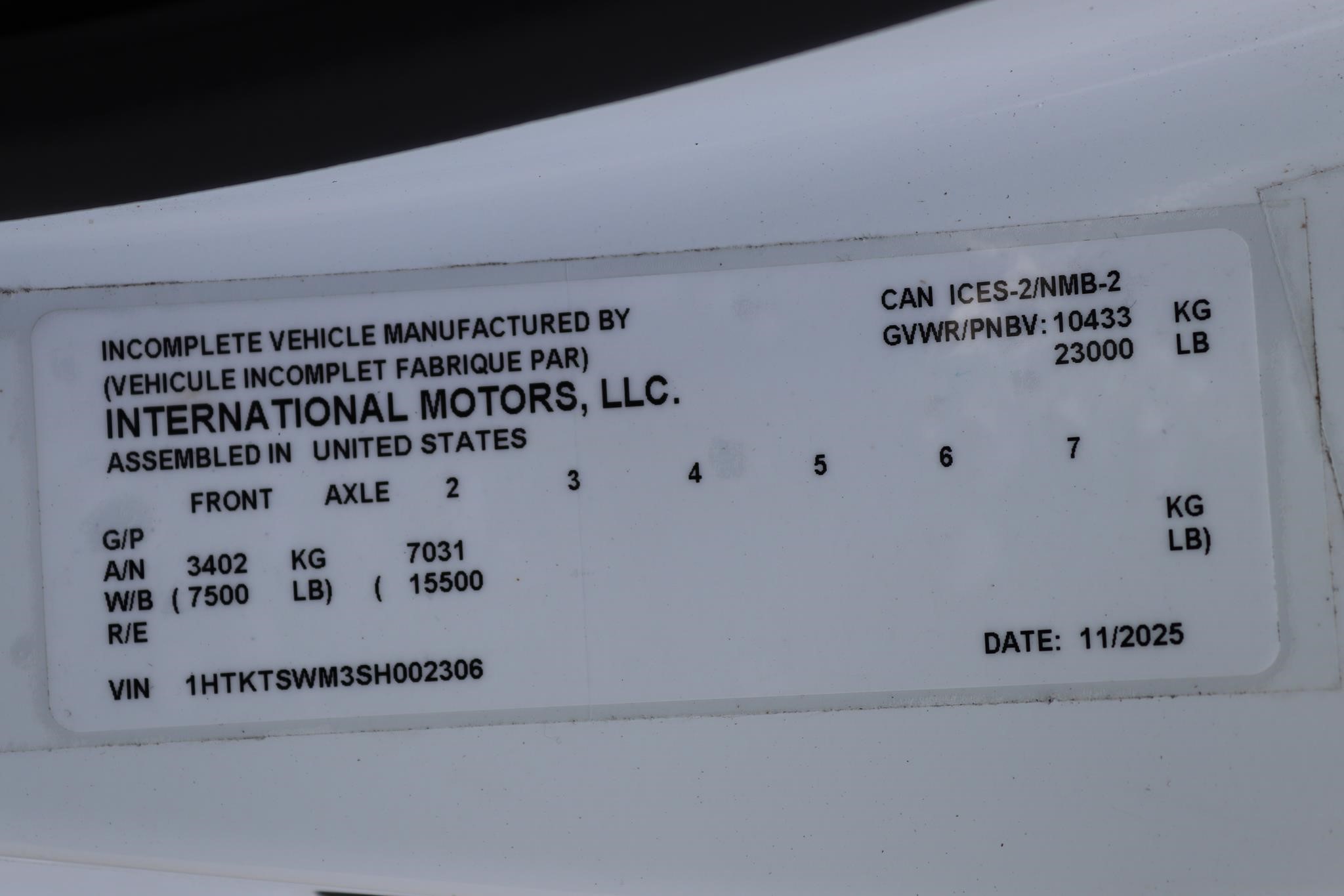 You’re viewing a 2025 International CV 4X4 Non-CDL SwapLoader SL-160 Hooklift #002306. The truck is powered by a 350HP Duramax 6.6L diesel engine and an Allison 2750 RDS automatic transmission with 707 miles on the odometer. The International is equipped with a spring suspension, 19.5″ tires, and aluminum rims.
