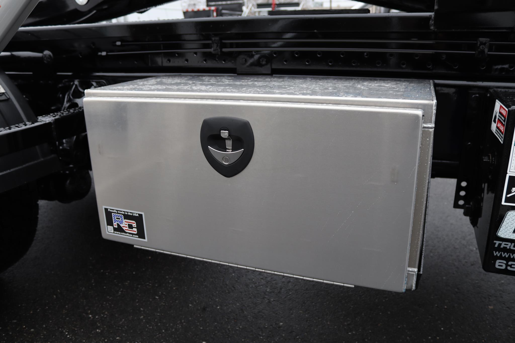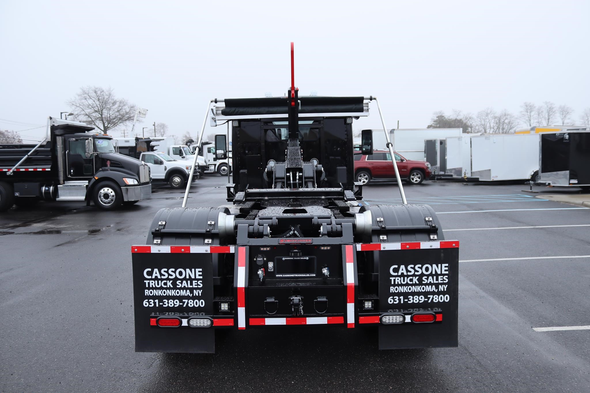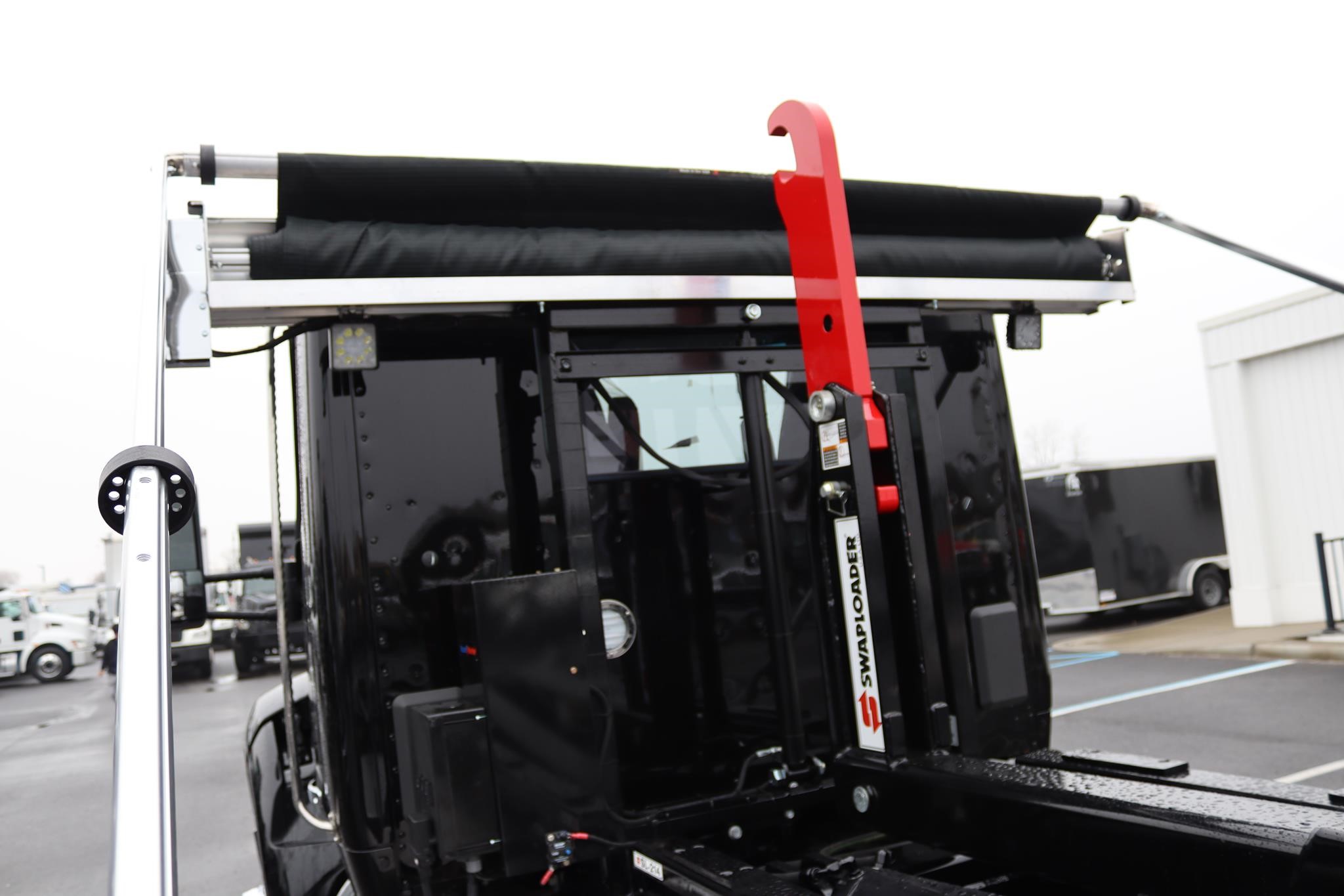 This commercial truck comes equipped with a Brand-New SwapLoader SL-214 Hooklift (Serial # – VJ1054), which has a 20,000LB capacity and an adjustable 36” and 54″ hook that can take 12′ to 18′ foot containers and is also equipped with a U.S Single Stage Tarp System with remote (Serial # – 081425-1720), two aluminum toolboxes that measure 48X18X18″ and 36X18X18″, a 7- way flats plug in, air to the rear and a 20-ton pintle hitch.