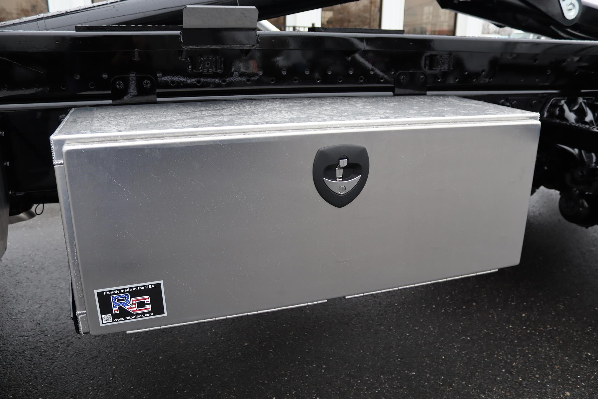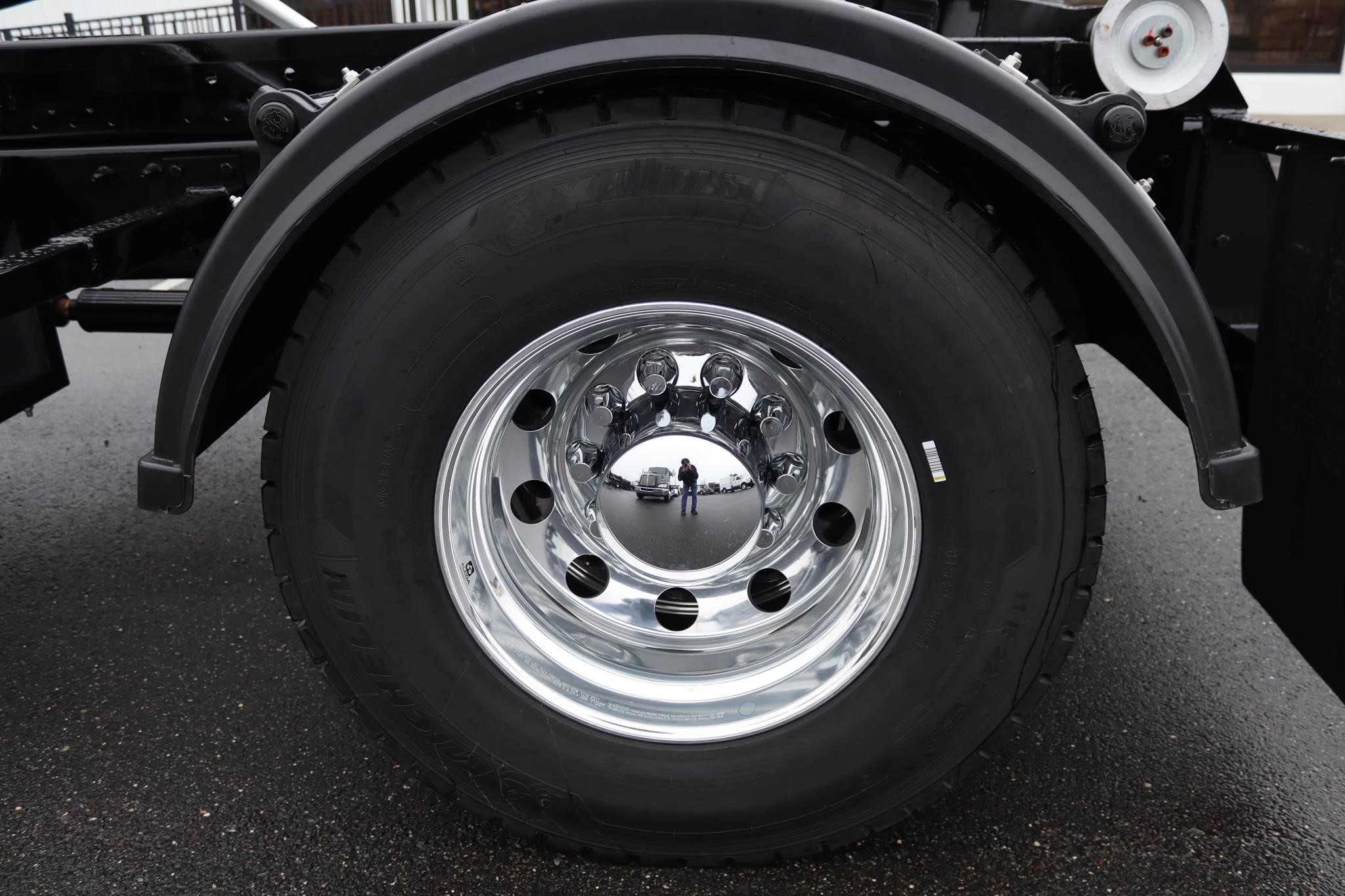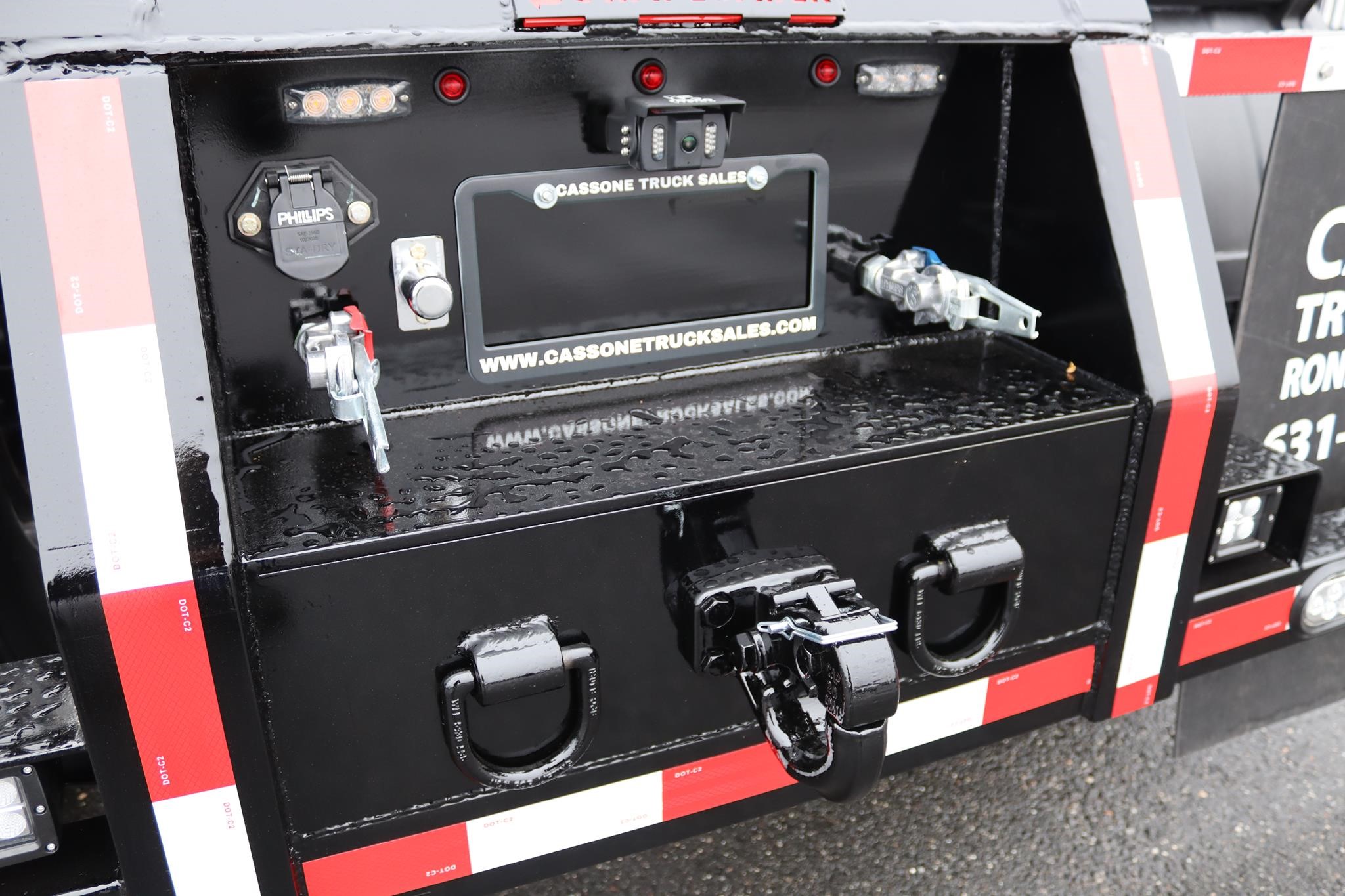 This commercial truck comes equipped with a Brand-New SwapLoader SL-214 Hooklift (Serial # – VJ1054), which has a 20,000LB capacity and an adjustable 36” and 54″ hook that can take 12′ to 18′ foot containers and is also equipped with a U.S Single Stage Tarp System with remote (Serial # – 081425-1720), two aluminum toolboxes that measure 48X18X18″ and 36X18X18″, a 7- way flats plug in, air to the rear and a 20-ton pintle hitch.