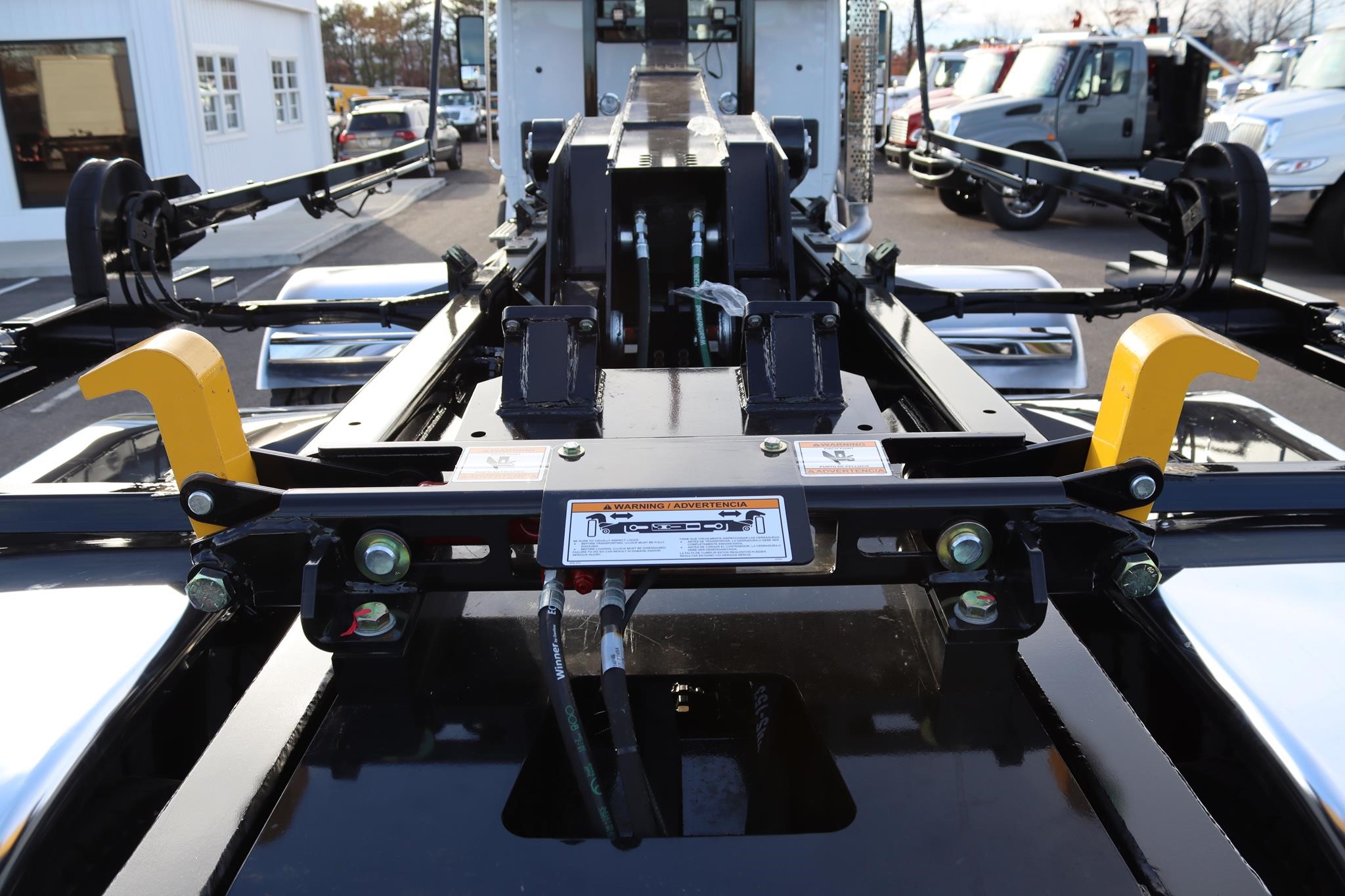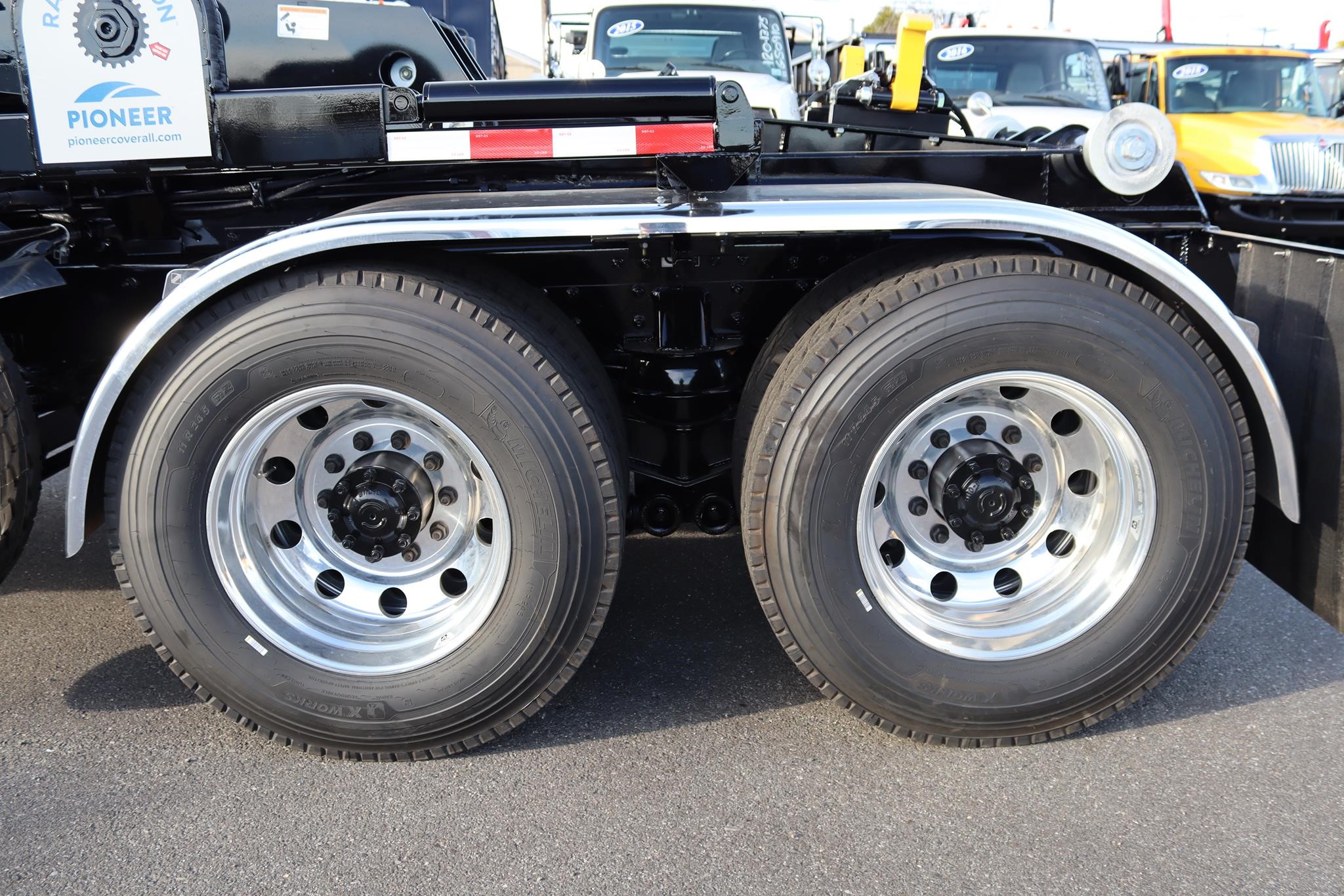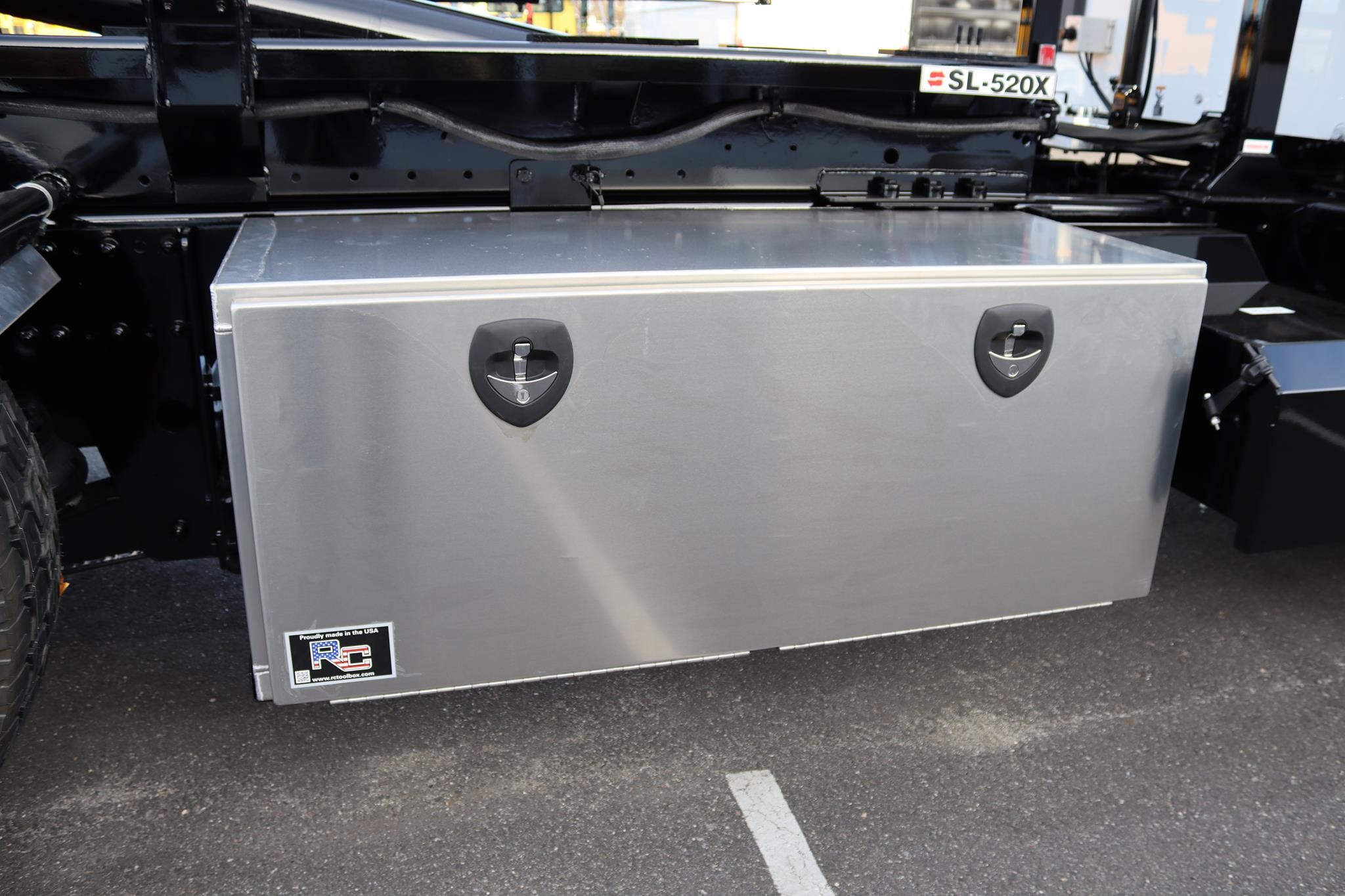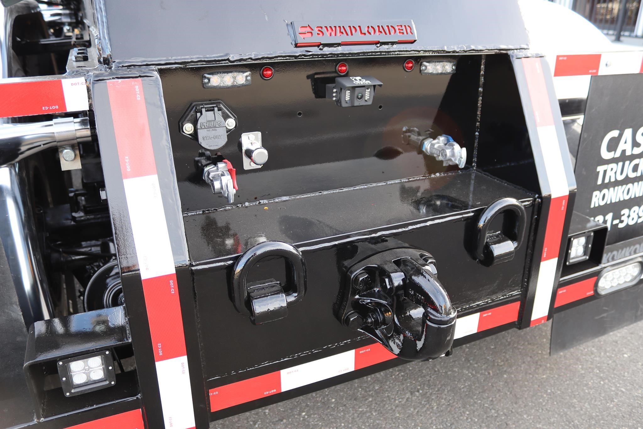 This commercial truck comes equipped with a Brand-New SwapLoader SL-520X Hooklift (Serial # – MB0304), which has a 50,000LB capacity and an adjustable 54” and 62″ hook that can take 17′ to 24′ foot containers. This hooklift is equipped with a U-Lock system, and the truck is also equipped with a Rack N Pinion 4500 SARG Tarp System (Serial # – 70162), an aluminum RC toolbox that measures 60X24X24″, a 45-Ton pintle hitch with air to the rear, and a 7-way round plug-in.